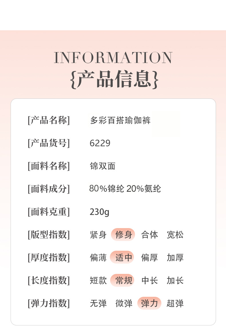 跃牌【健舞健美】系列高腰提臀蜜桃裤普拉提瑜伽九分裤6229
