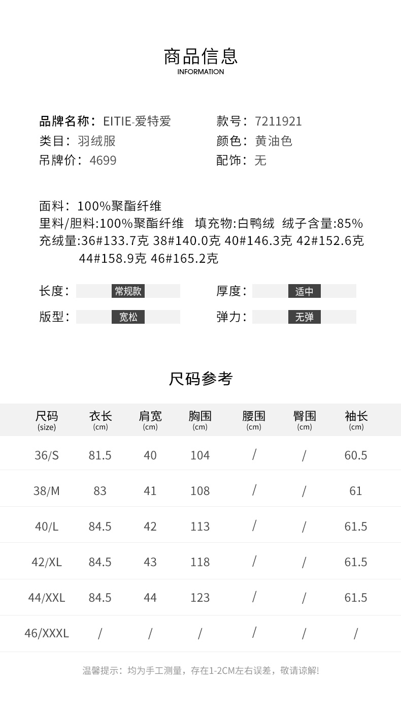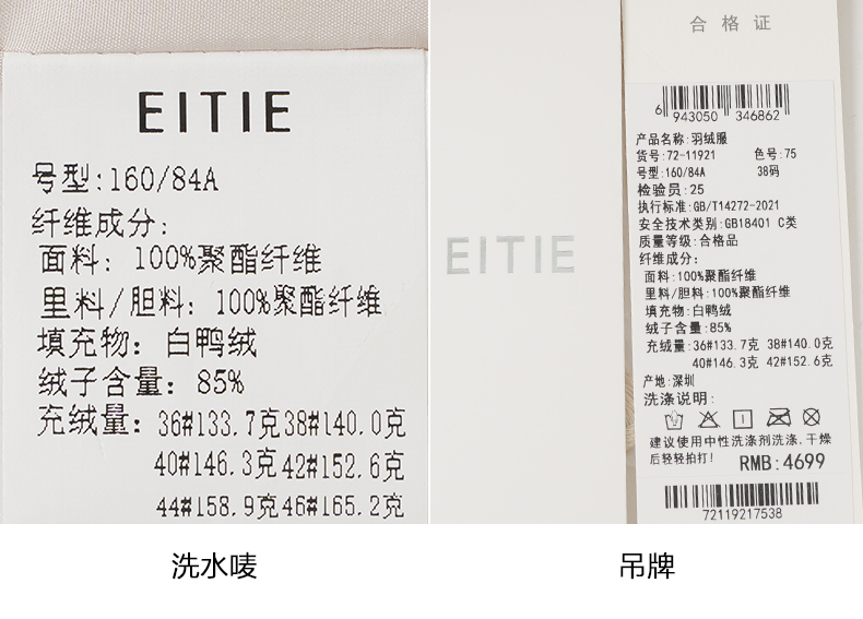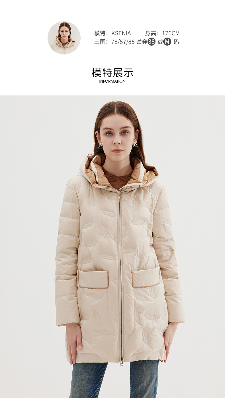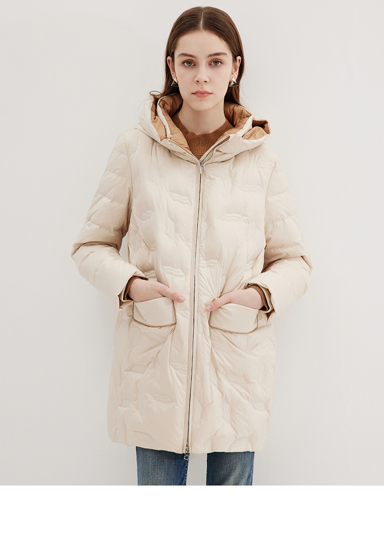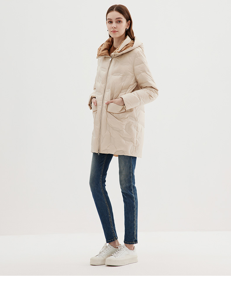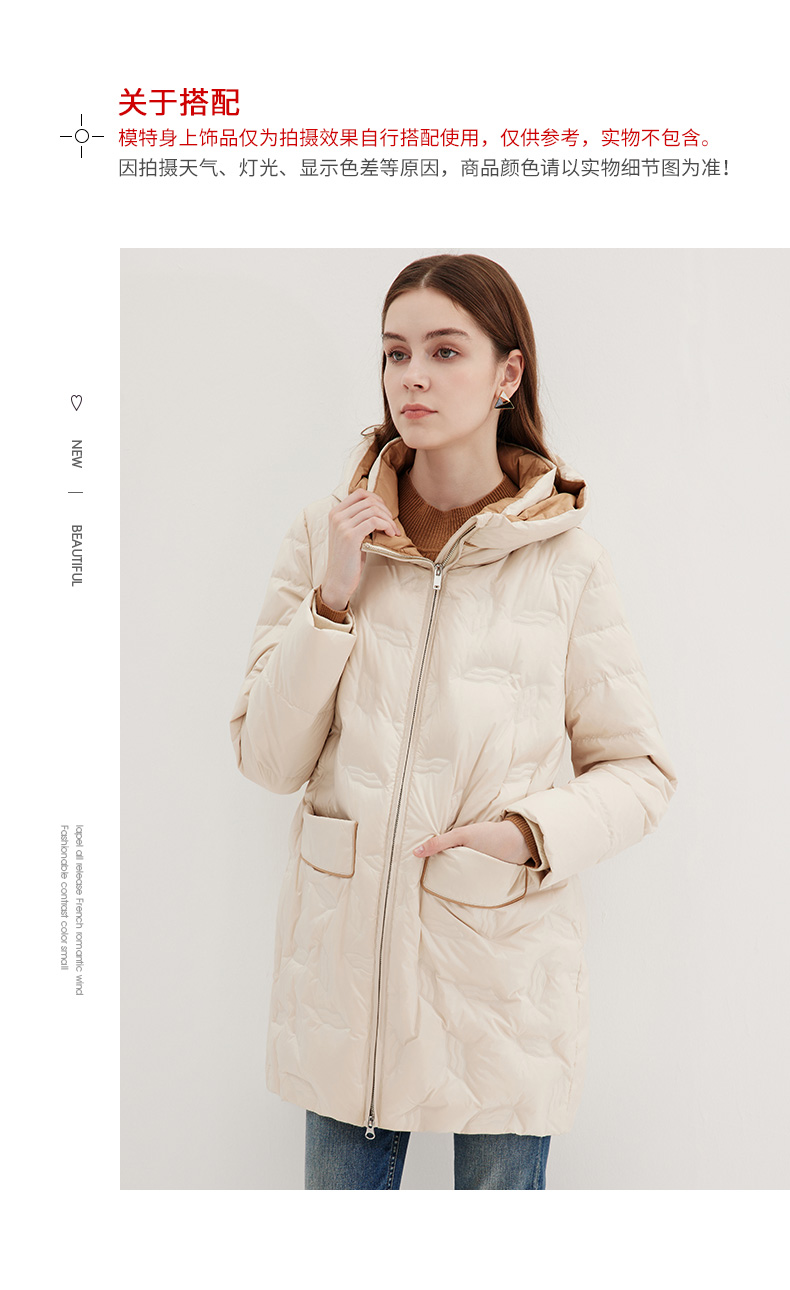 EITIE爱特爱冬季新款气质通勤保暖直筒显瘦连帽羽绒服女7211921