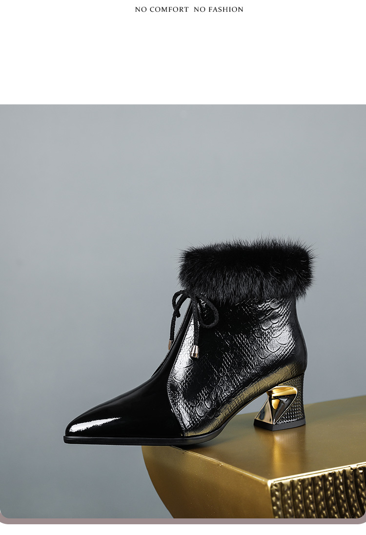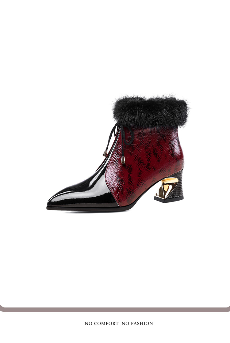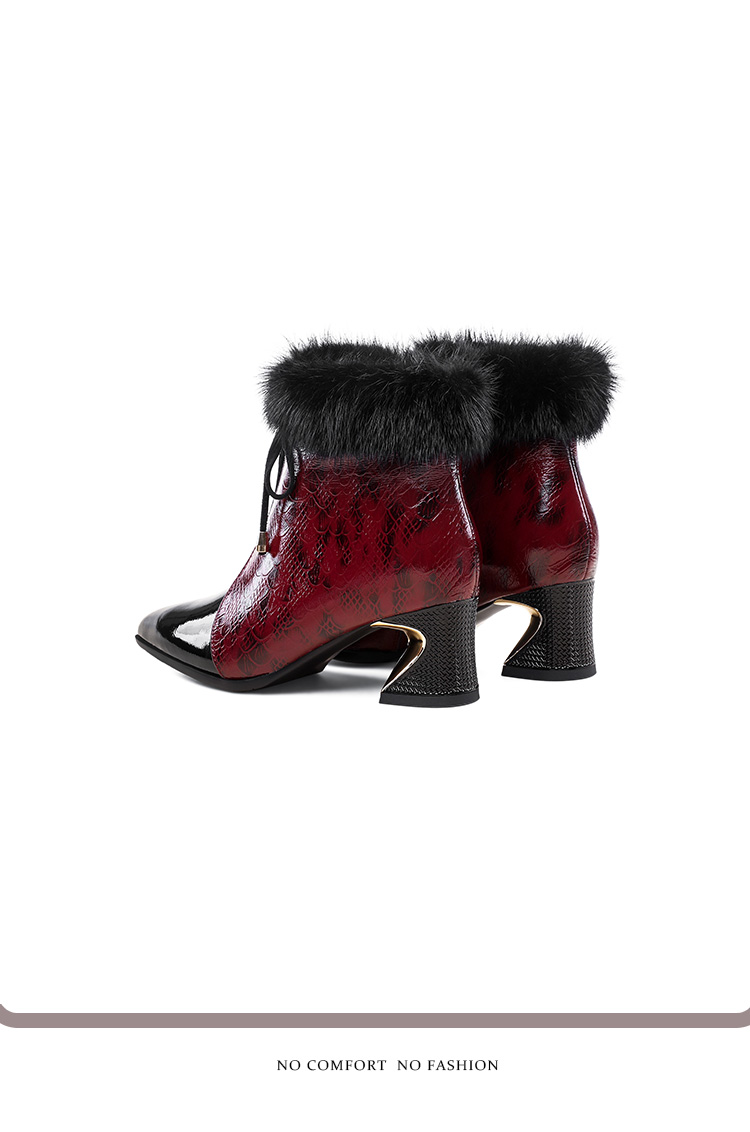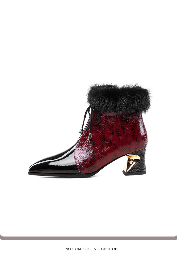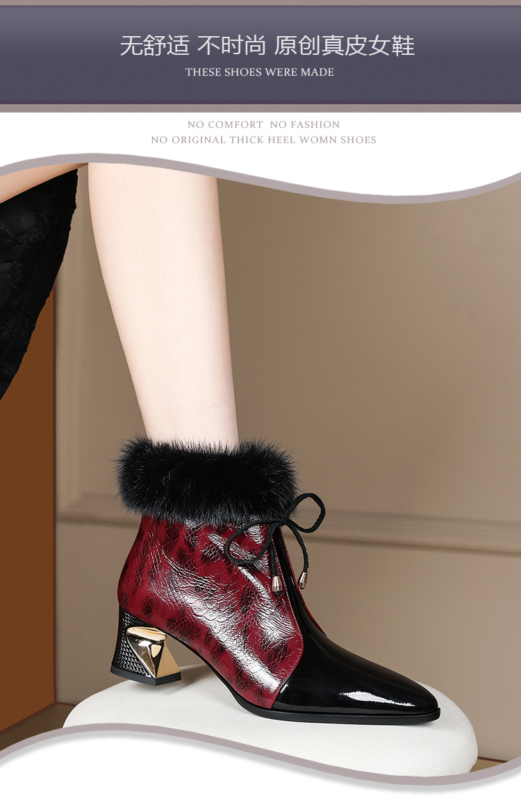 冬款粗跟貂毛头层牛皮冬季加绒短靴PLGZ-D115-8