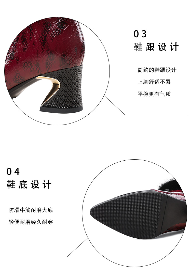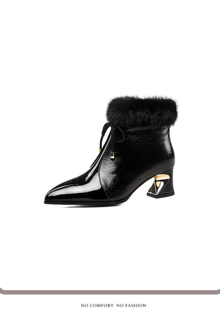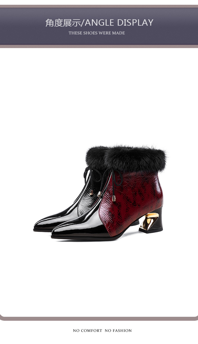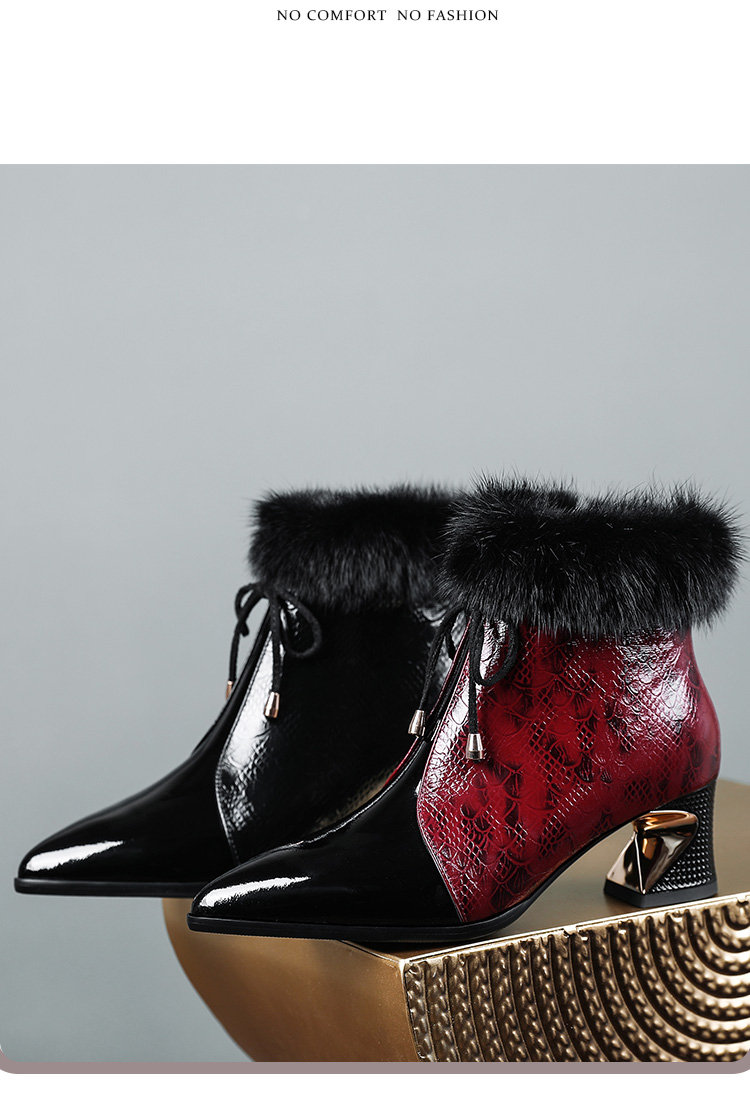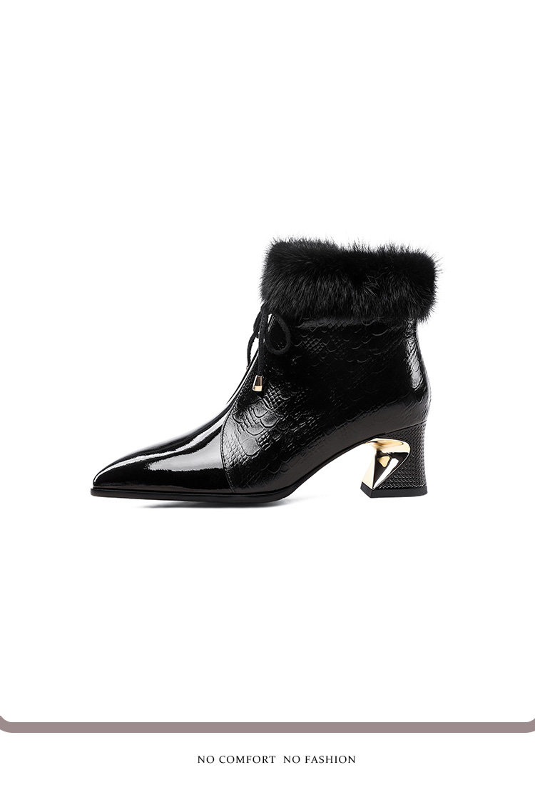 冬款粗跟貂毛头层牛皮冬季加绒短靴PLGZ-D115-8