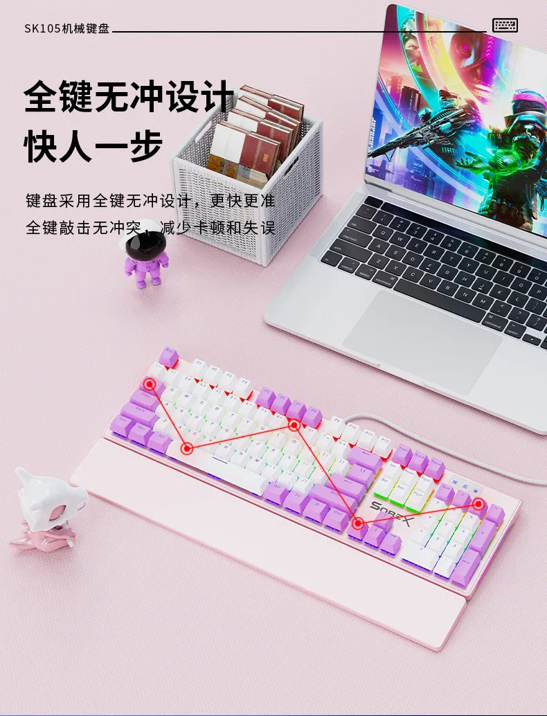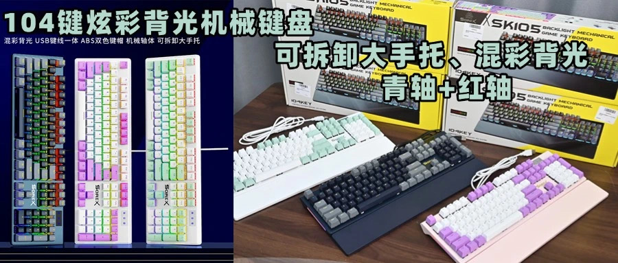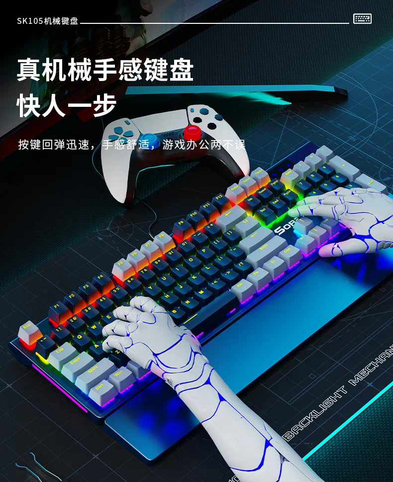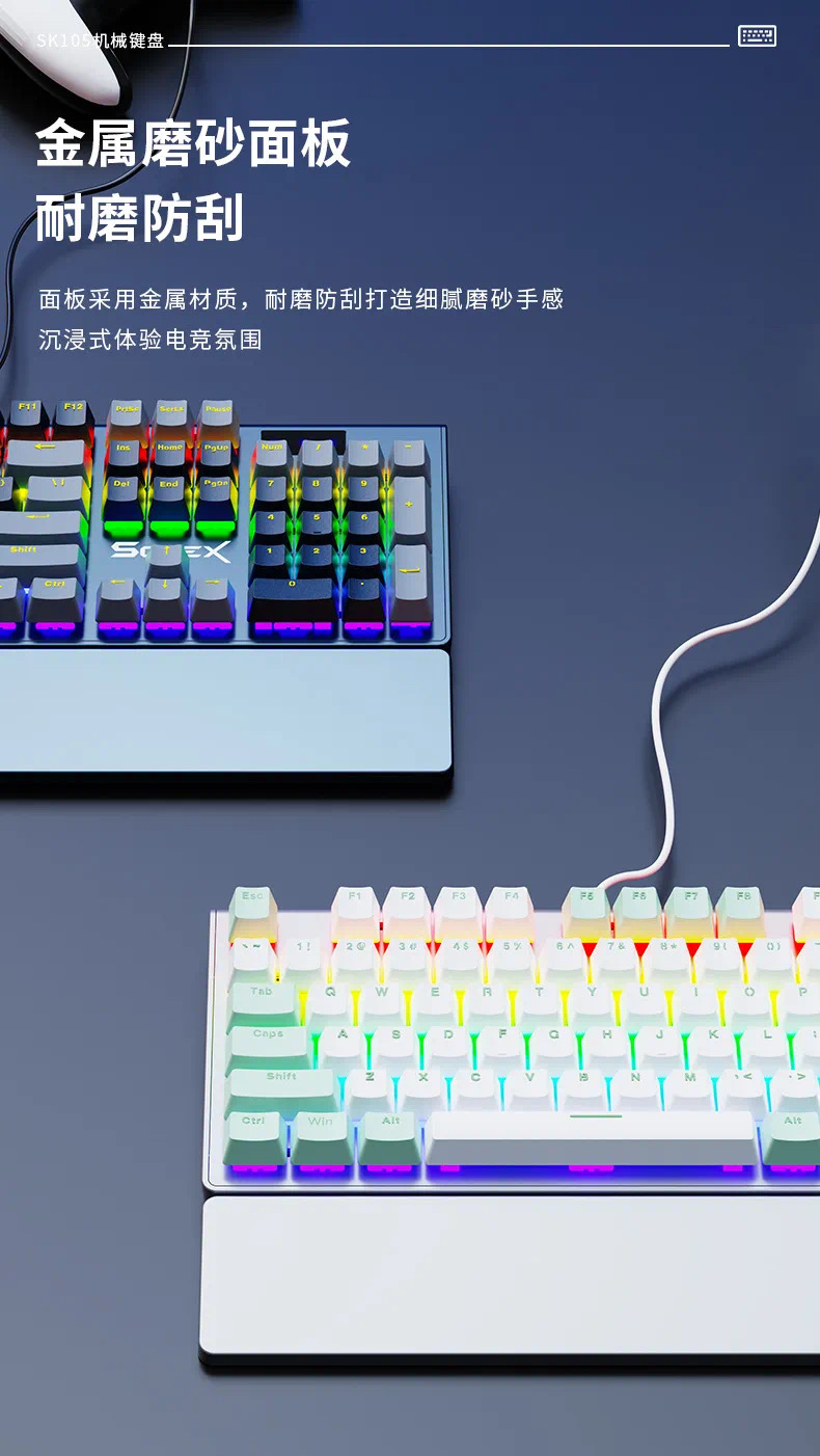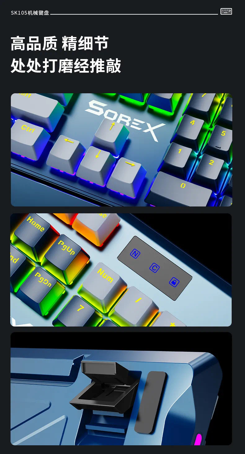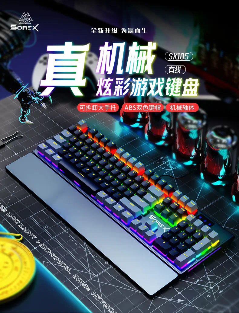 SOREX森睿 机械键盘ABS双色键帽104键红轴带手托网吧电竞场所专用USB有线键盘