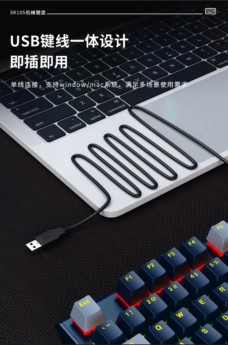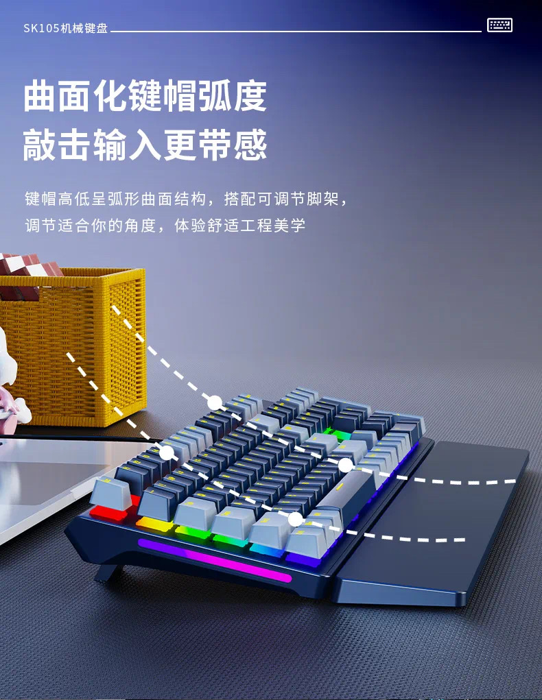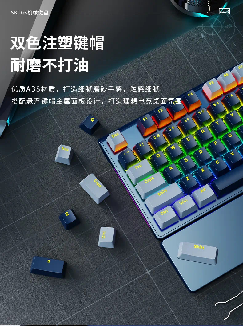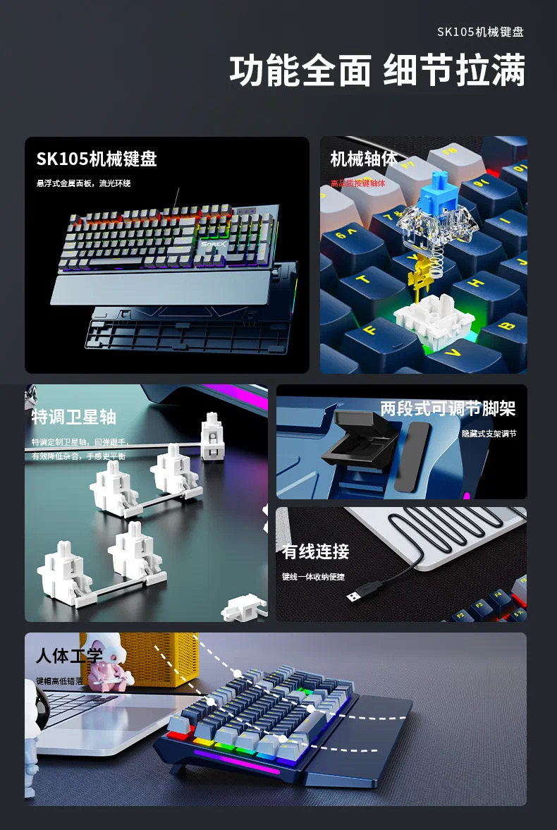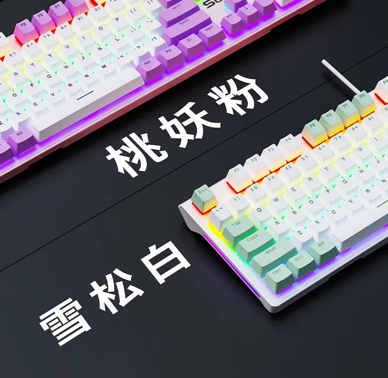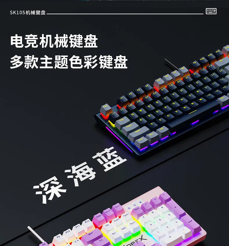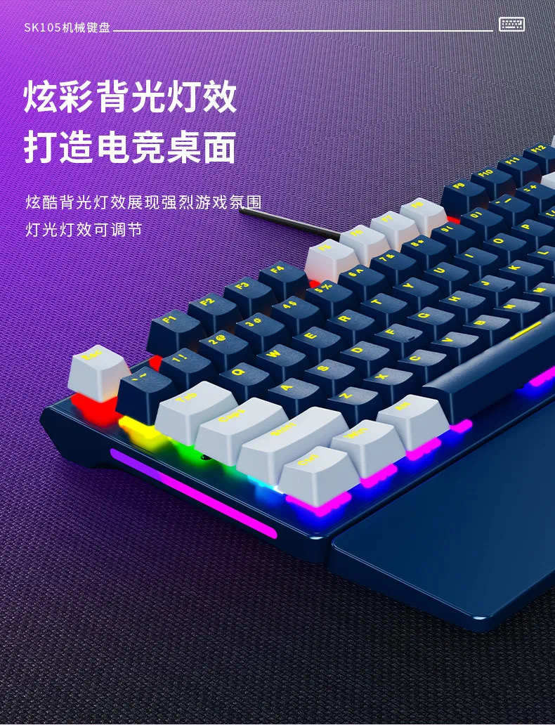SOREX森睿 机械键盘ABS双色键帽104键红轴带手托网吧电竞场所专用USB有线键盘