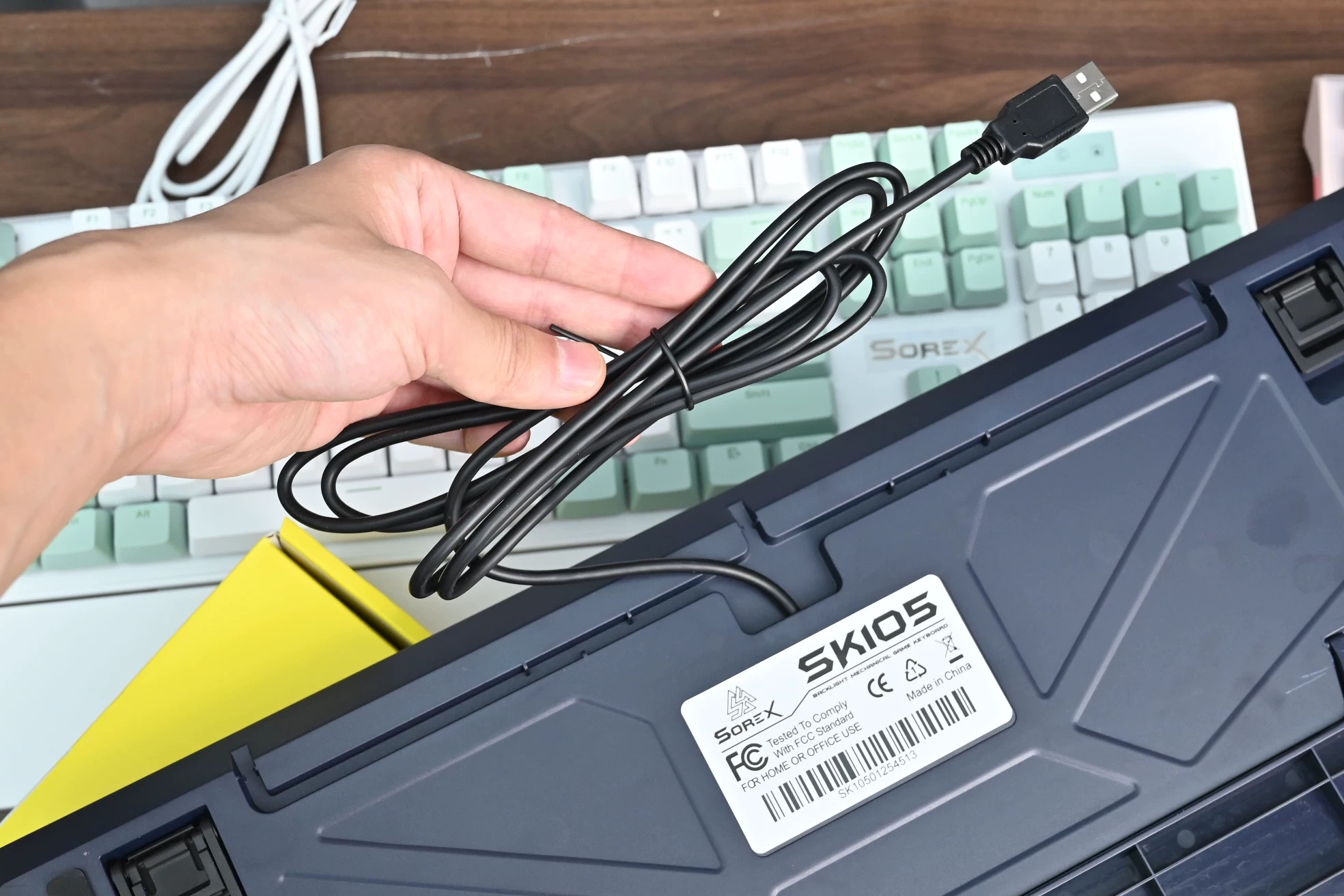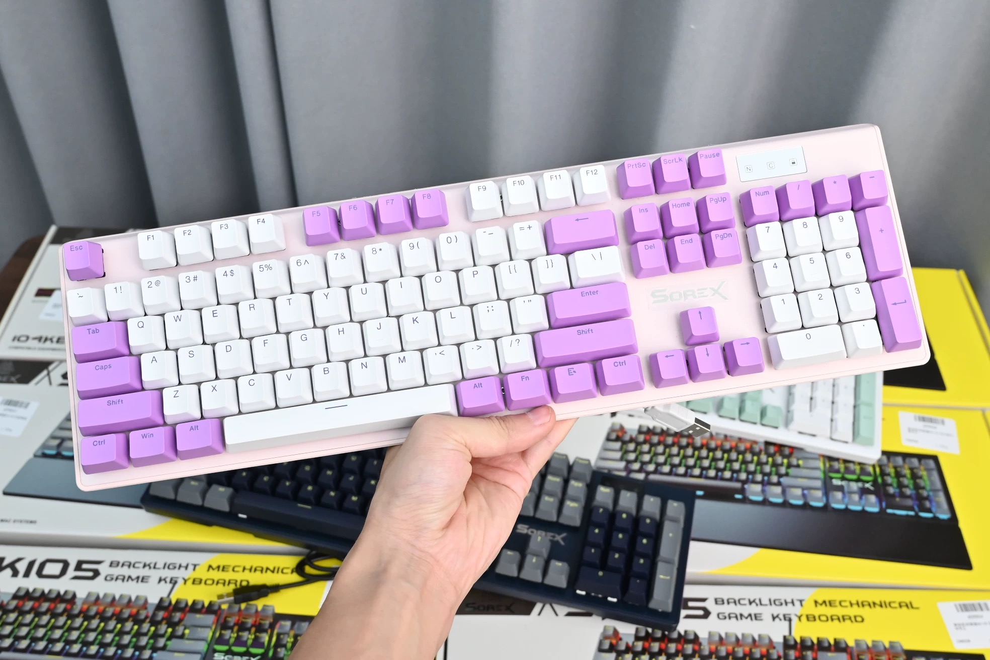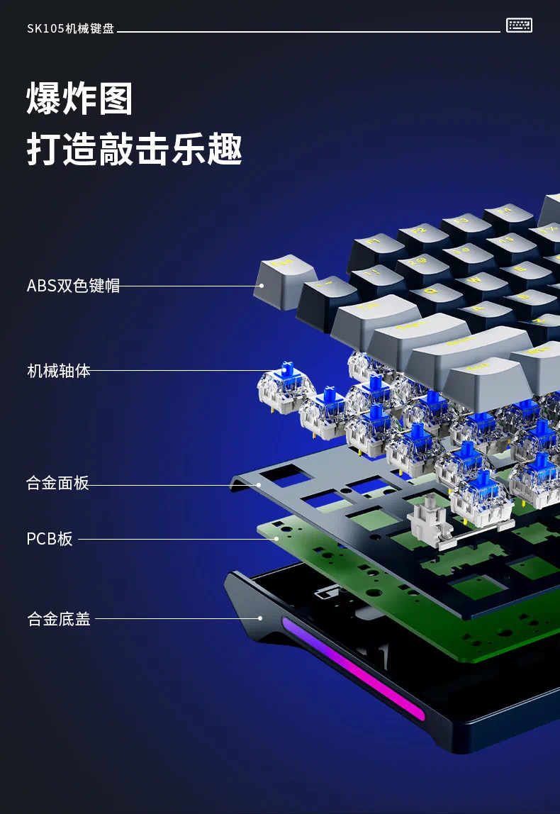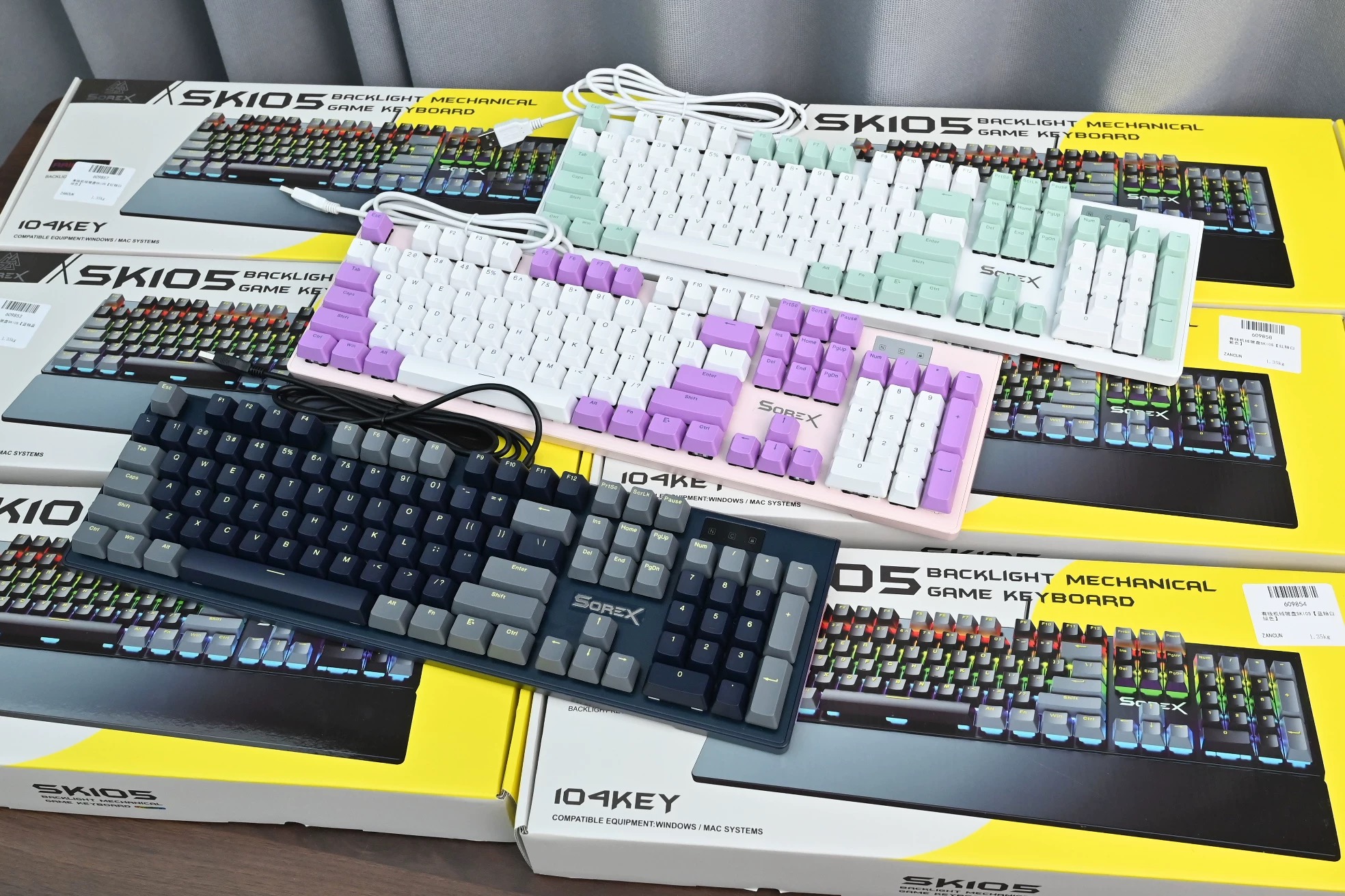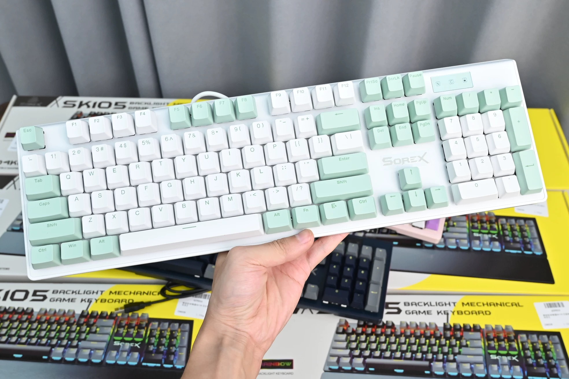 SOREX森睿 机械键盘ABS双色键帽104键红轴带手托网吧电竞场所专用USB有线键盘