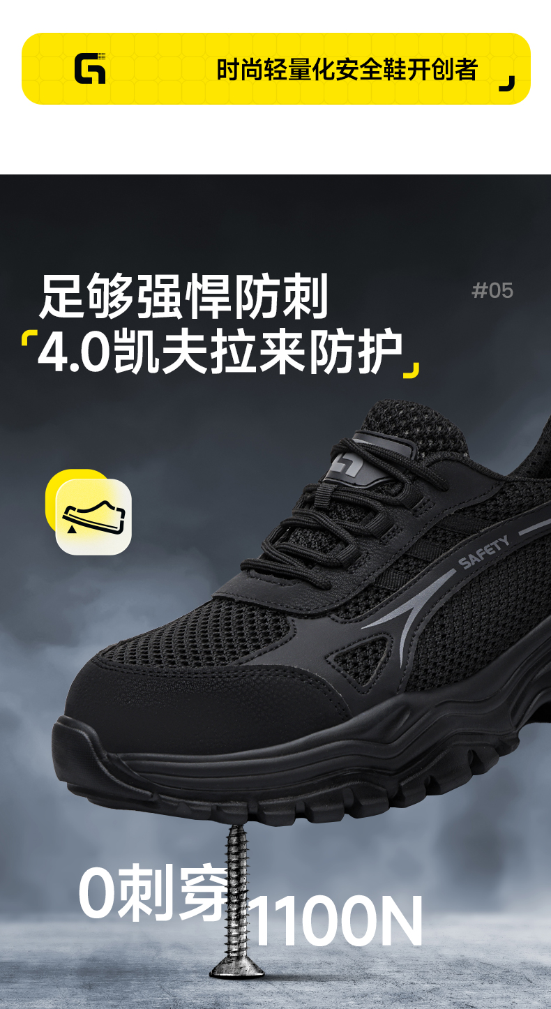 26年夏季新款劳保鞋防砸防刺轻便橡塑底4.0凯夫拉低帮透气