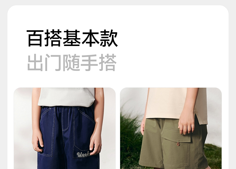 英氏儿童裤子夏季百搭休闲工装裤中大童中裤透气男童裤子2025新款