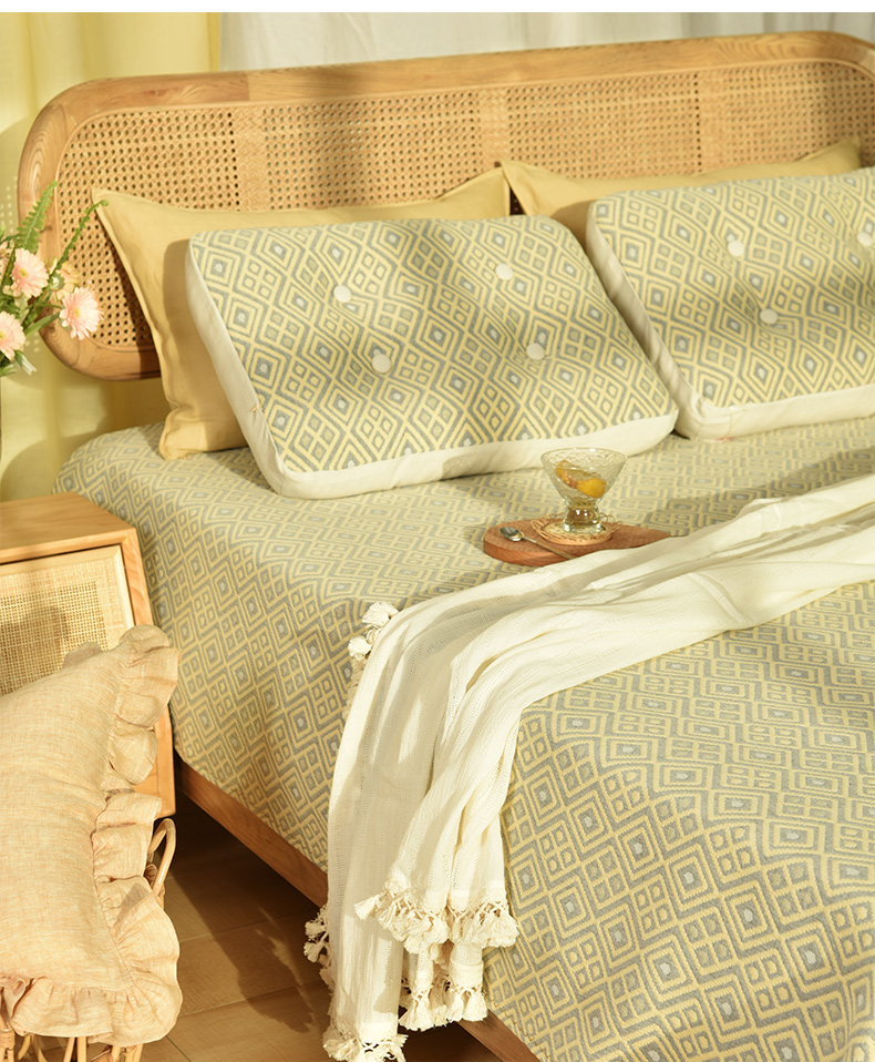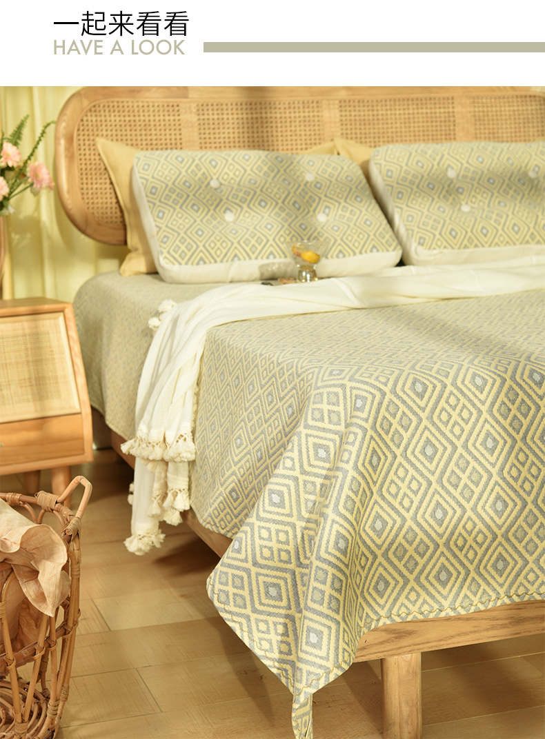 双色菱形格纹系列床单盖毯纯棉床品