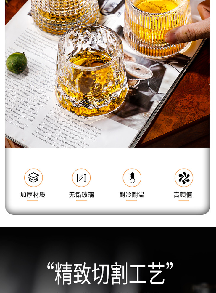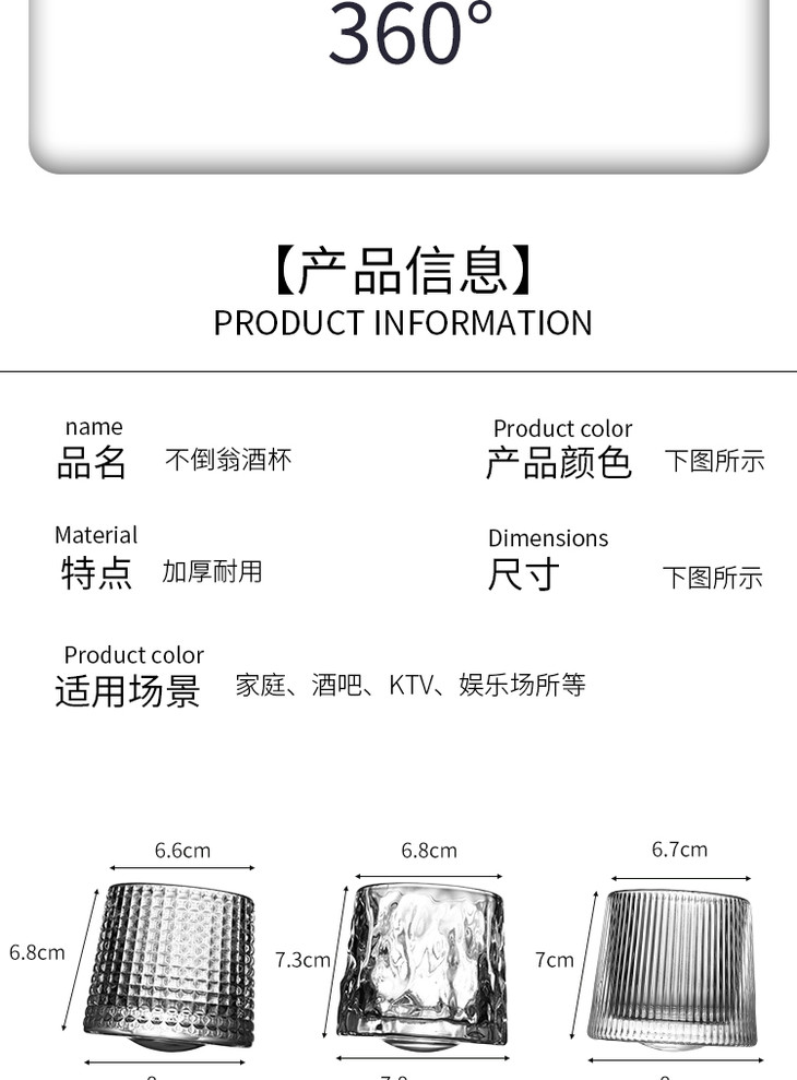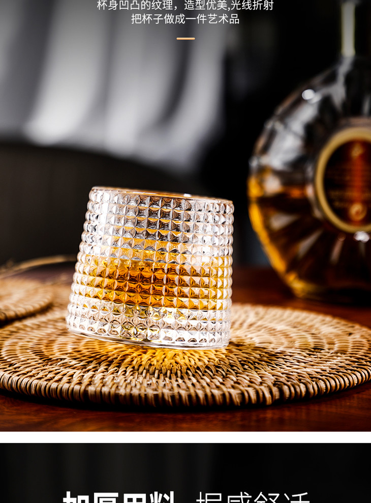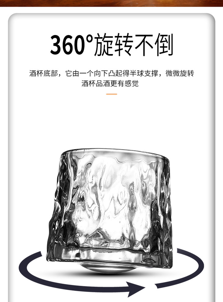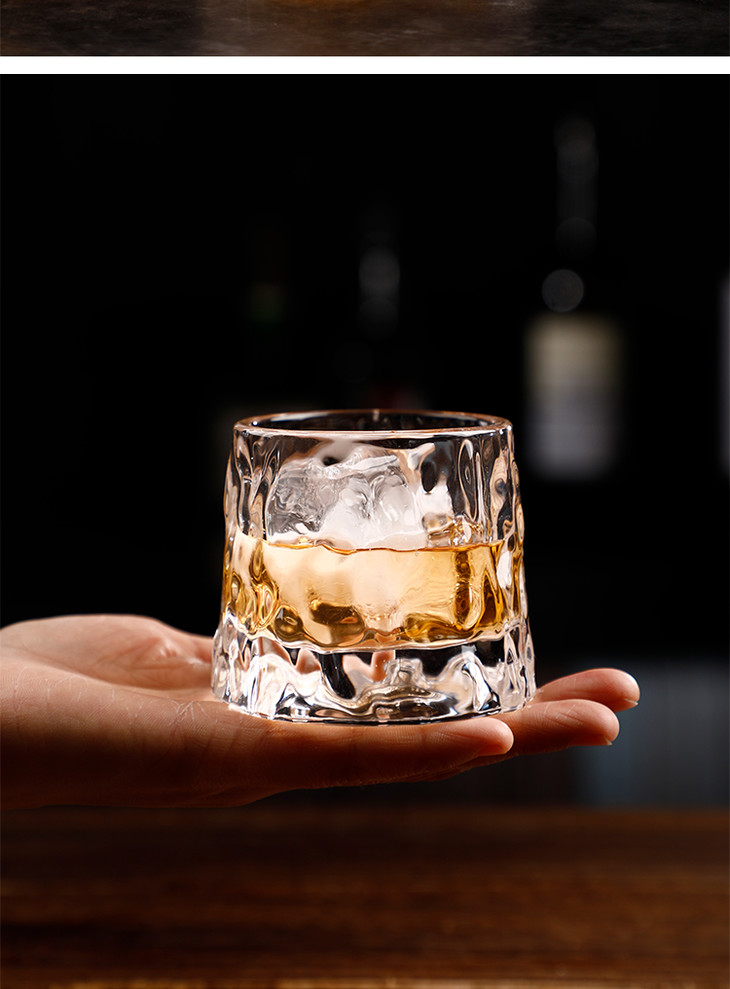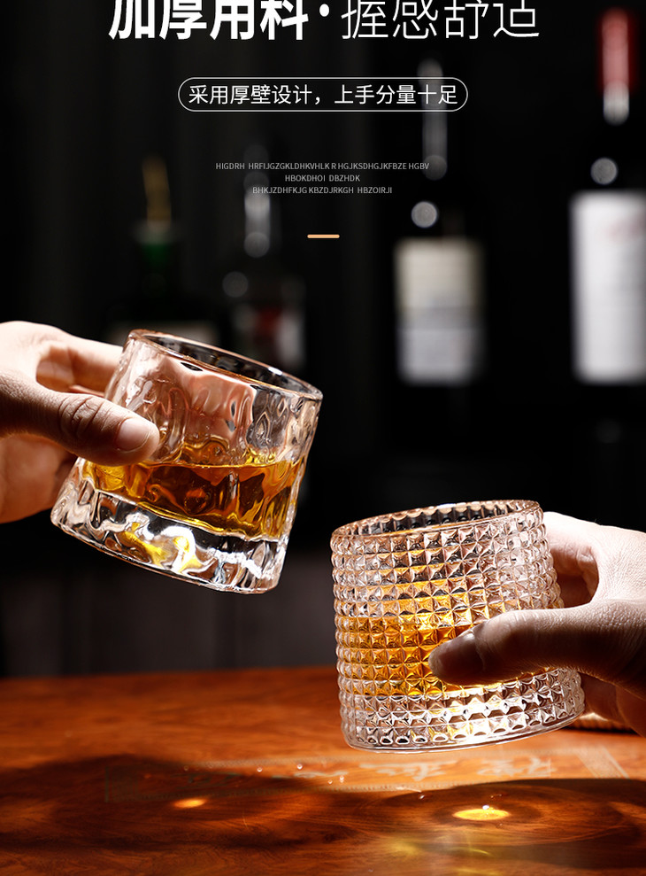 【旋转解压杯】160ml*2个日式锤纹啤酒杯洋酒杯威士忌杯不倒翁摇摇杯旋转解压玻璃酒杯-D仓