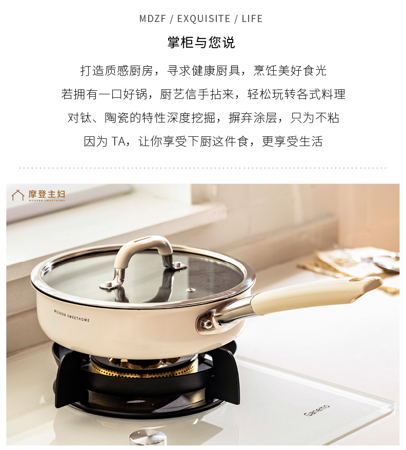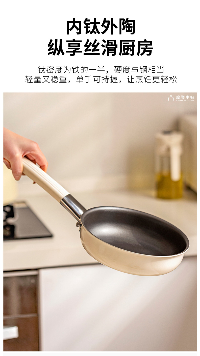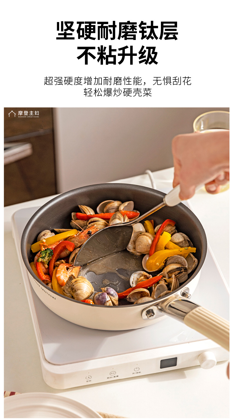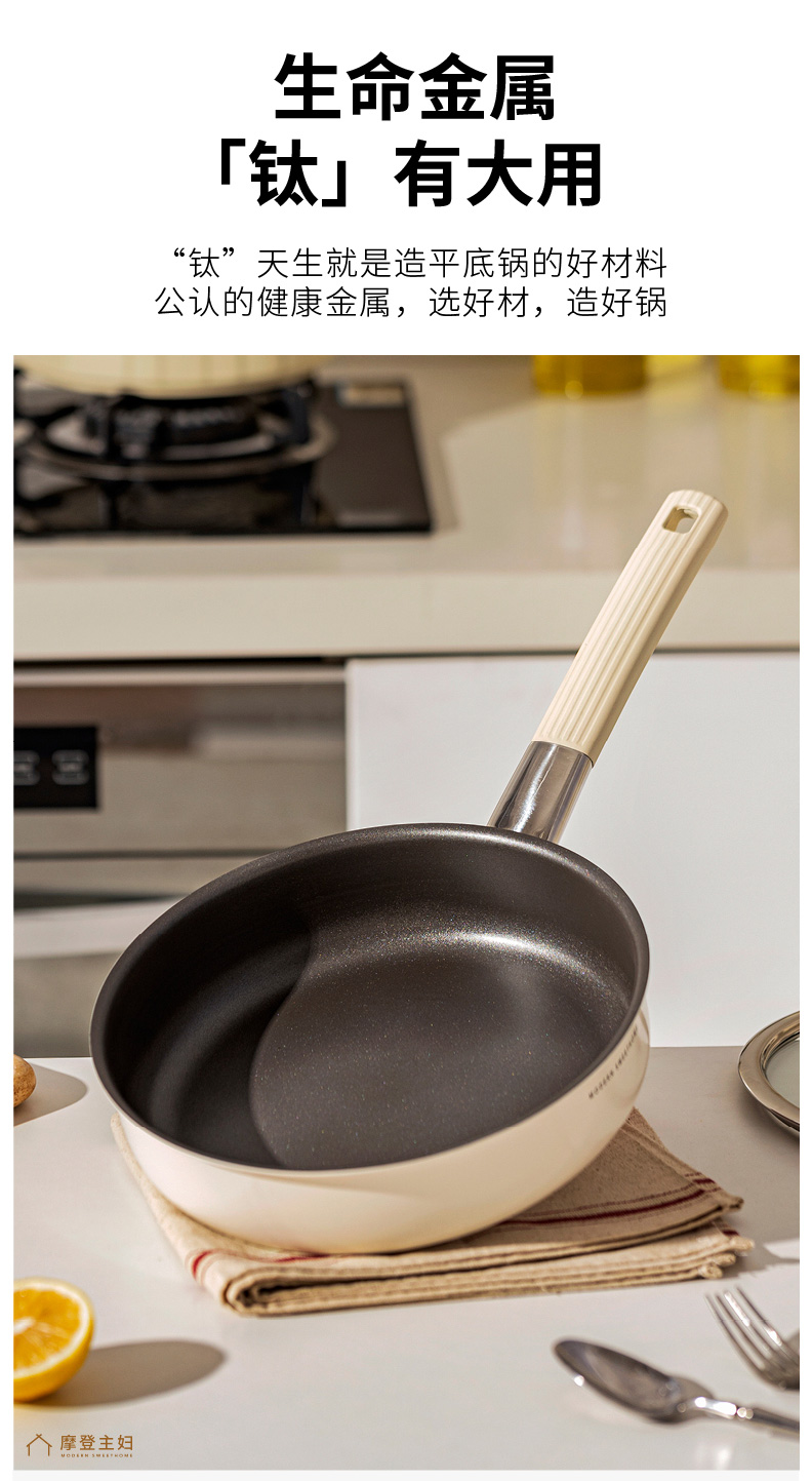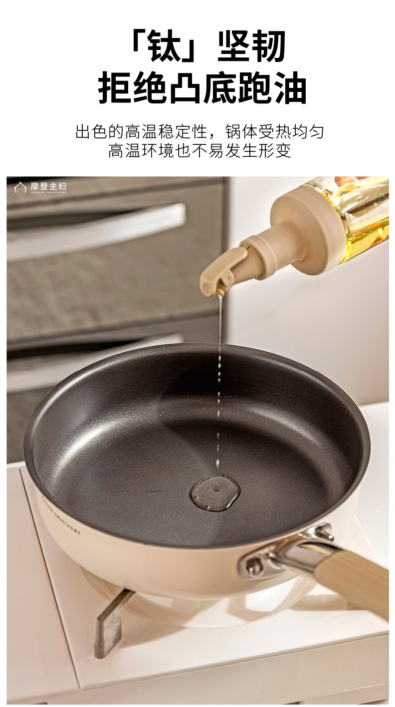 摩登主妇加深钛平底锅不粘锅家用牛排煎锅煎蛋锅电磁炉燃气灶专用