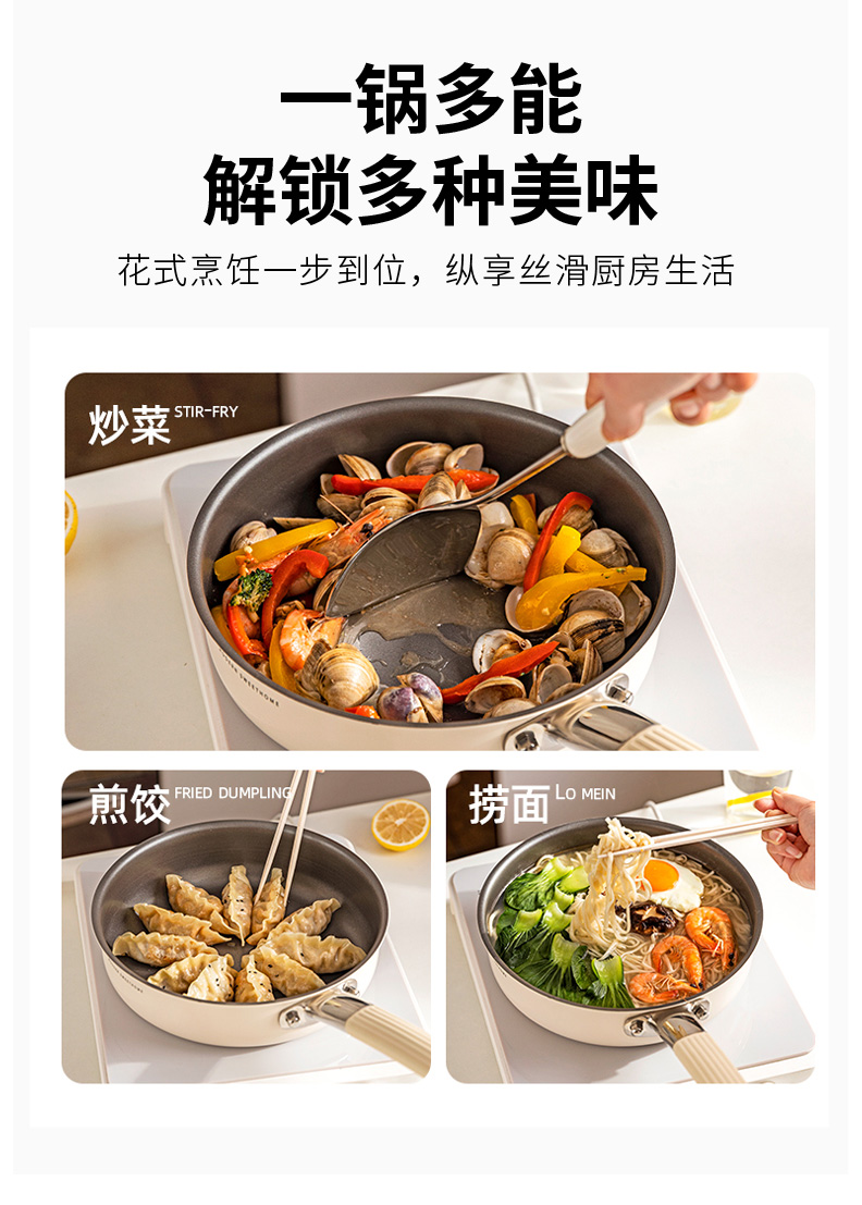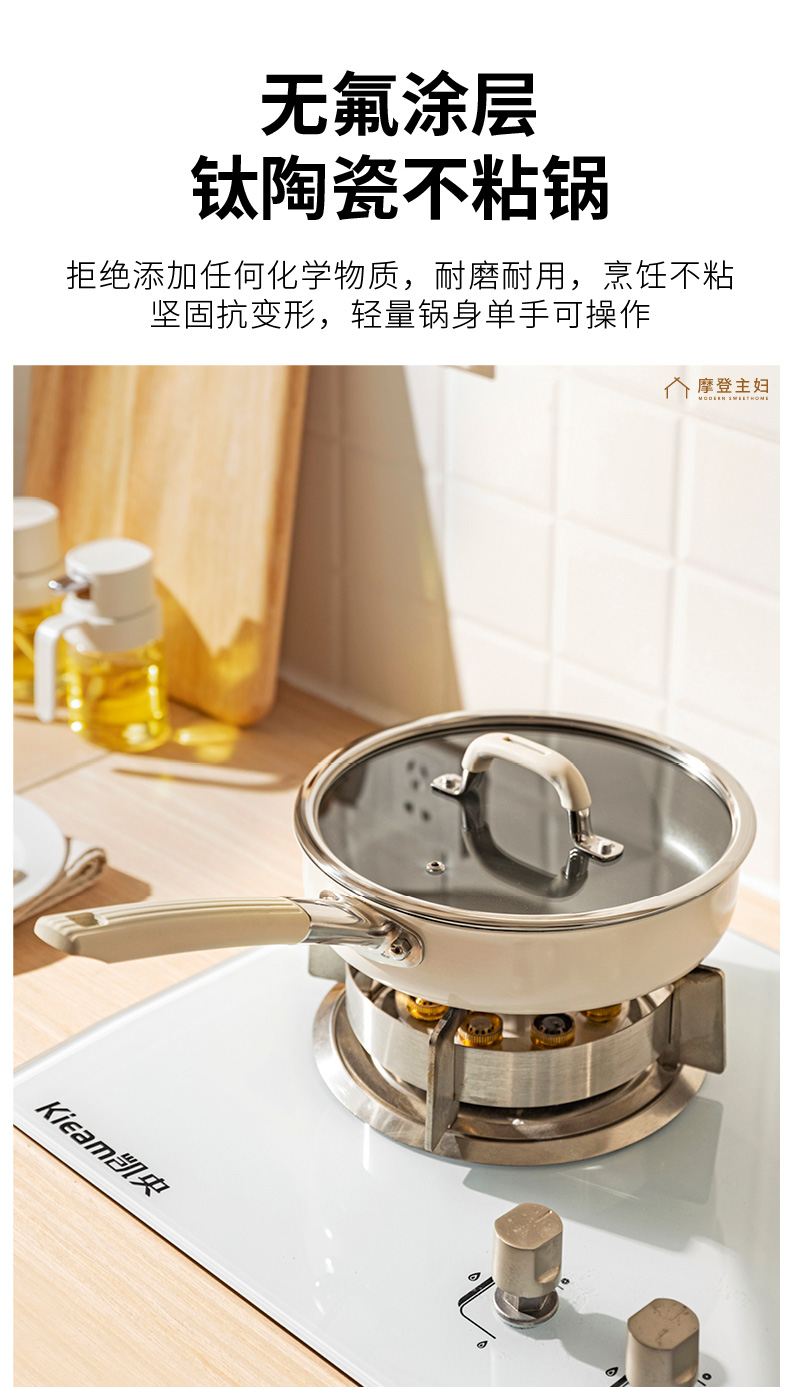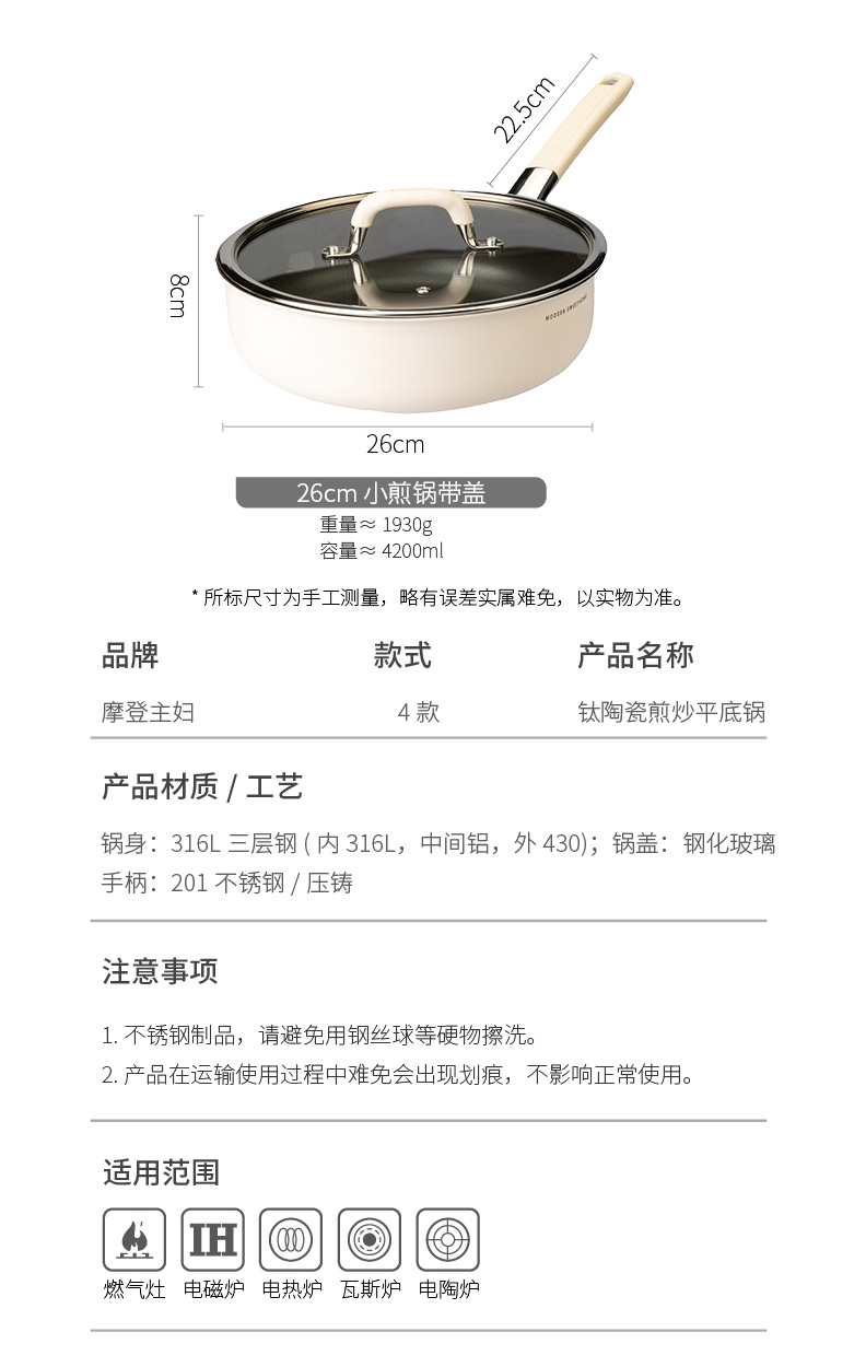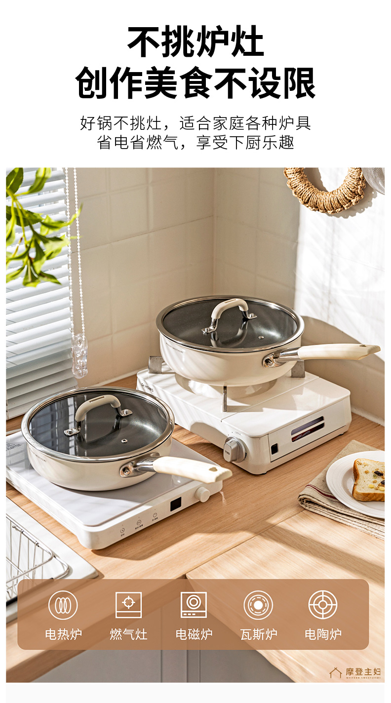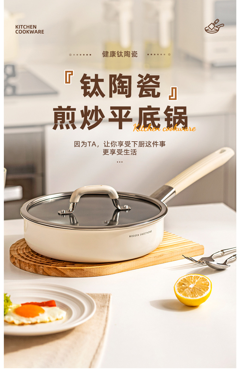 摩登主妇加深钛平底锅不粘锅家用牛排煎锅煎蛋锅电磁炉燃气灶专用