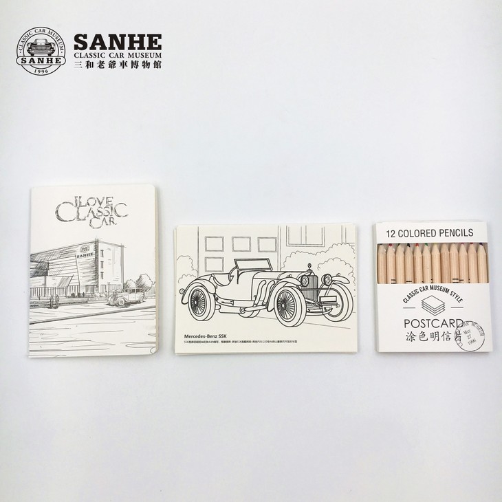 共有十二张明信片,分别是十二款经典的老爷车。。