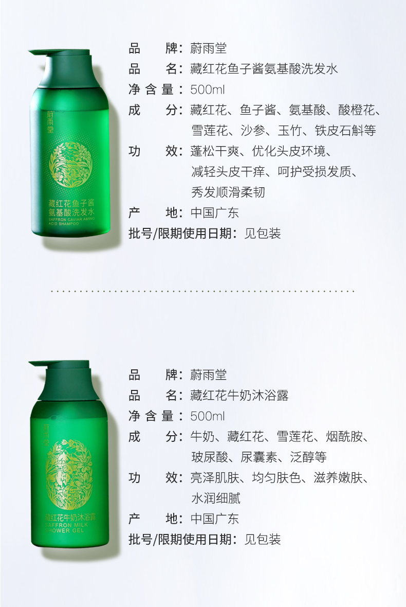 【轻奢养护】蔚雨堂藏红花鱼子酱氨基酸洗发水—蓬松干爽不油腻,养护头皮藏红花牛奶沐浴露—牛奶甜香不假滑,滋养水润嫩肤