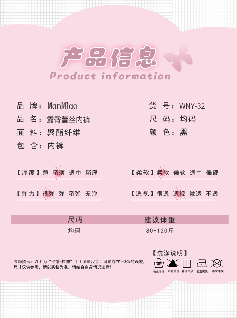 漫渺露臀蕾丝内裤女低腰缕空情趣透明网纱蝴蝶结内裤女开档免脱女