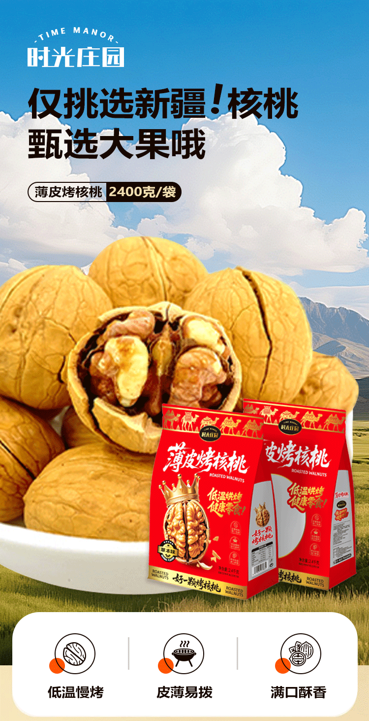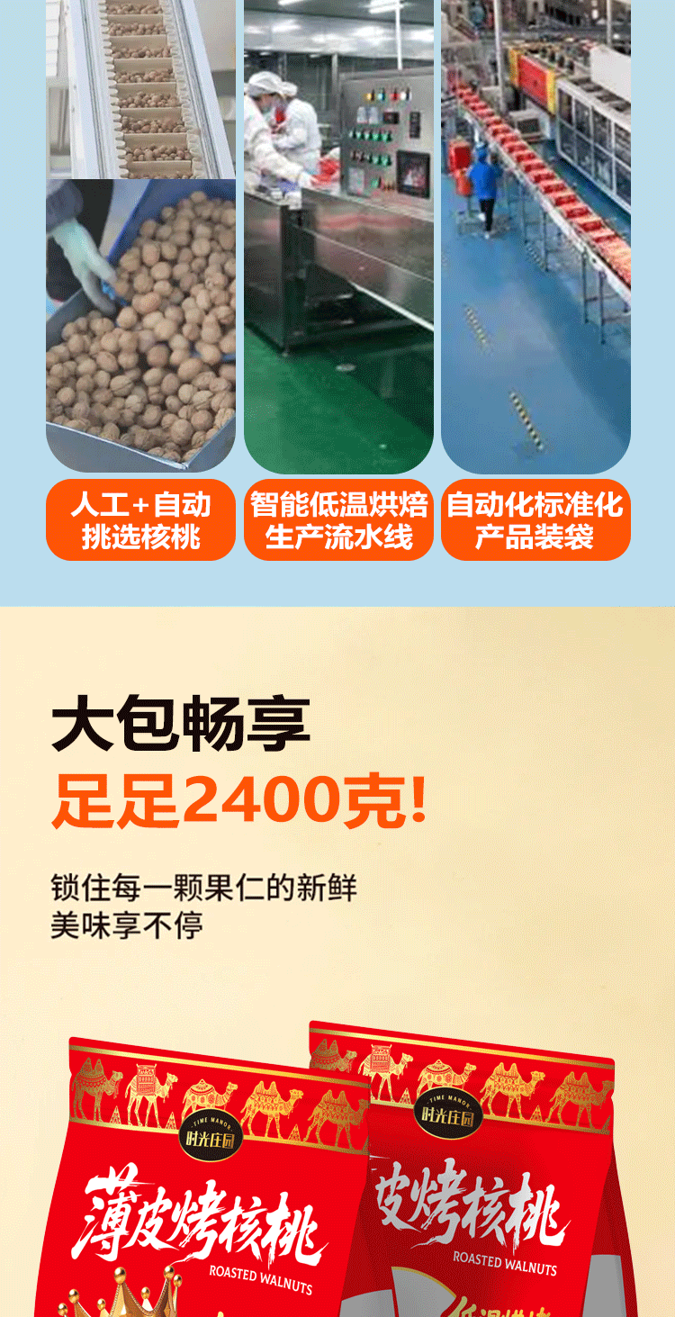 【品名】时光庄园薄皮烤核桃 【规格】2400g/袋 【保质期】10个月 【储存方法】请置于阴凉干燥处,避免阳光直射 【产地】河北沧州 【发货地】河北沧州 【发货快递】三通一达 【不发货区域】新疆,西藏,港澳台地区不发 【补邮费地区】青海,海南每单+5元,北京,上海每单+1元 【发货时效】48小时,节假日顺延 |