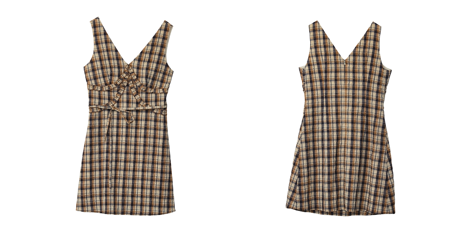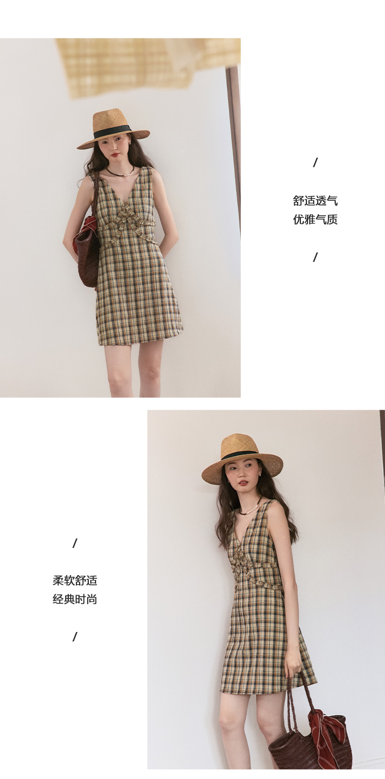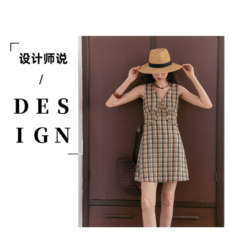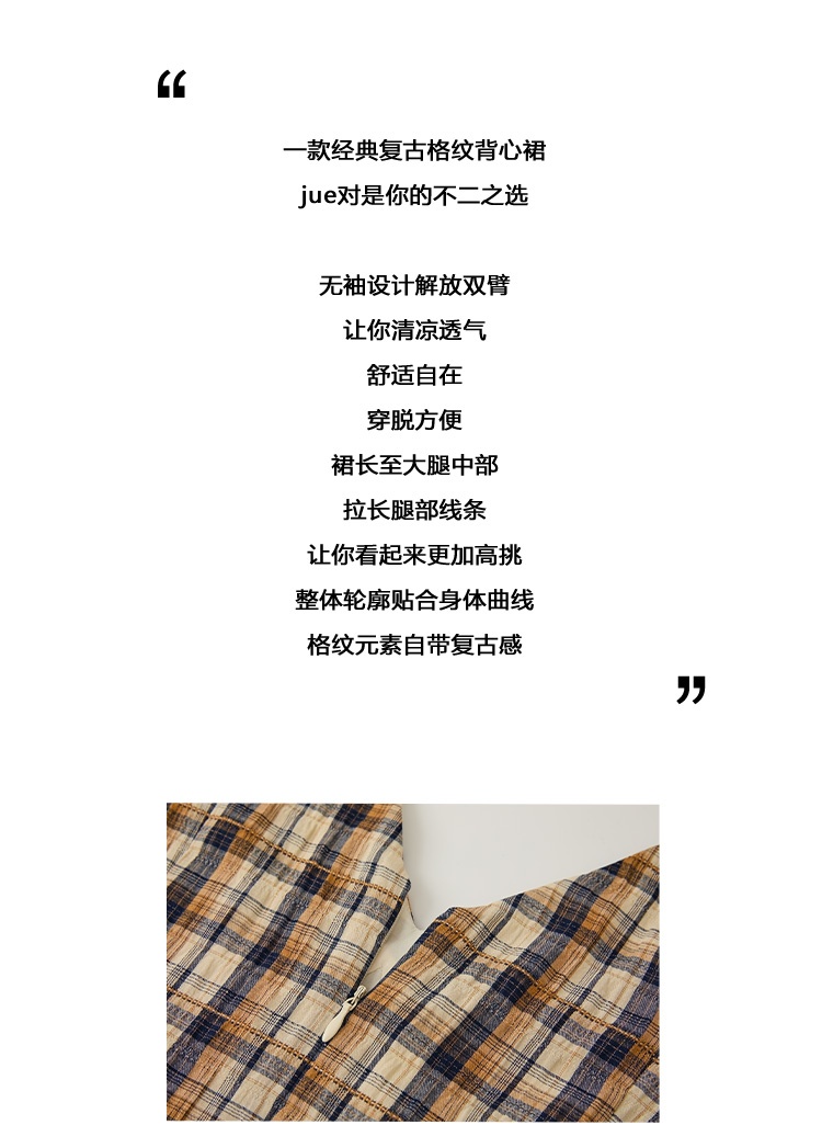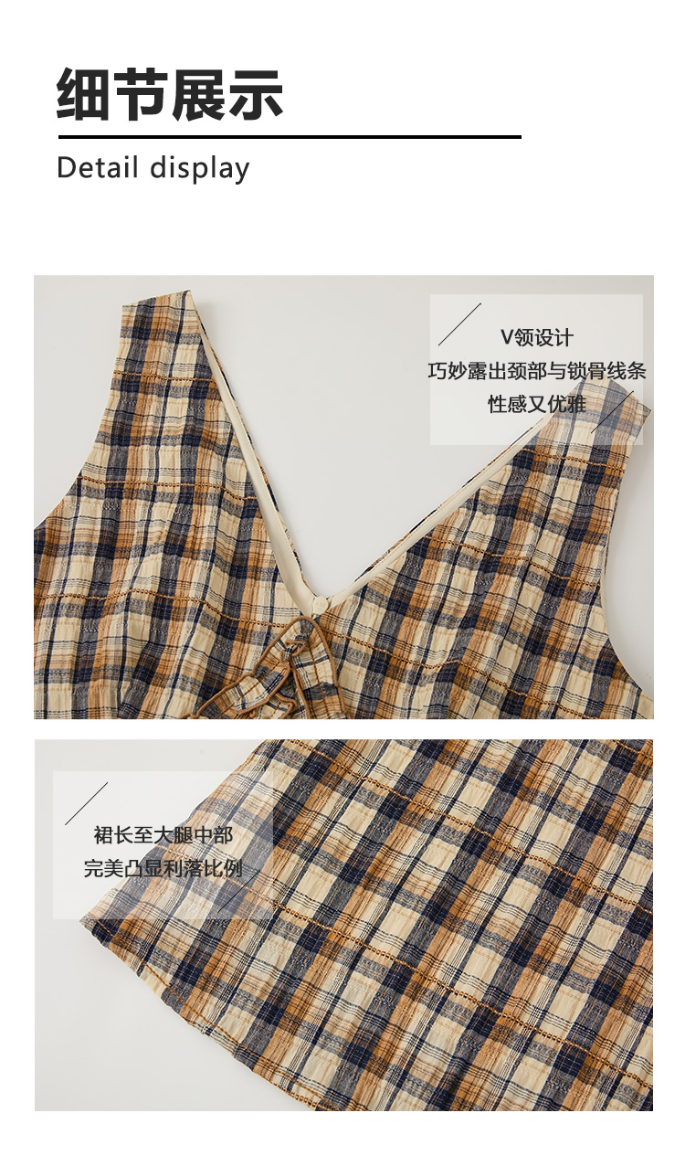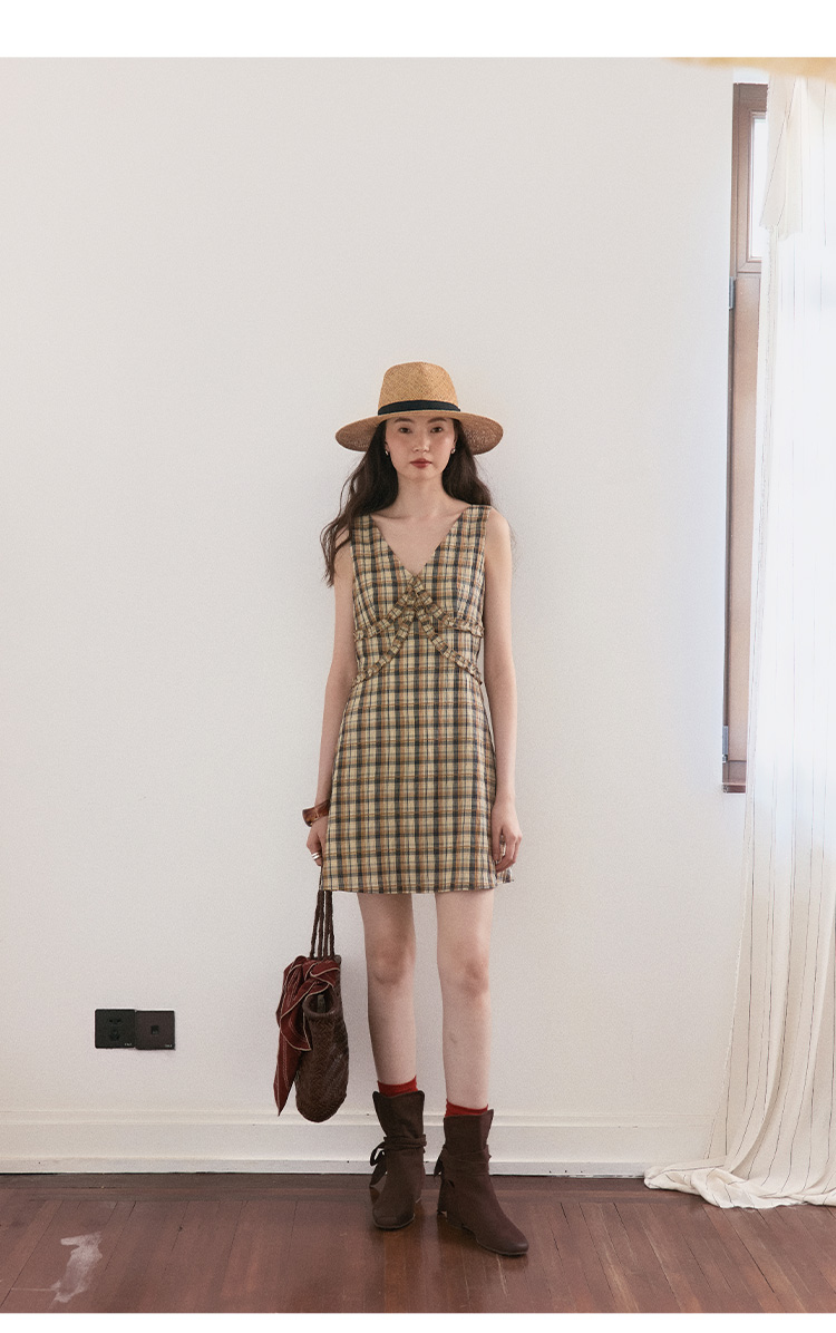 【现货】Even Vintage | 复古泡泡格纹 优雅甜美V领肌理无袖背心连衣裙夏
