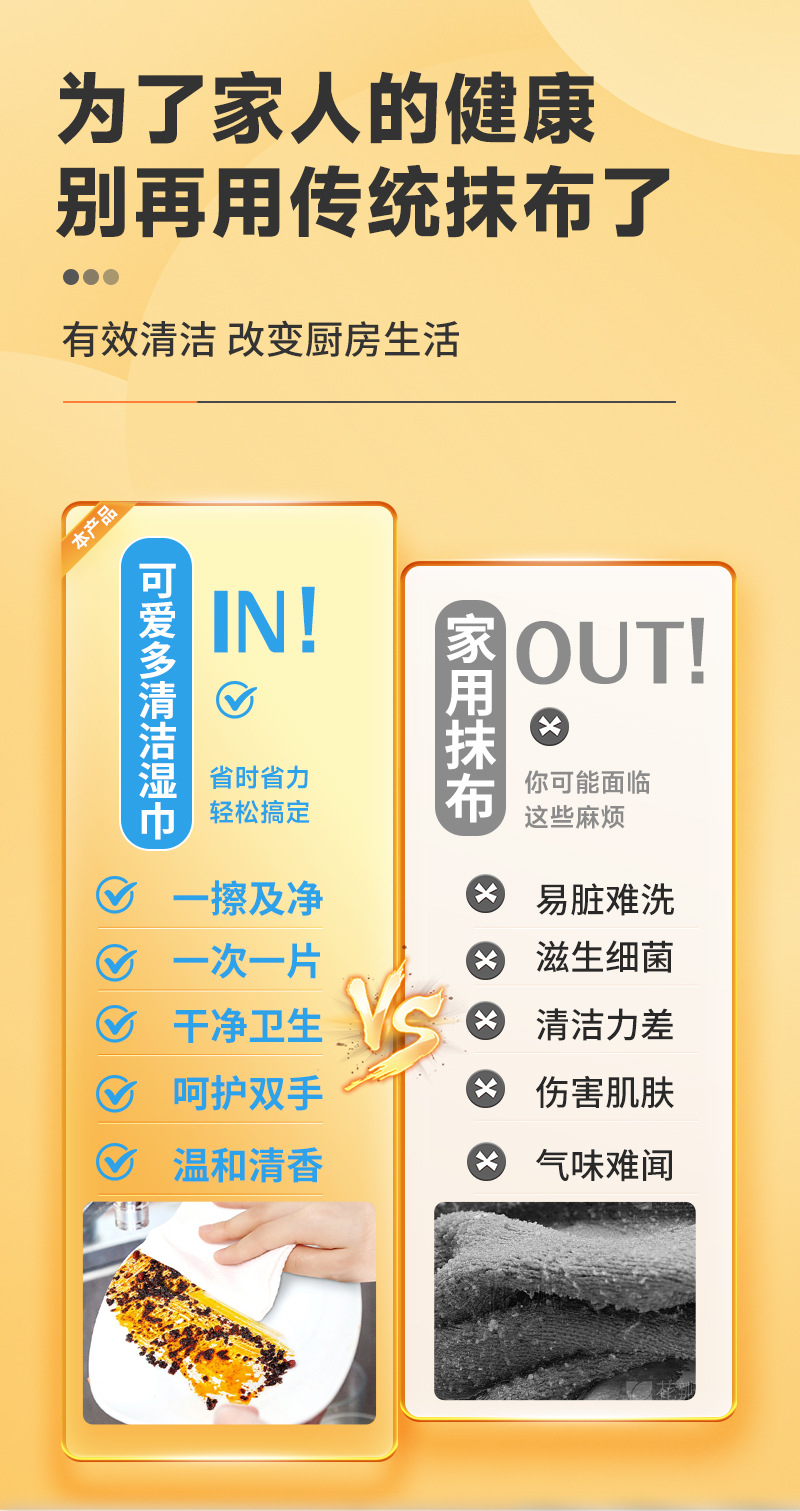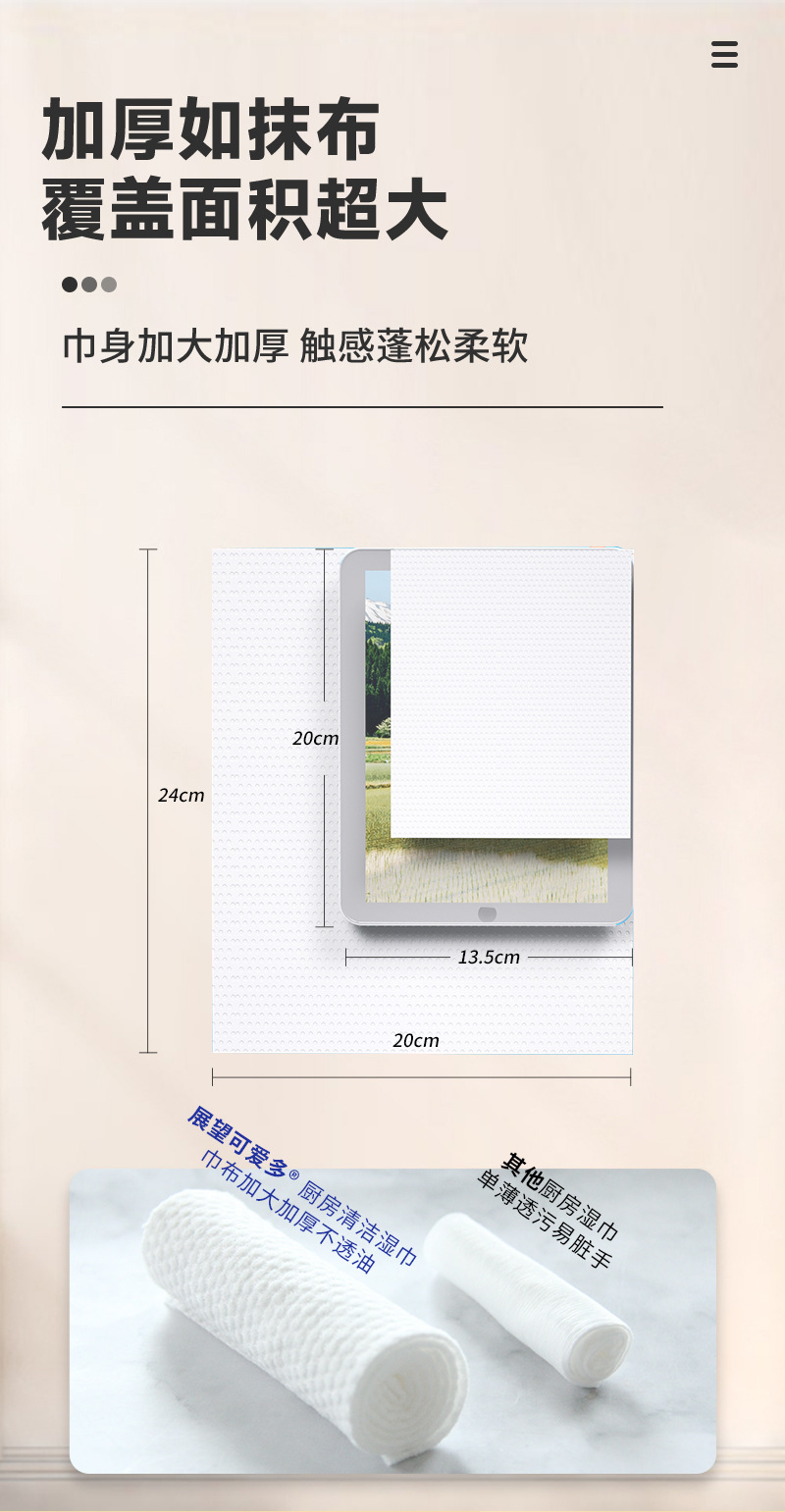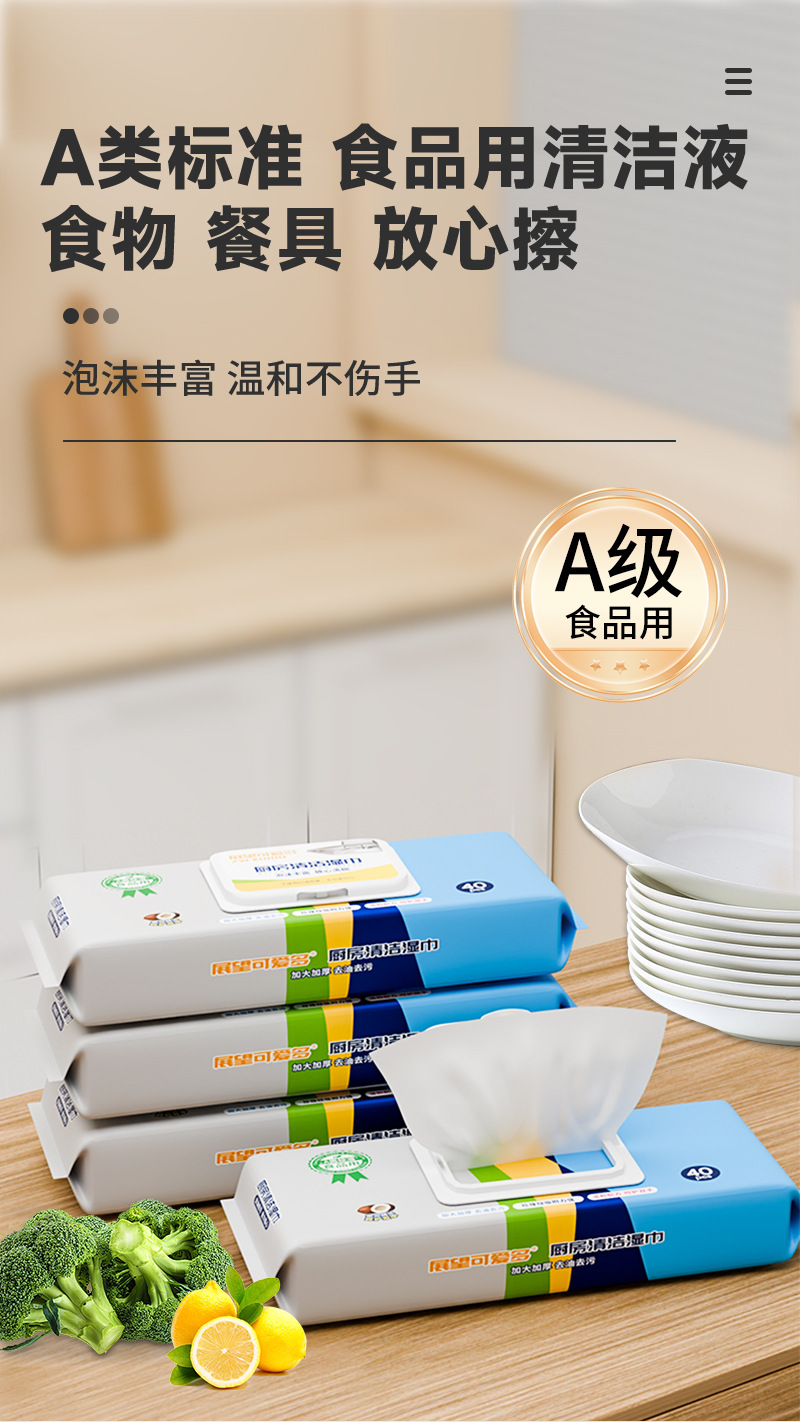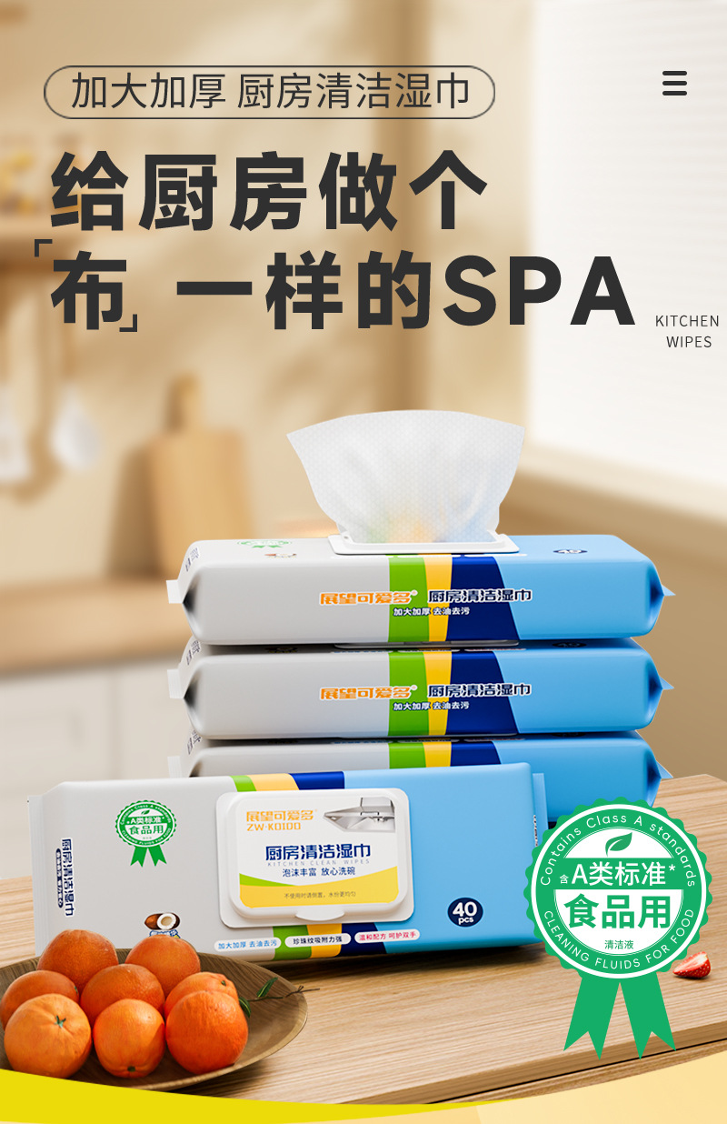 【给厨房做个“布”一样的SPA~】展望可爱多厨房湿巾 去油污清洁家用 强力擦油烟抹布 加大加厚湿纸巾 厨房清洁 一步到位-QQ