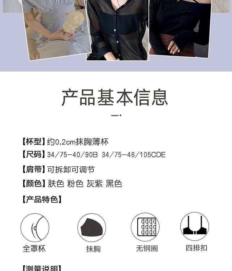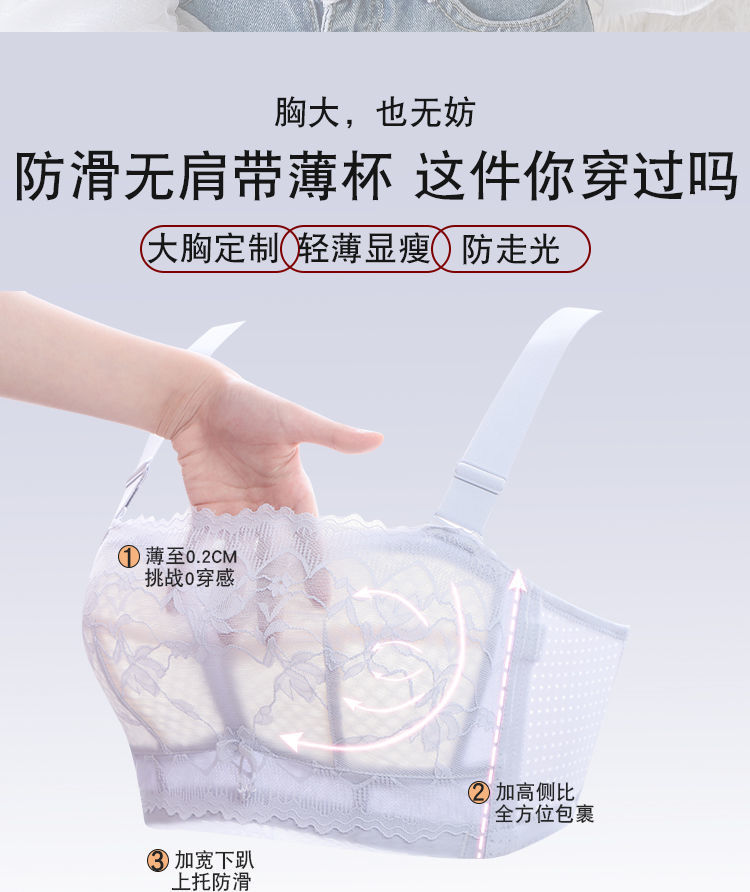 NMZ-3344大胸夏季薄款无肩带内衣女聚拢防滑裹胸性感抹胸无钢圈文胸显小胸