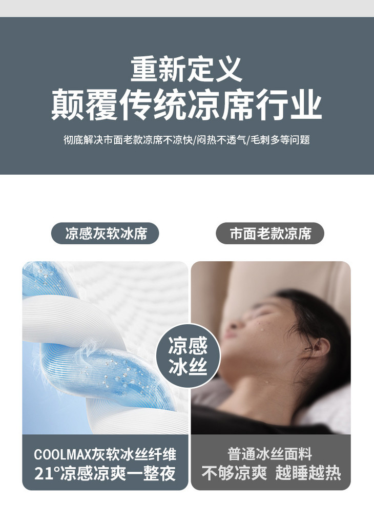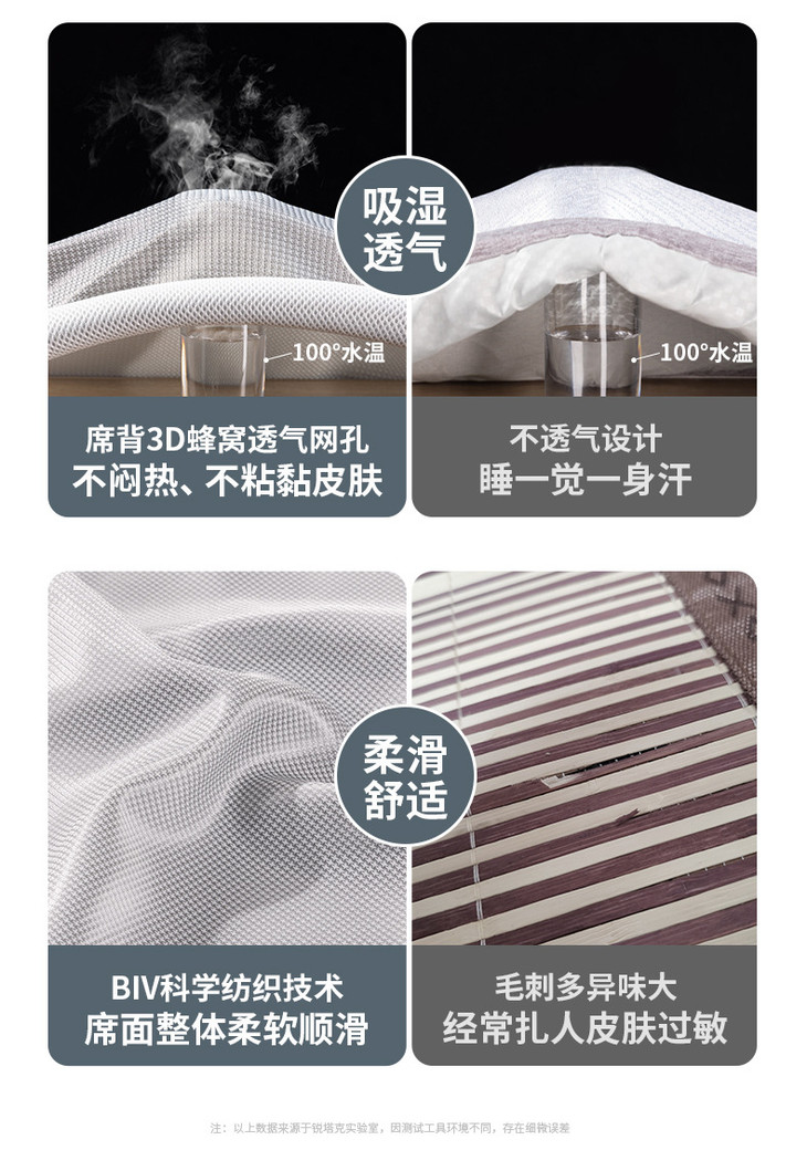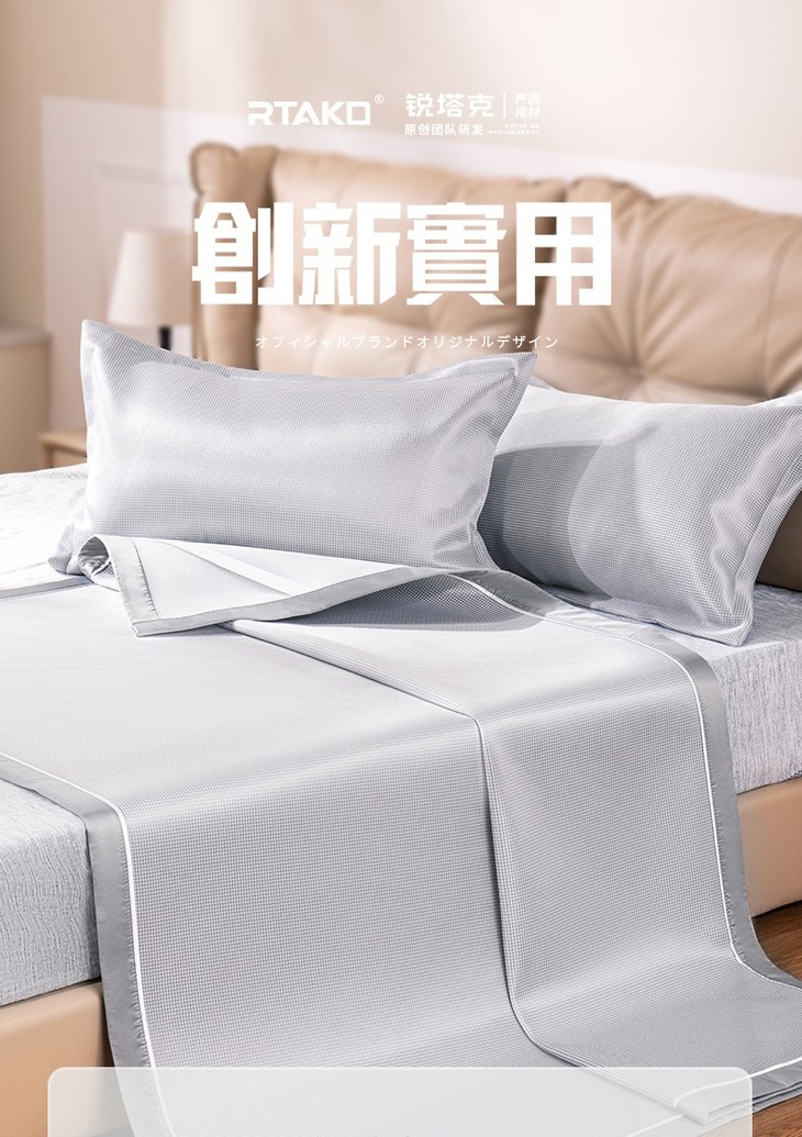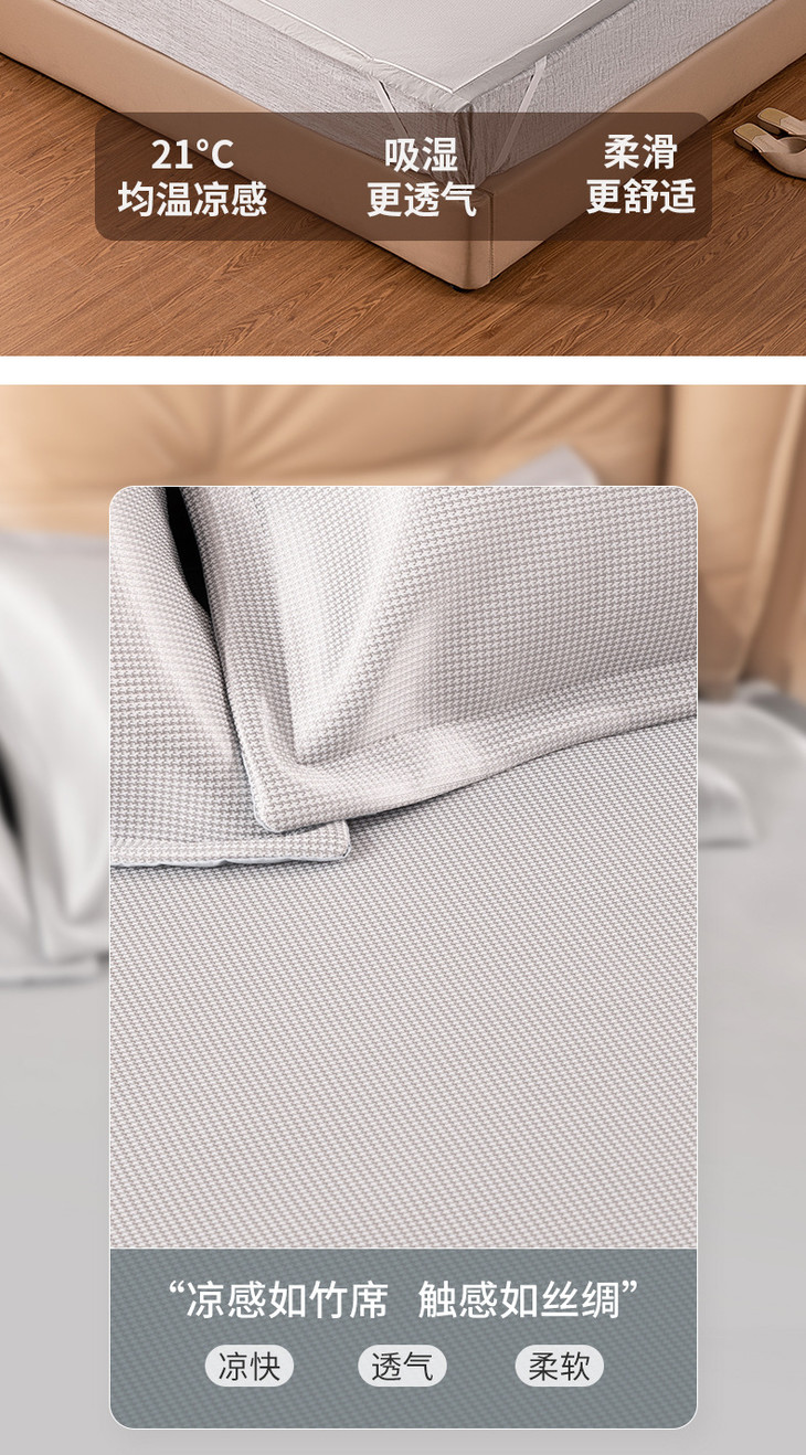 YGWL新款家用纯色可折叠可水洗冰丝凉席三件套