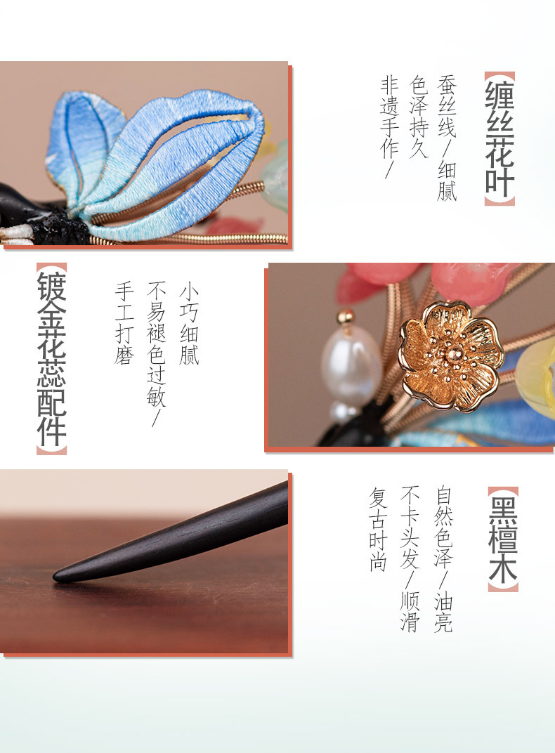 JGL手工缠花发簪小众设计立体花朵簪子古风发饰高级感新款发簪子批发