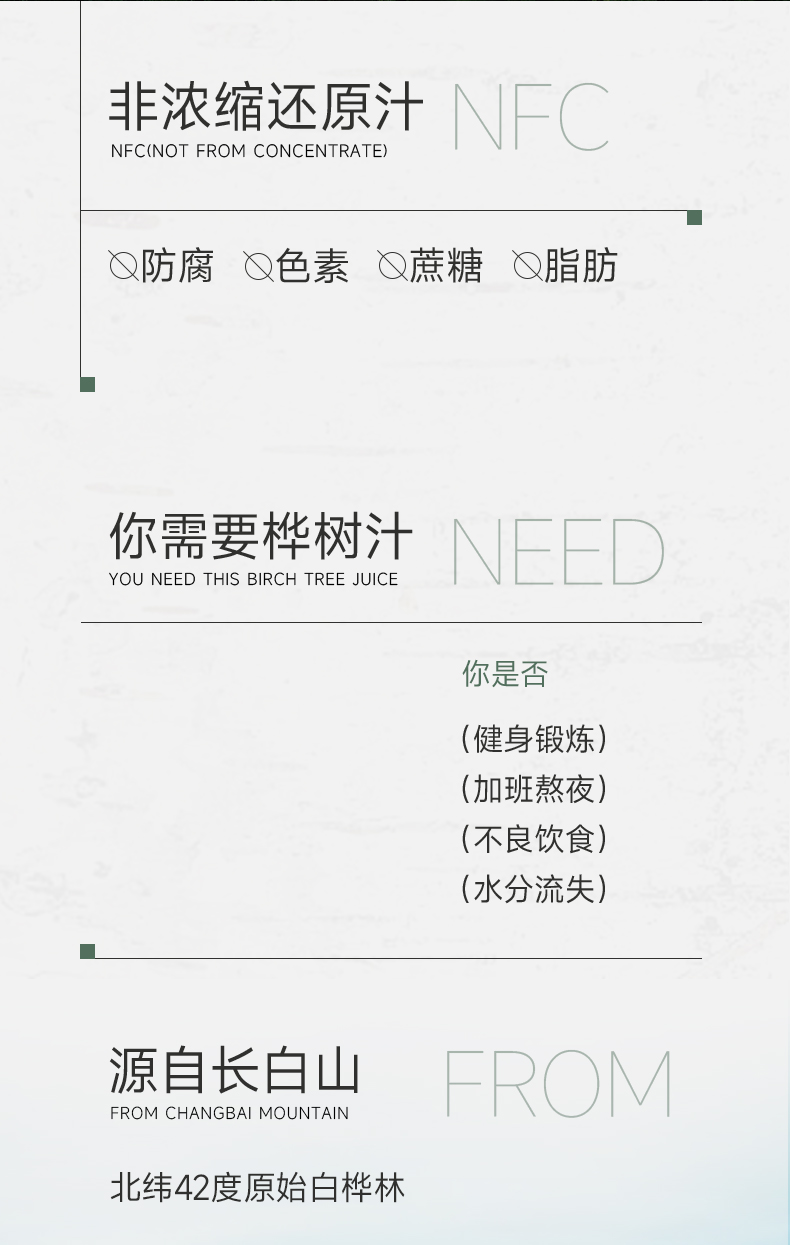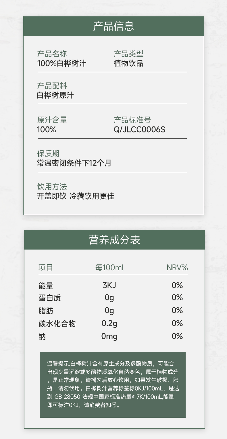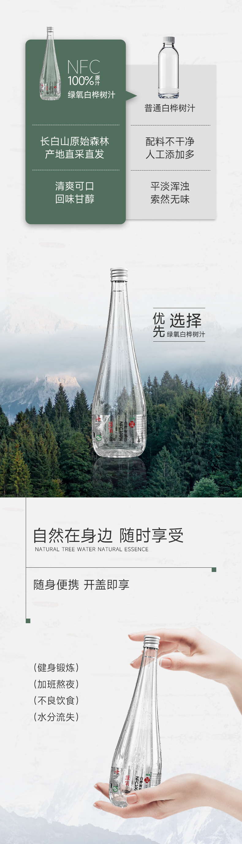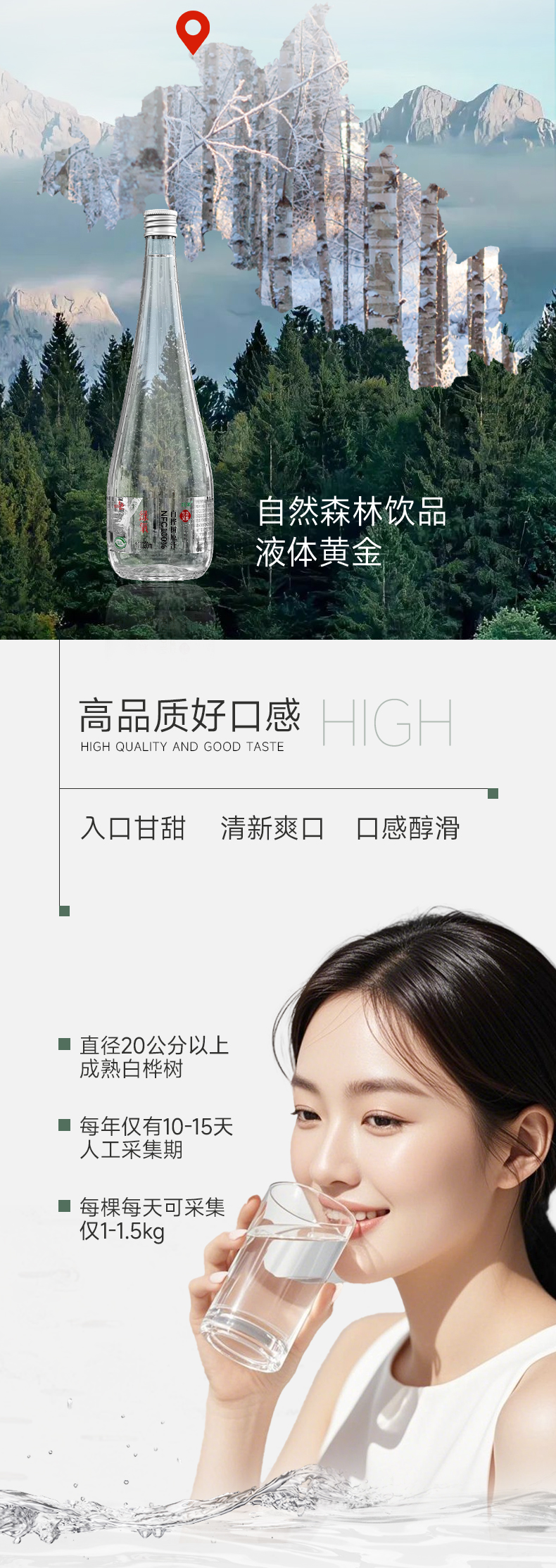 绿氧·NFC100%长白山天然正宗白桦树原汁植物饮品 330ml*6瓶*5箱