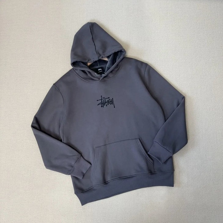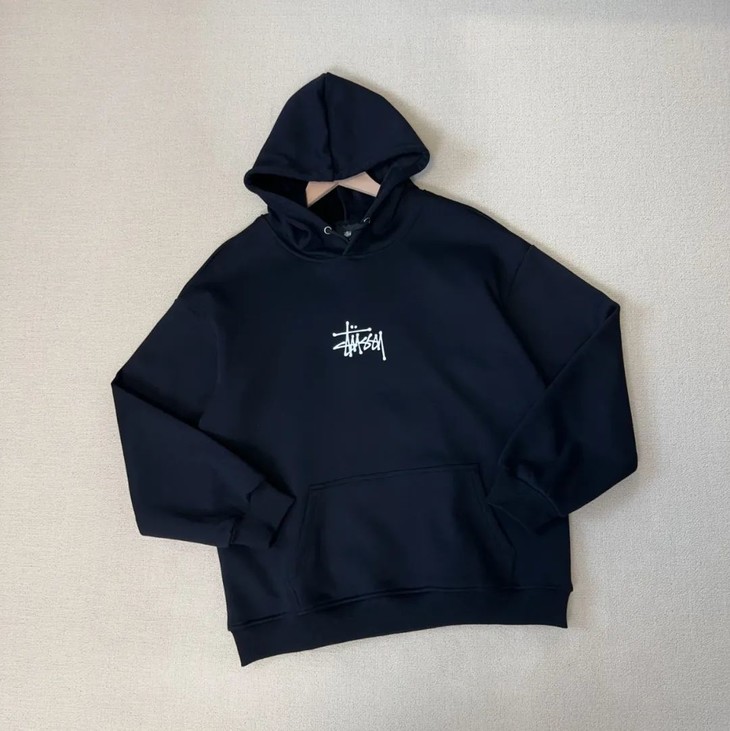 Stussy 斯图西 简约小LOGO印花 复合短绒连帽休闲卫衣 男女情侣款