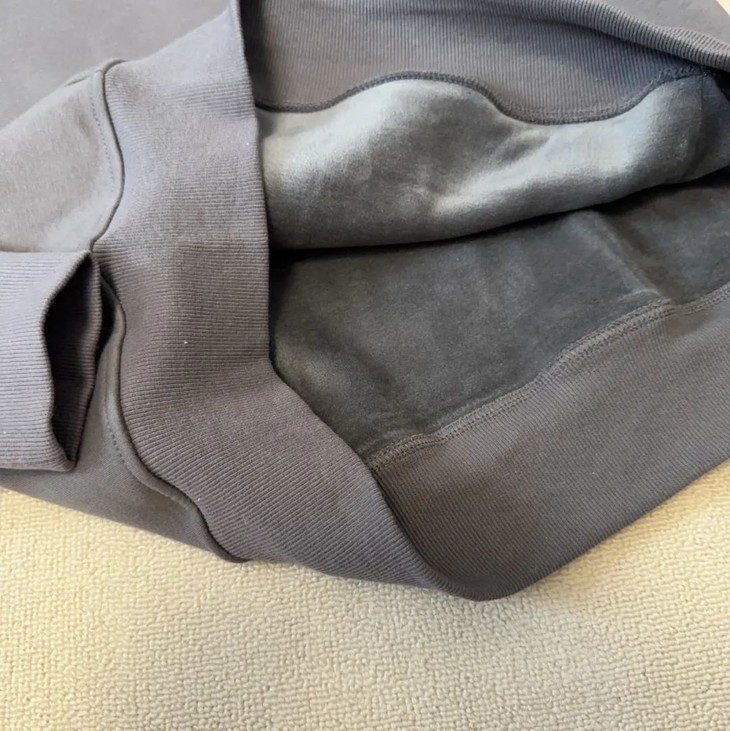 面料是双层复合。外层是全棉,久穿不起球。内层复合烧毛短绒,紧密 不掉绒,保暖性好。绒短 上身不臃肿 不显胖。