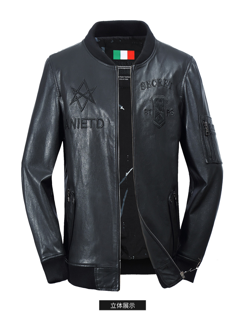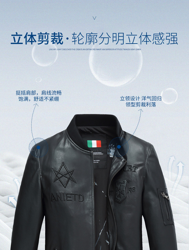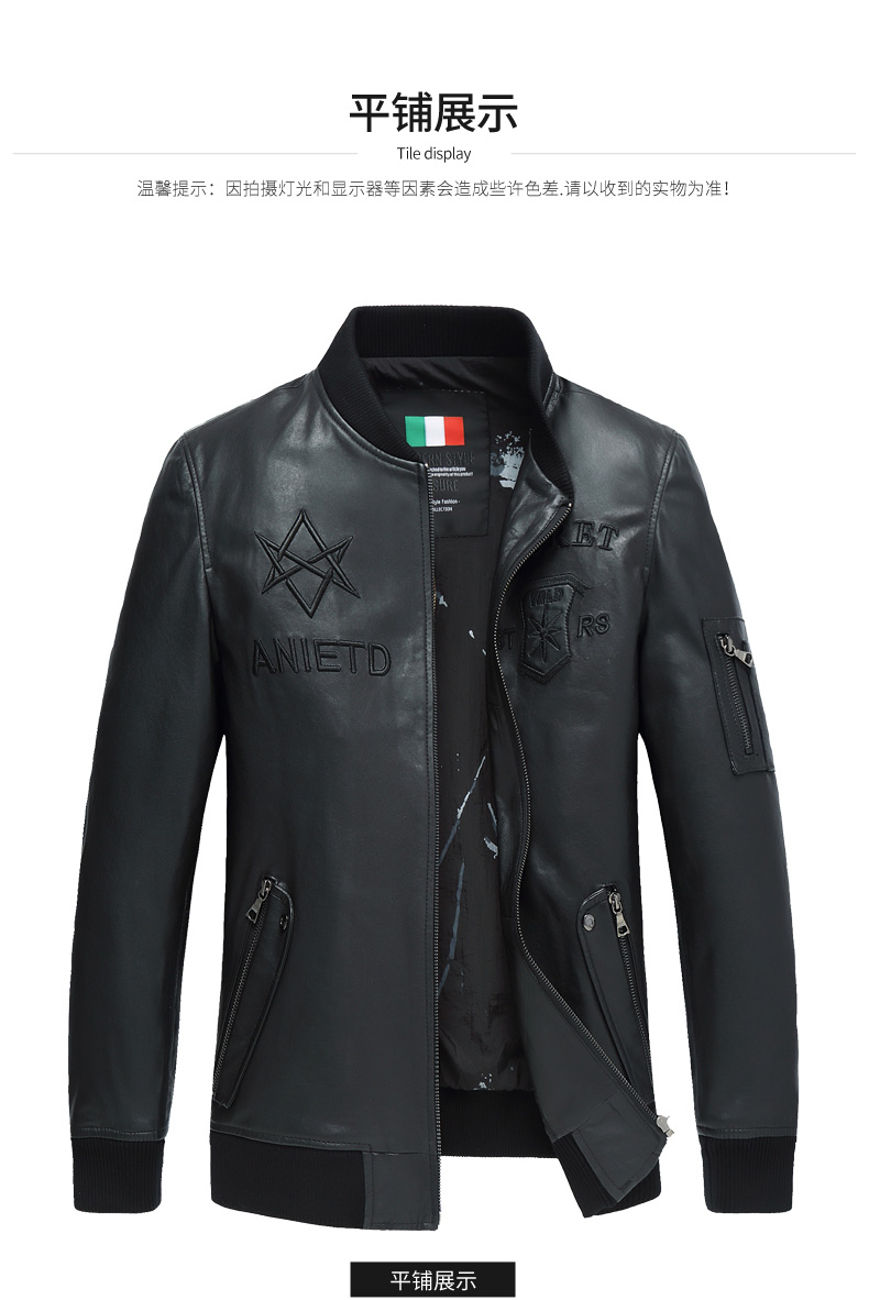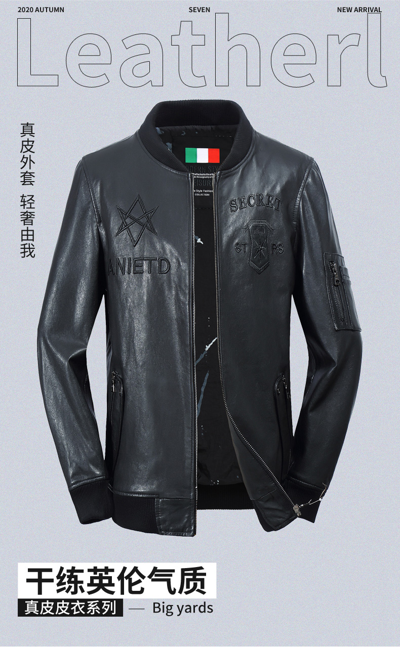 【真皮】大依优型大码皮衣加肥加大绵羊皮外套针织立领大号男装皮草