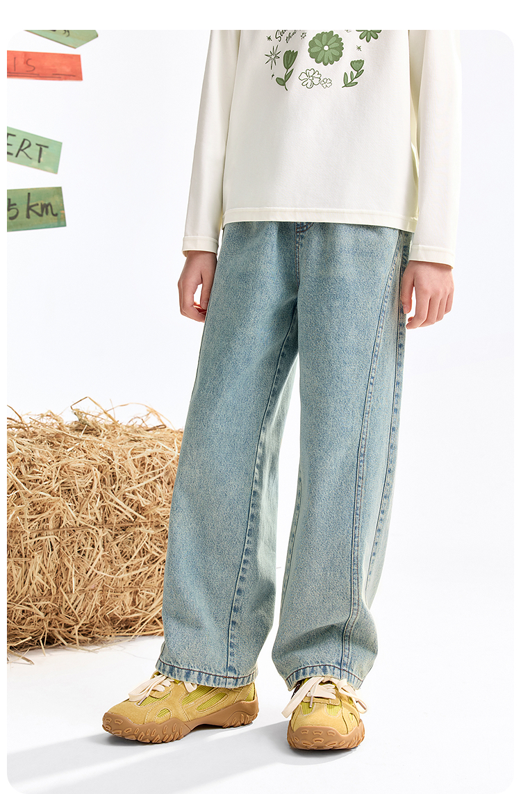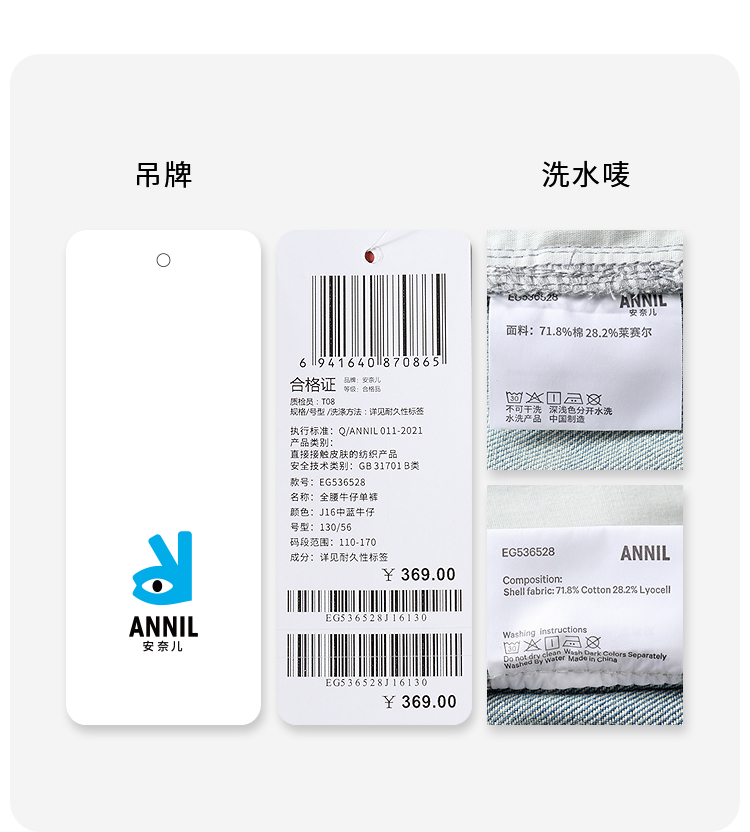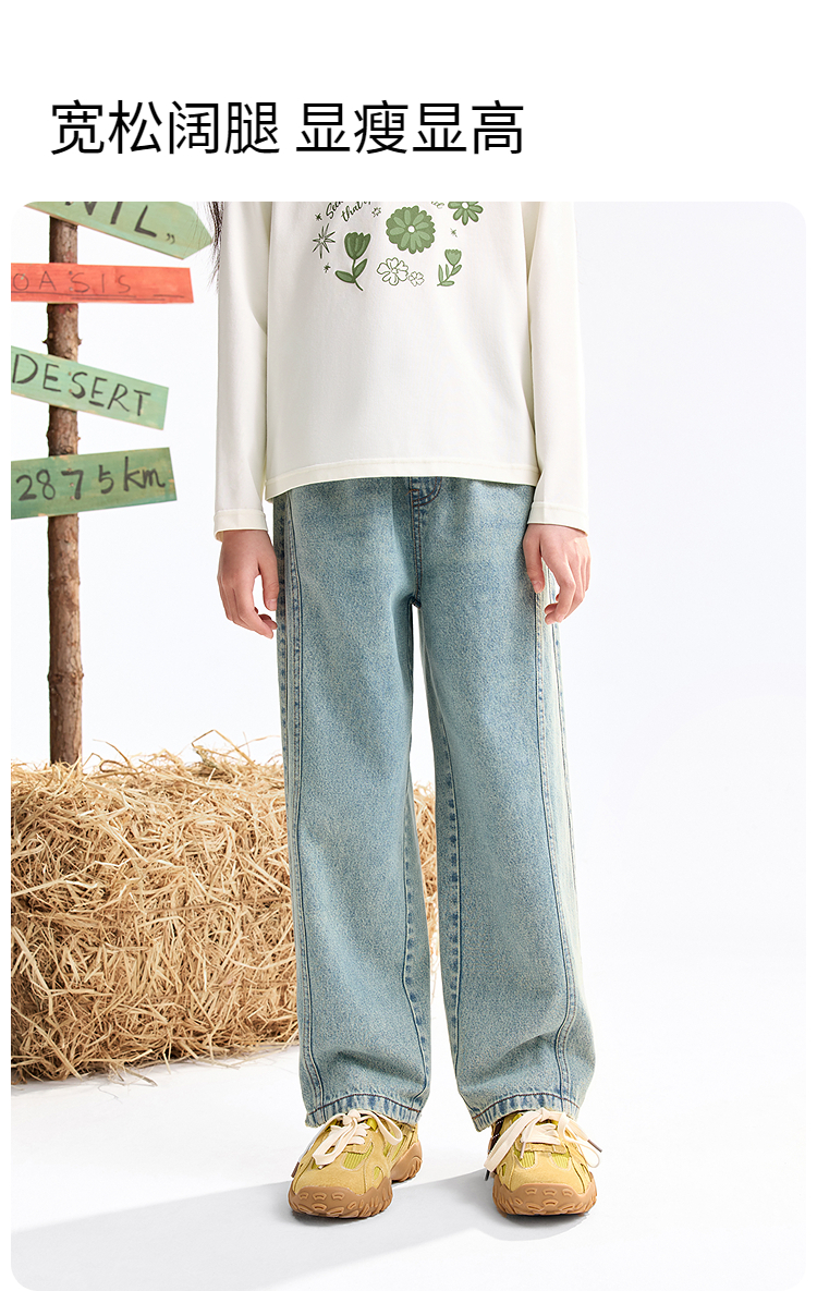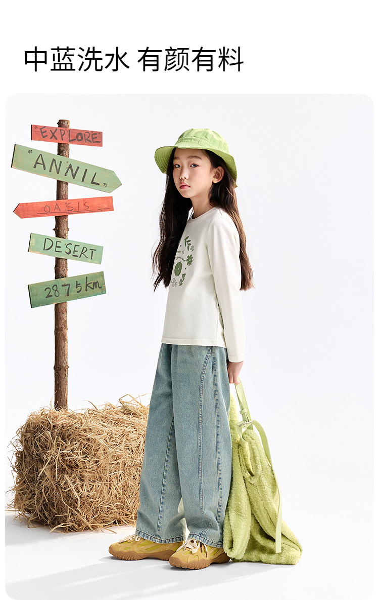 女童全腰牛仔单裤秋季新款安奈儿童装EG536528