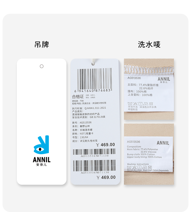 女童长袖连衣裙春季新款安奈儿童装实体店同款AG513536