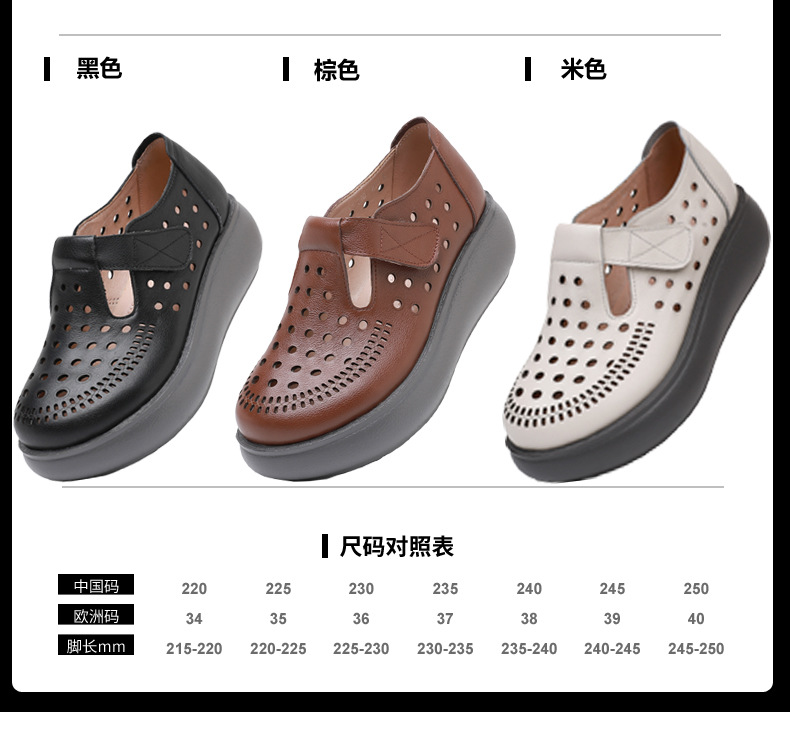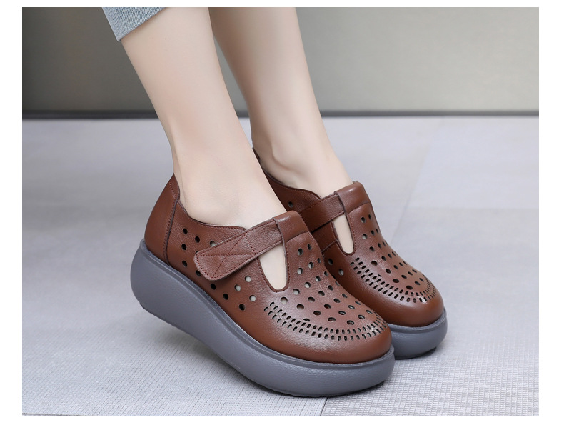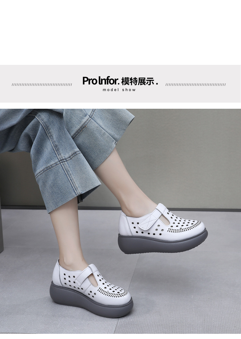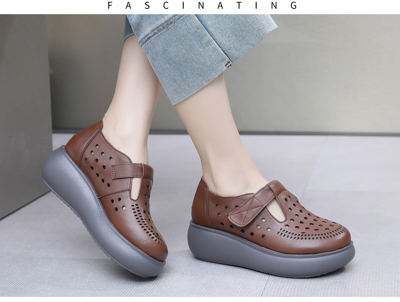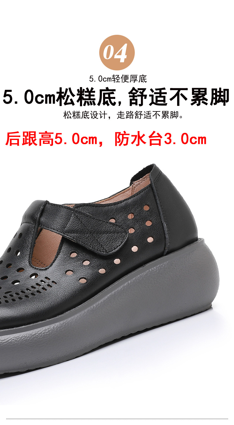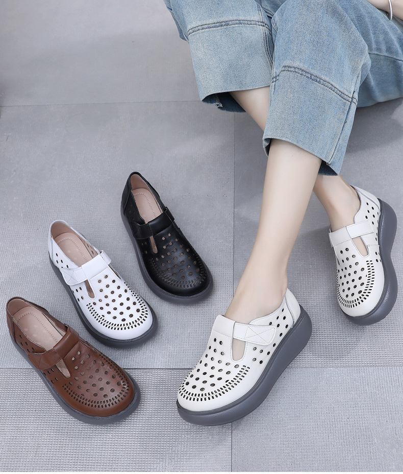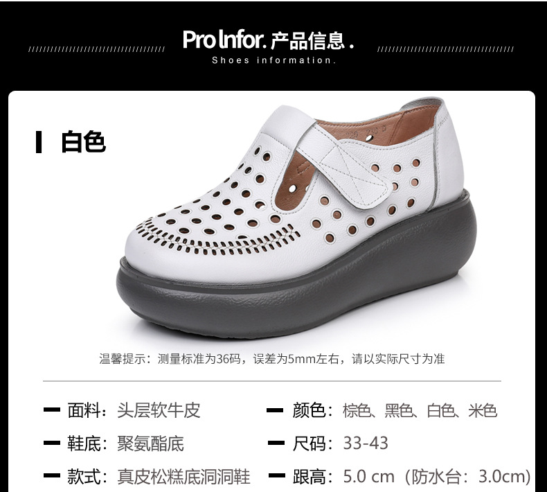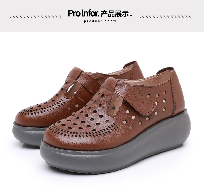 雀说新款真皮女洞洞鞋坡跟软底大码头层牛皮冲孔复古风软底凉鞋AL283