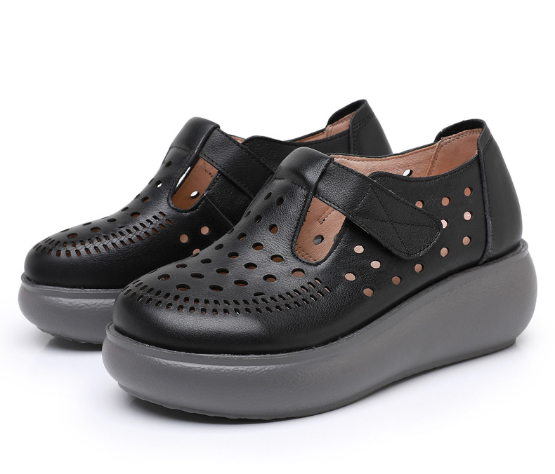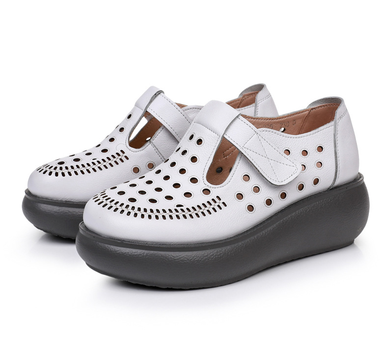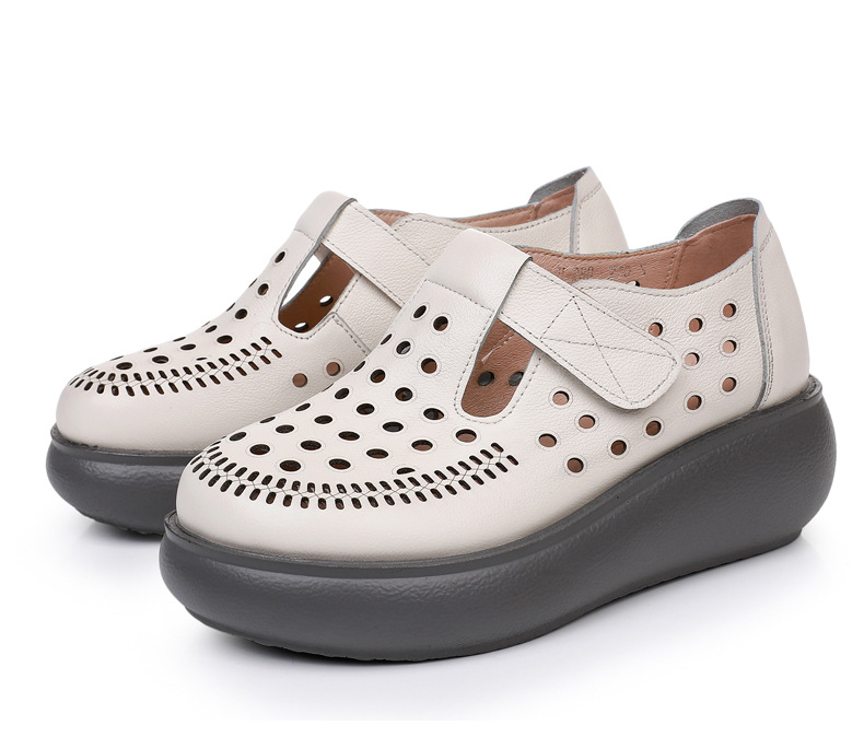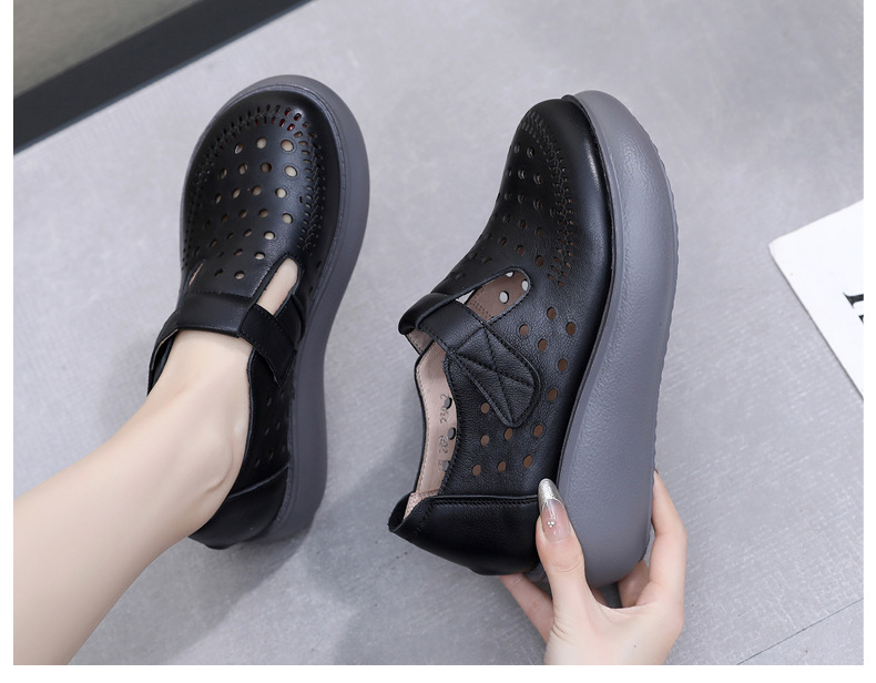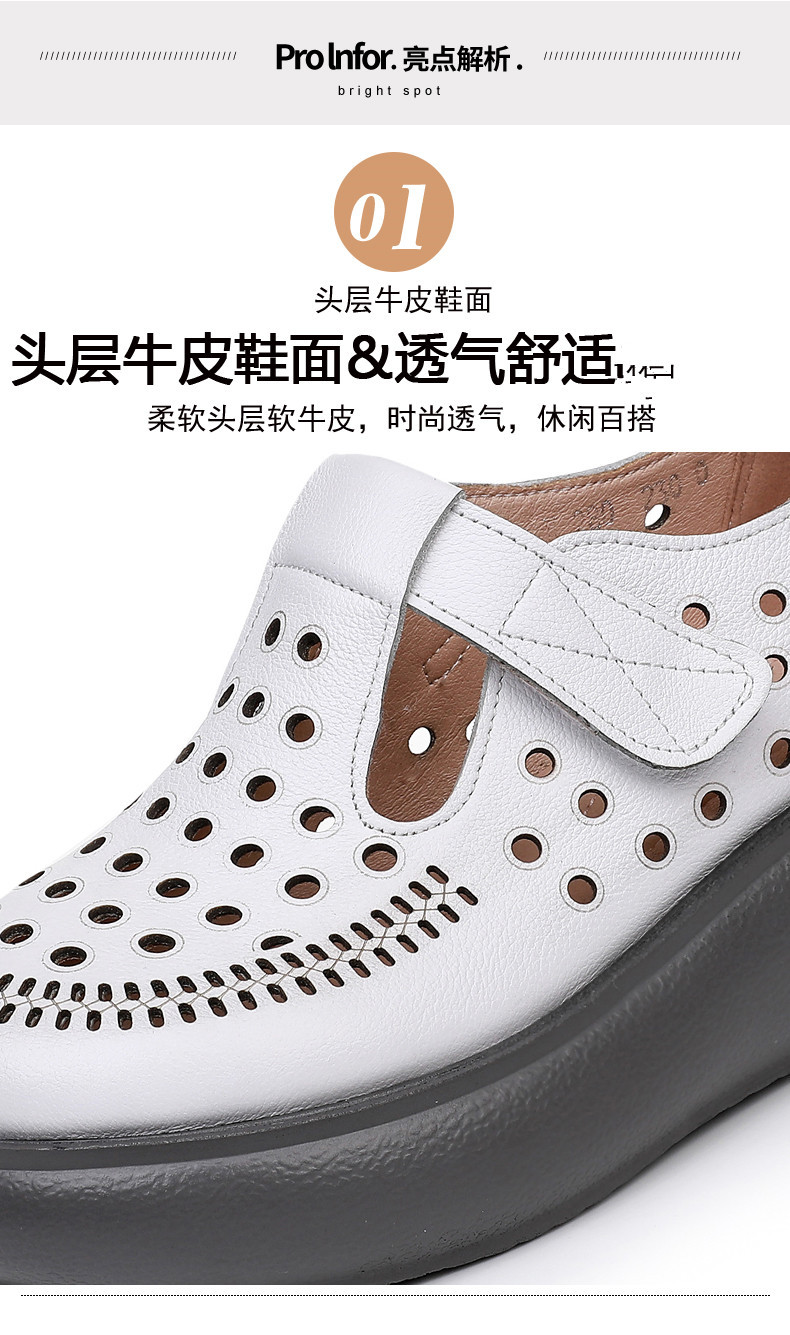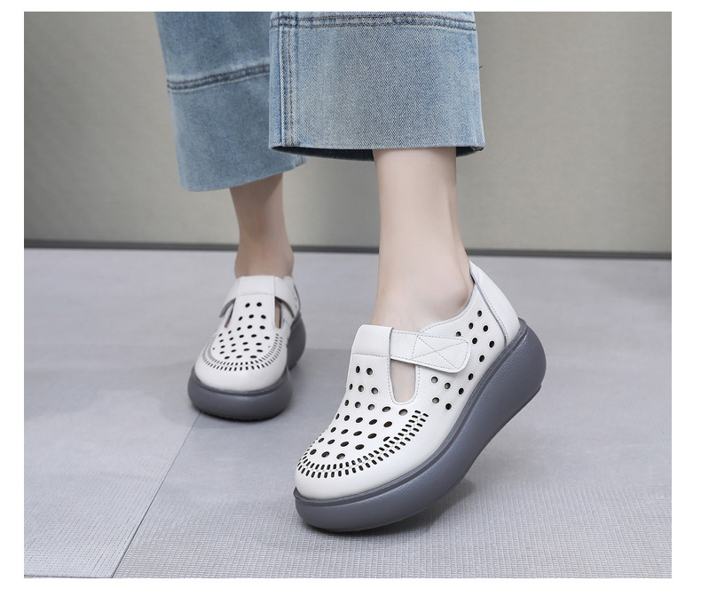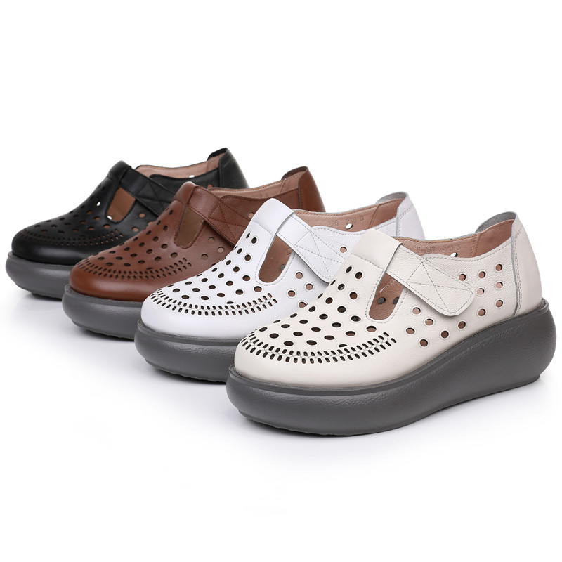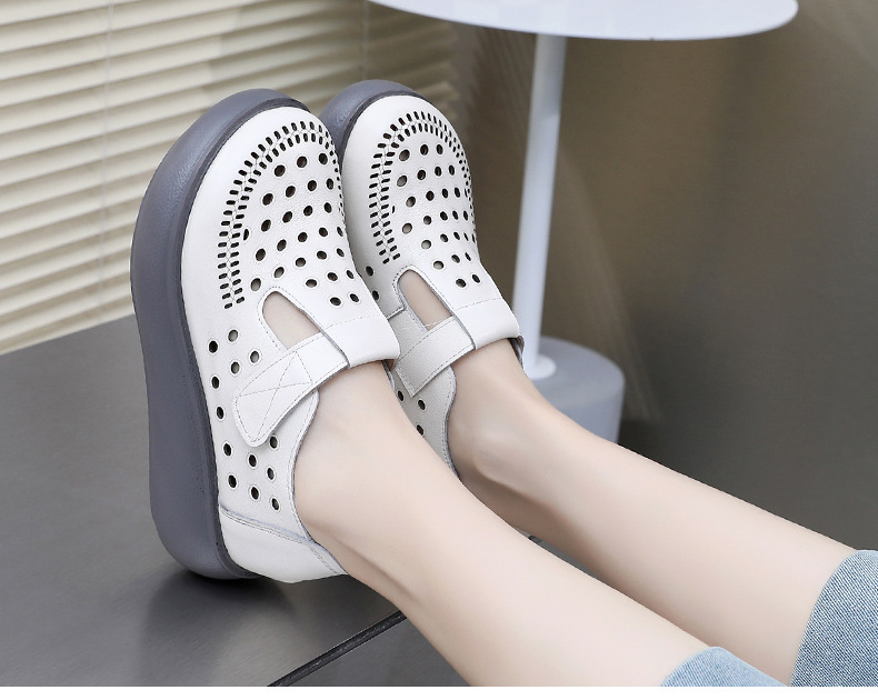 雀说新款真皮女洞洞鞋坡跟软底大码头层牛皮冲孔复古风软底凉鞋AL283