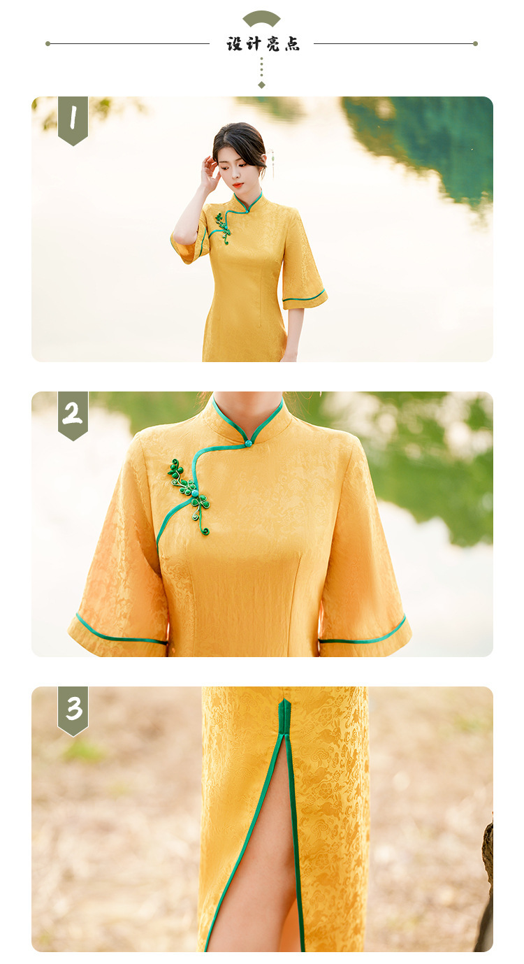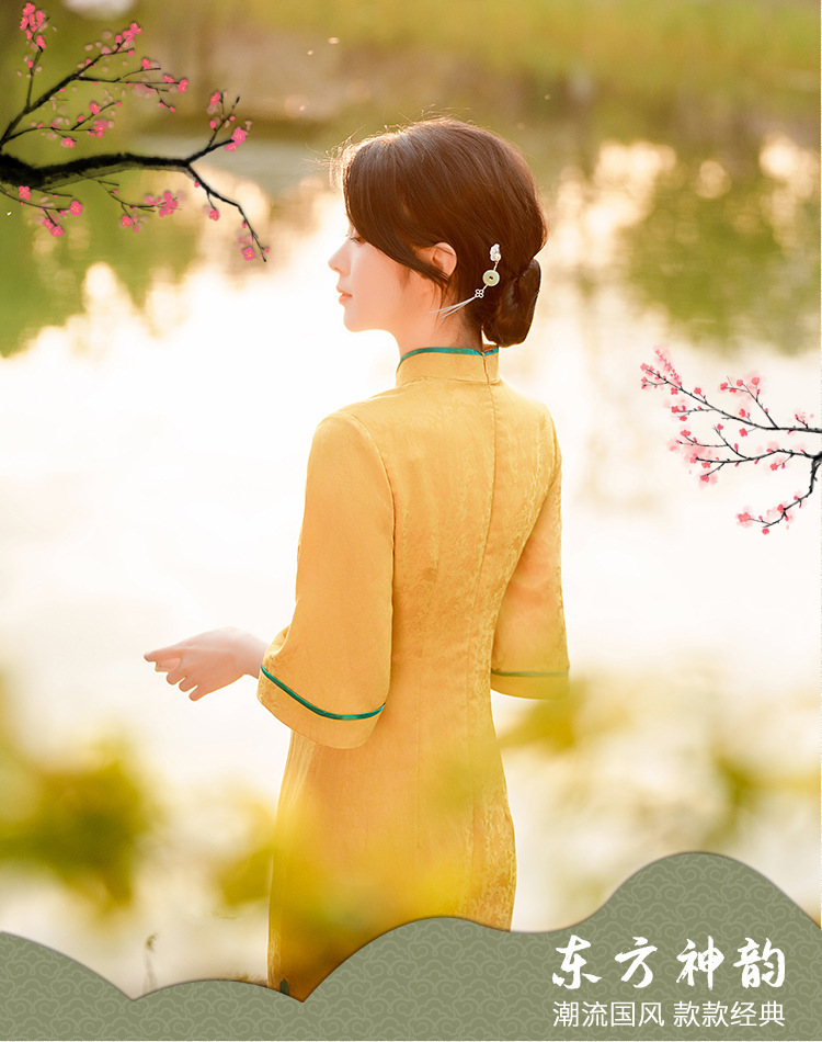 【金榜题名】锦丝提花双层气质高雅旗袍裙JLM1624