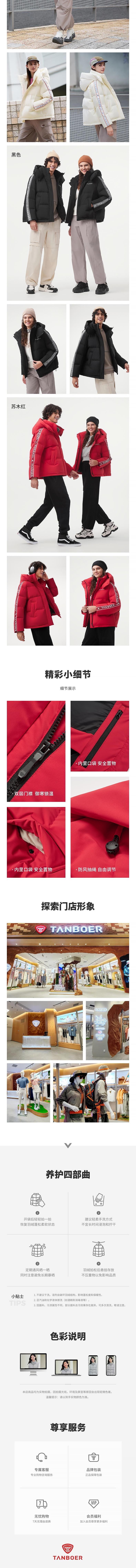 坦博尔 羽绒服女短款可脱卸帽 TBF550302A