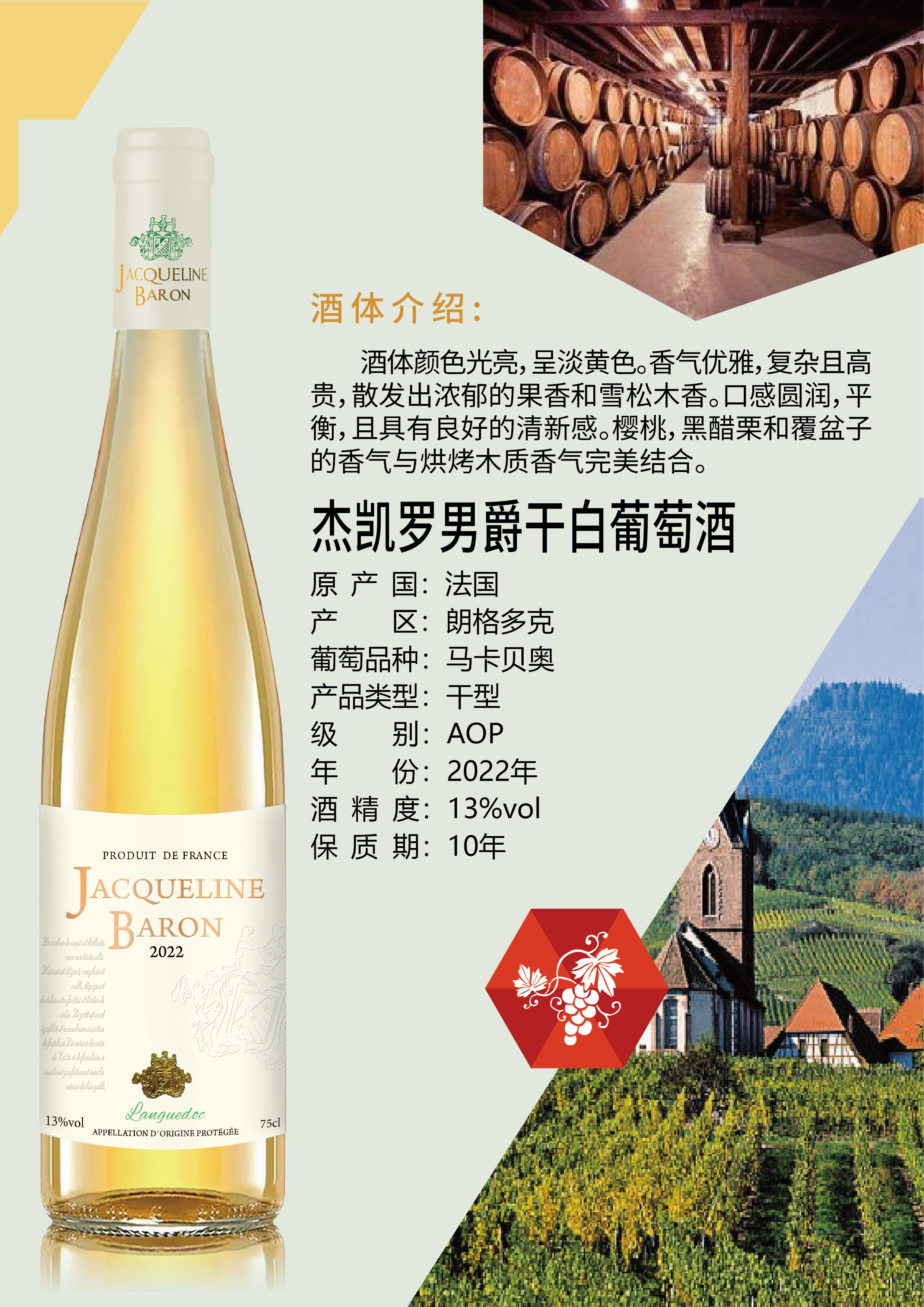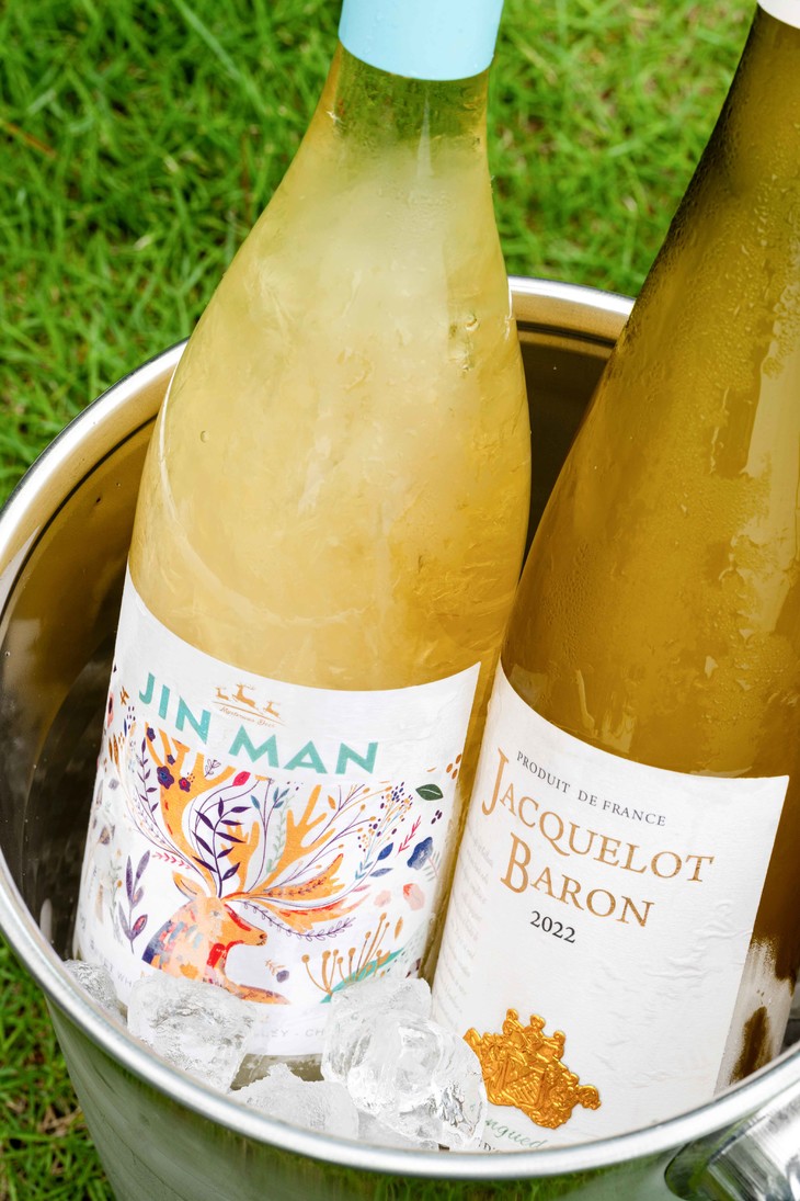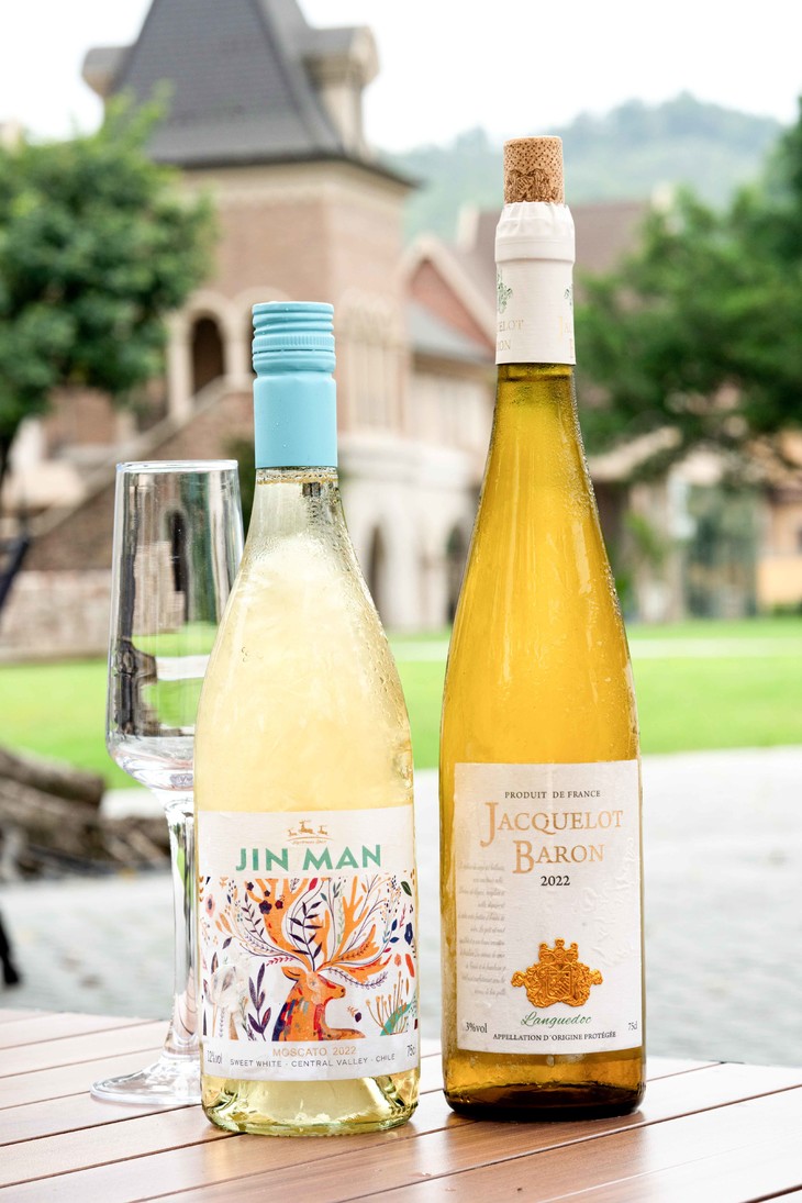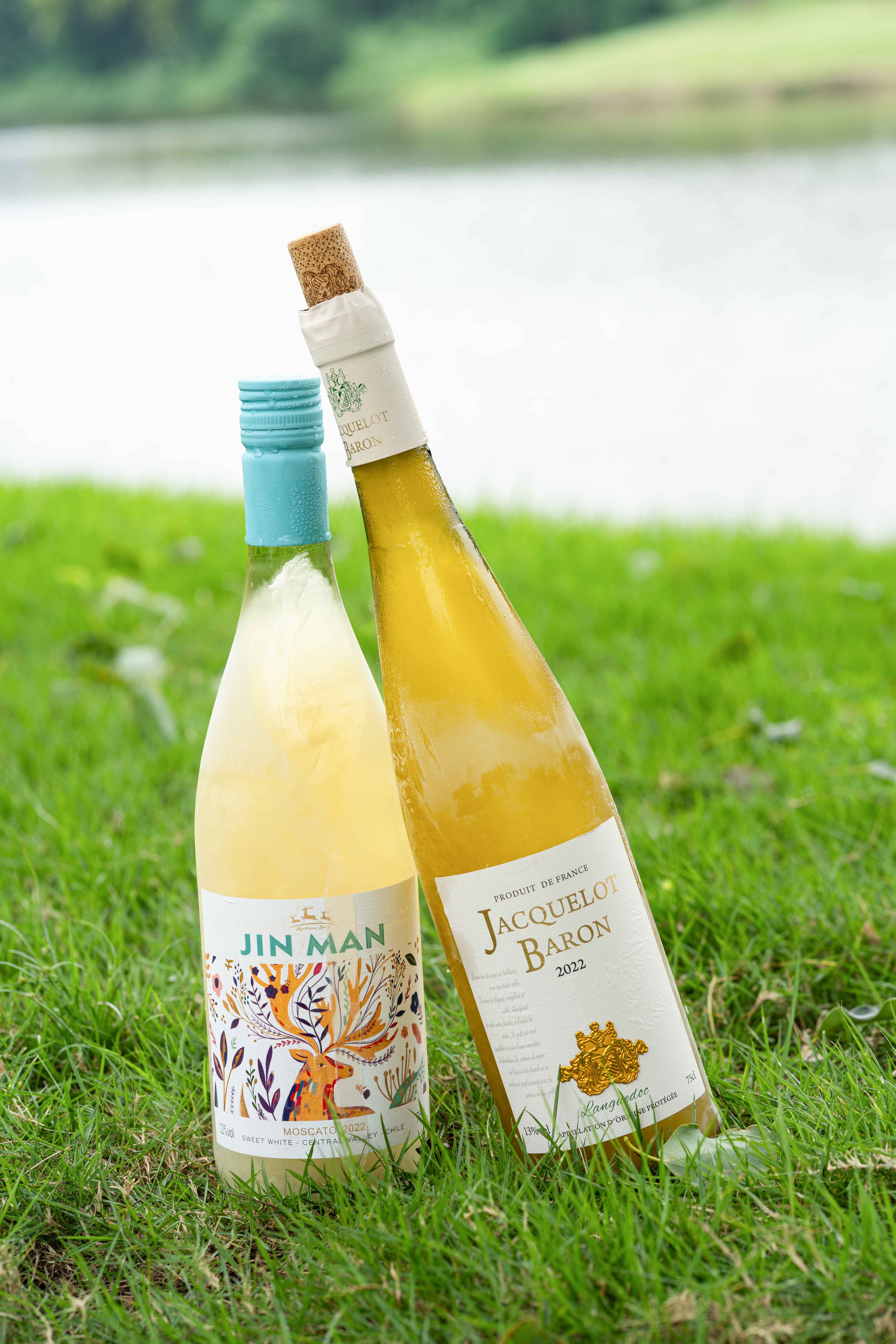 【法国/智利原瓶进口 干白+甜白】JACQUELOT BARON干白葡萄酒13%vol +JIN MAN甜白葡萄酒12%vol( 750ml*2瓶送镭射手提高档冰袋)