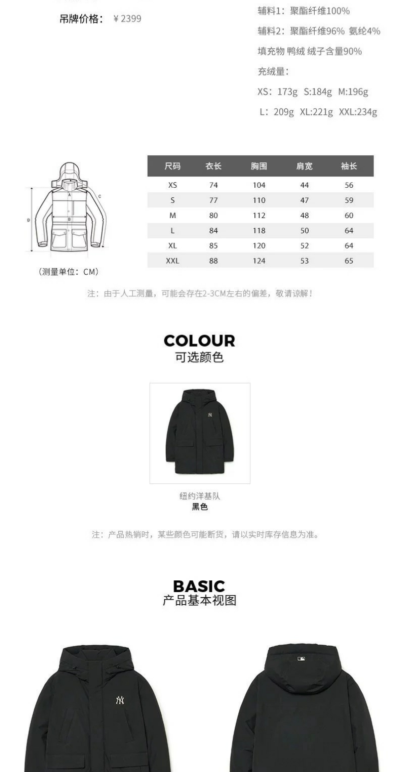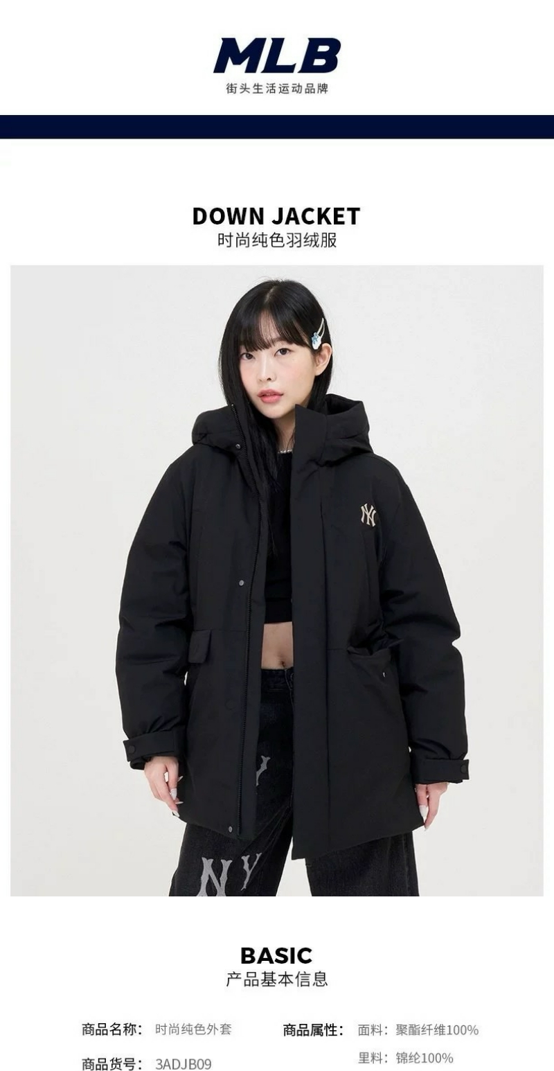 MLB羽绒服2023秋冬新款小标连帽防风保暖外套男女款休闲上衣3ADJB0936