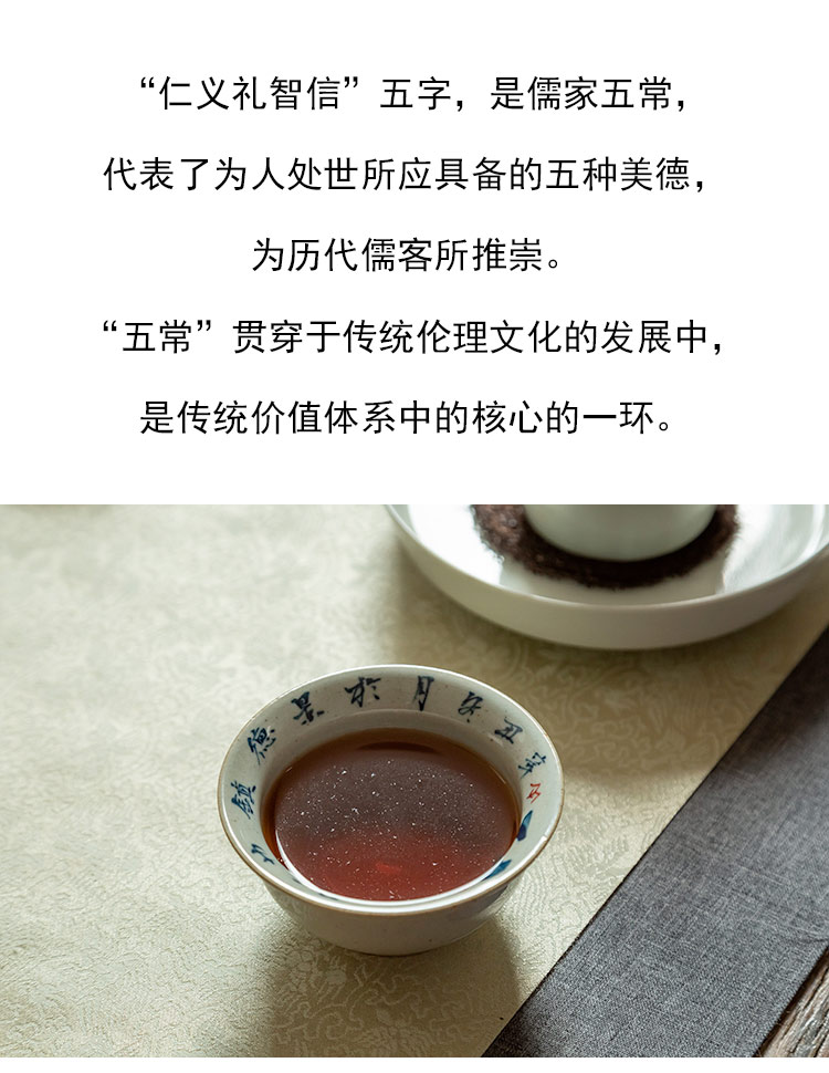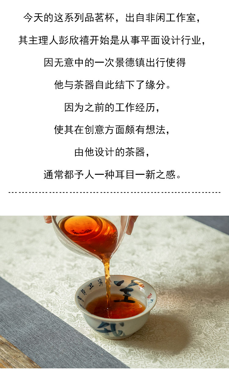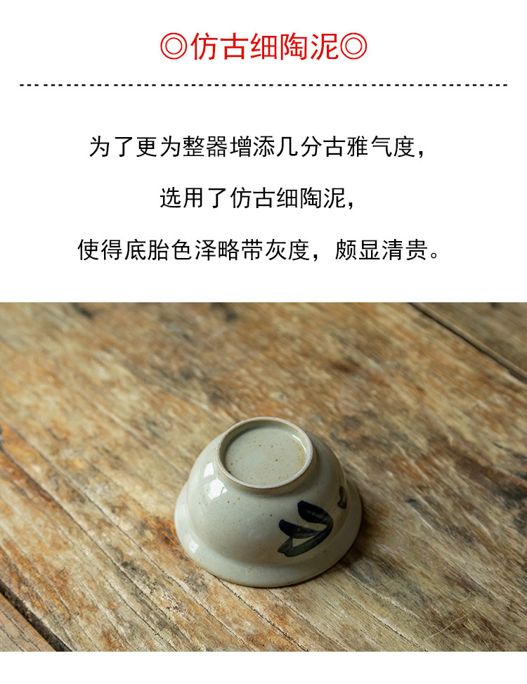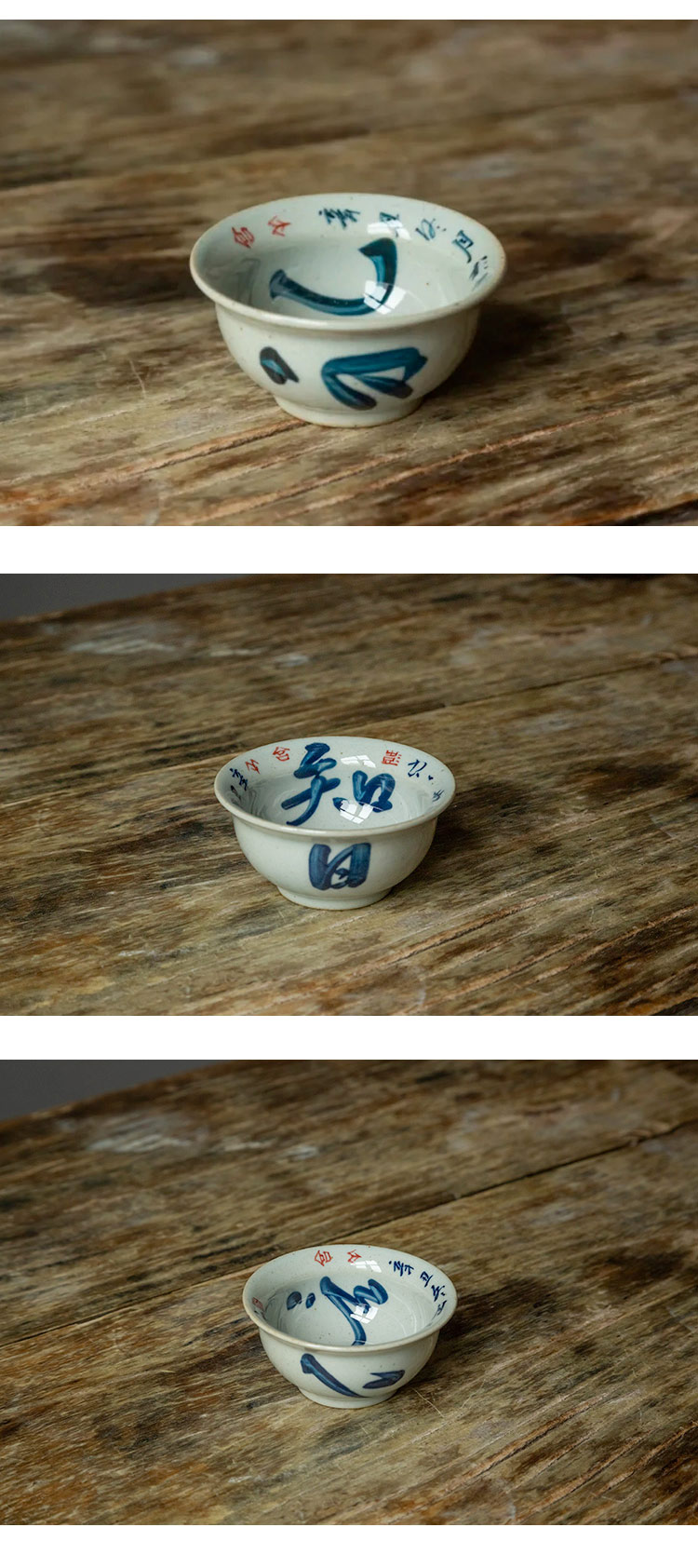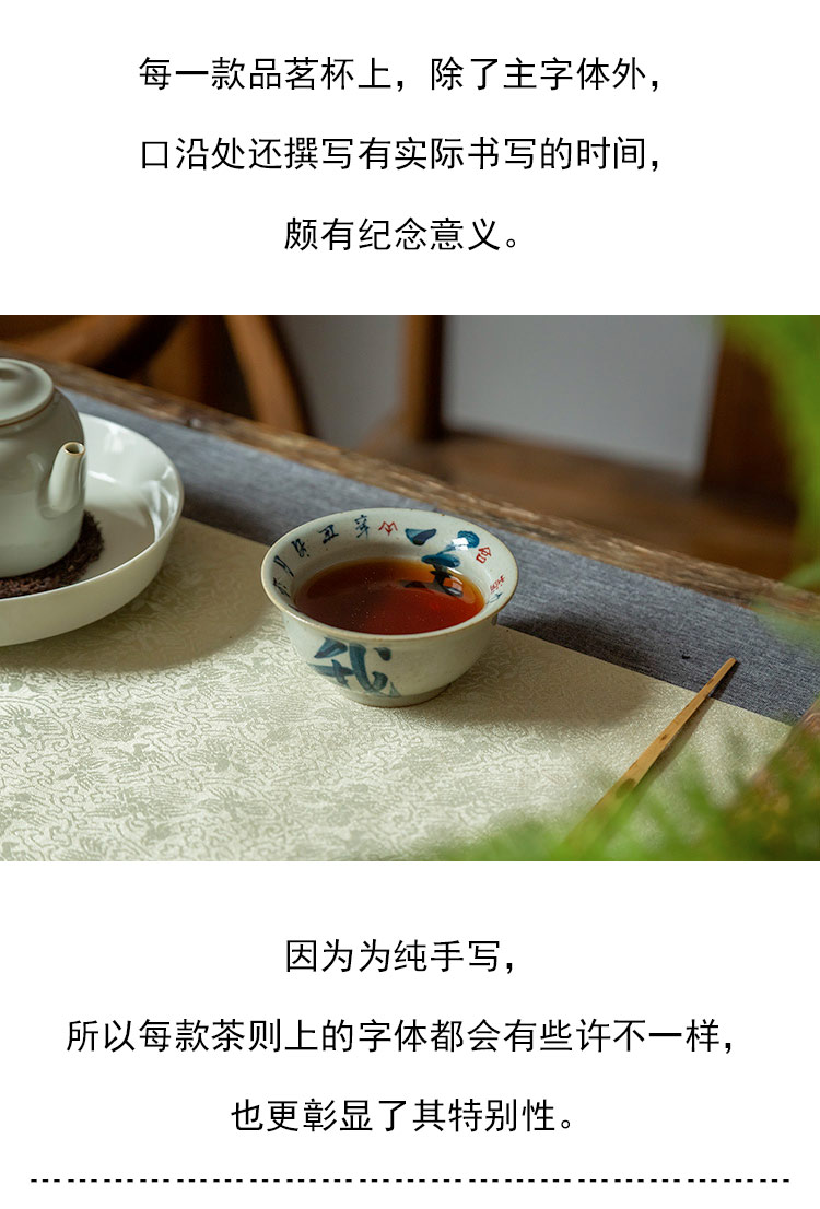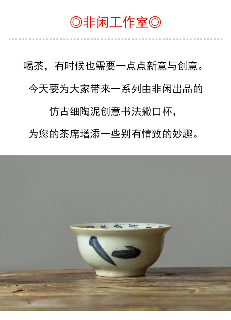 茶香记 景德镇非闲仿古细陶泥创意书法撇口杯80ml品茗杯陶瓷茶杯