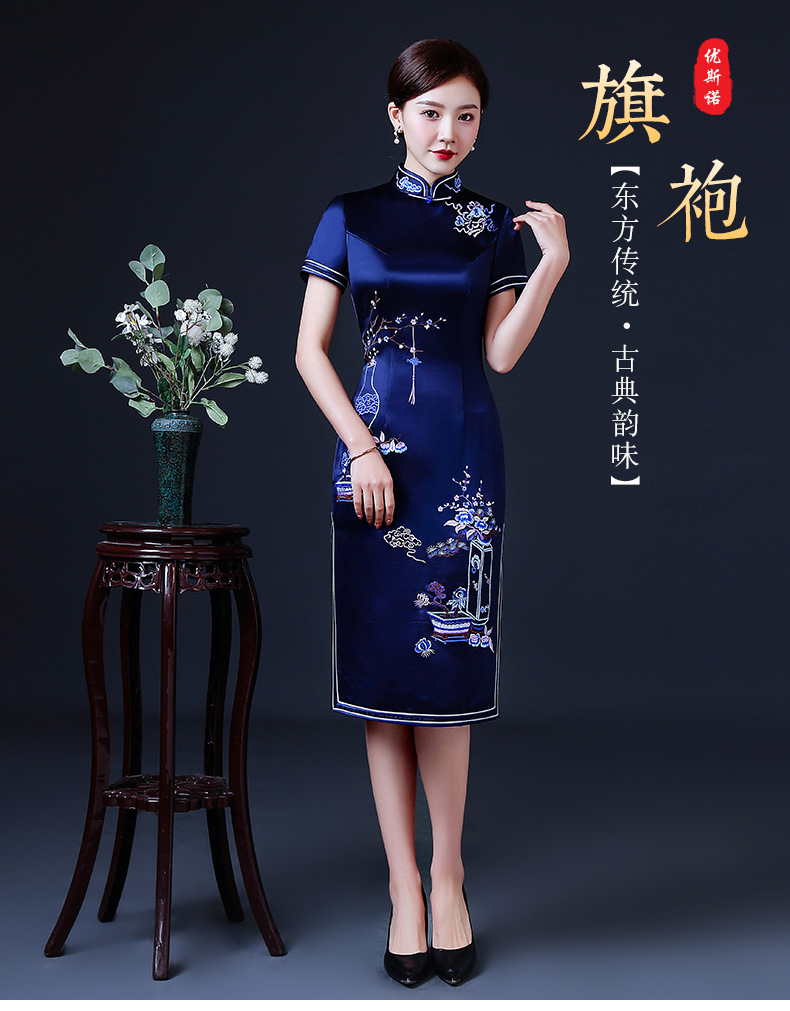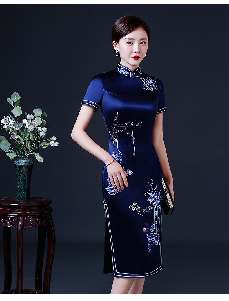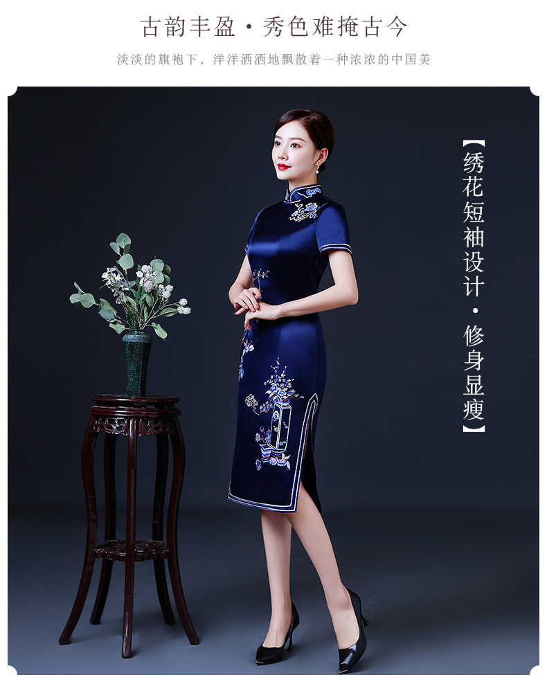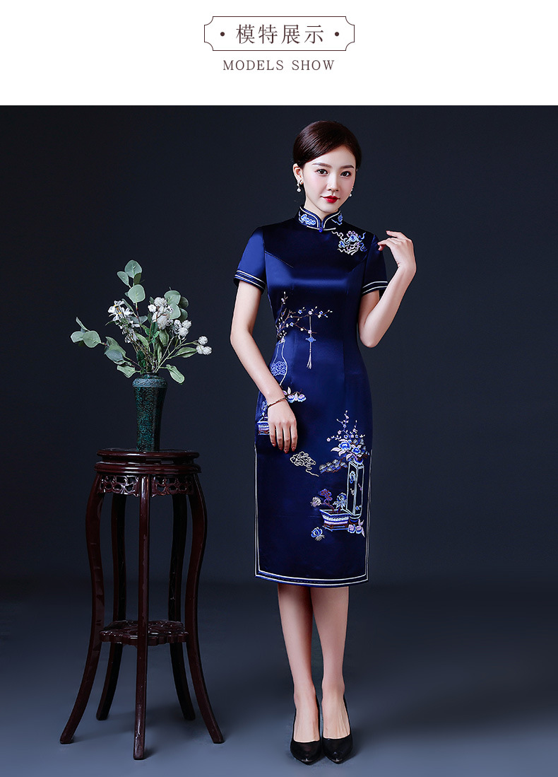 上海旗袍厂LHS-2039年轻旗袍2021新款气质中年妈妈婚礼礼服洋气夏装优雅中国风连衣裙