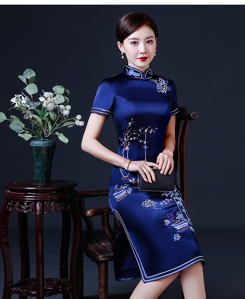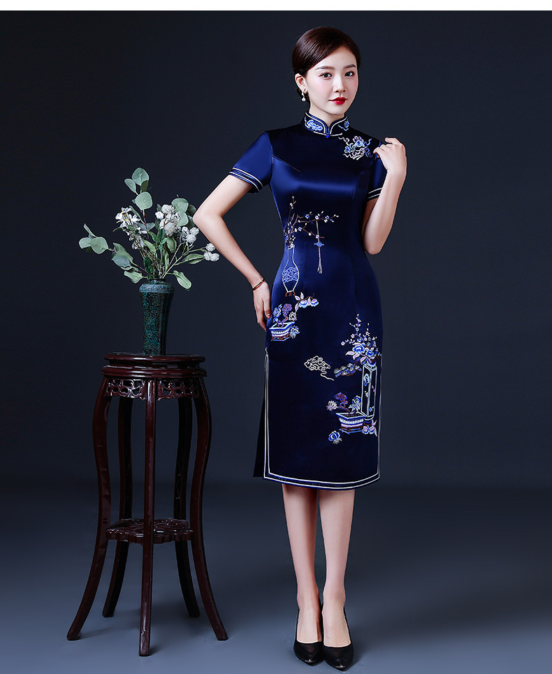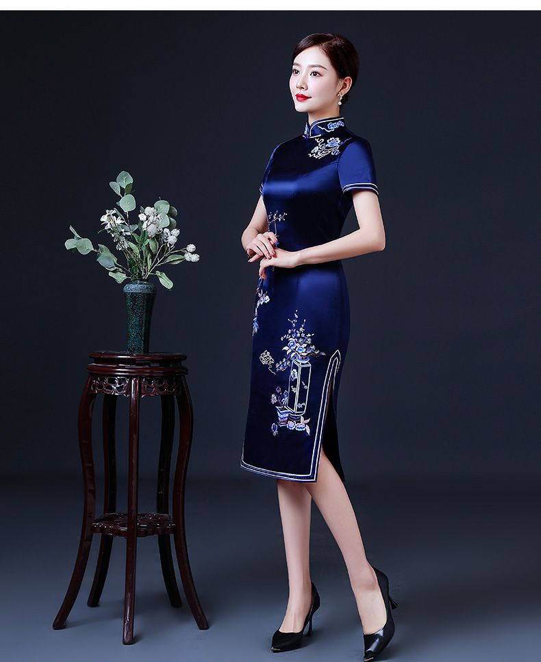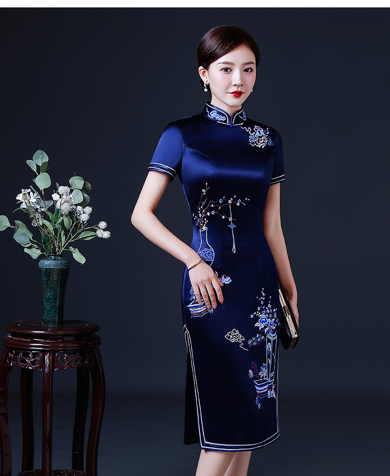 上海旗袍厂LHS-2039年轻旗袍2021新款气质中年妈妈婚礼礼服洋气夏装优雅中国风连衣裙