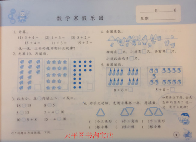 张天孝主编 浙教版数学寒假乐园一年级