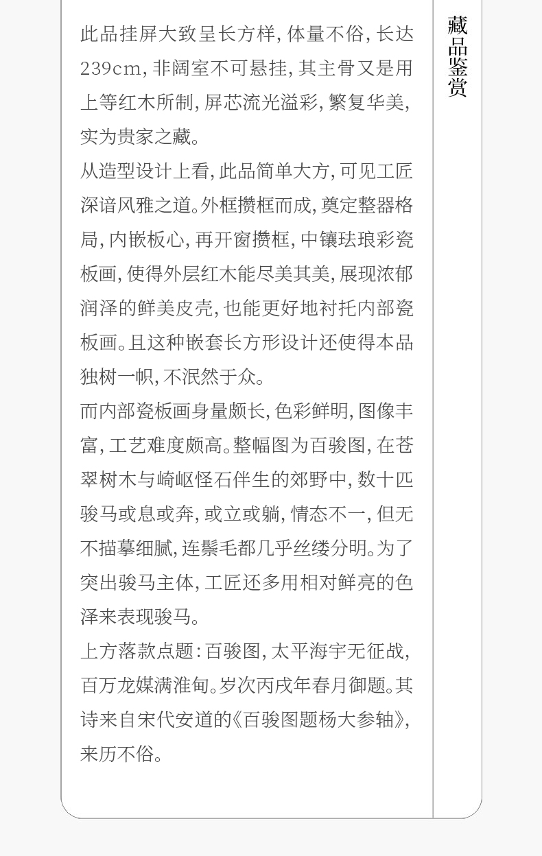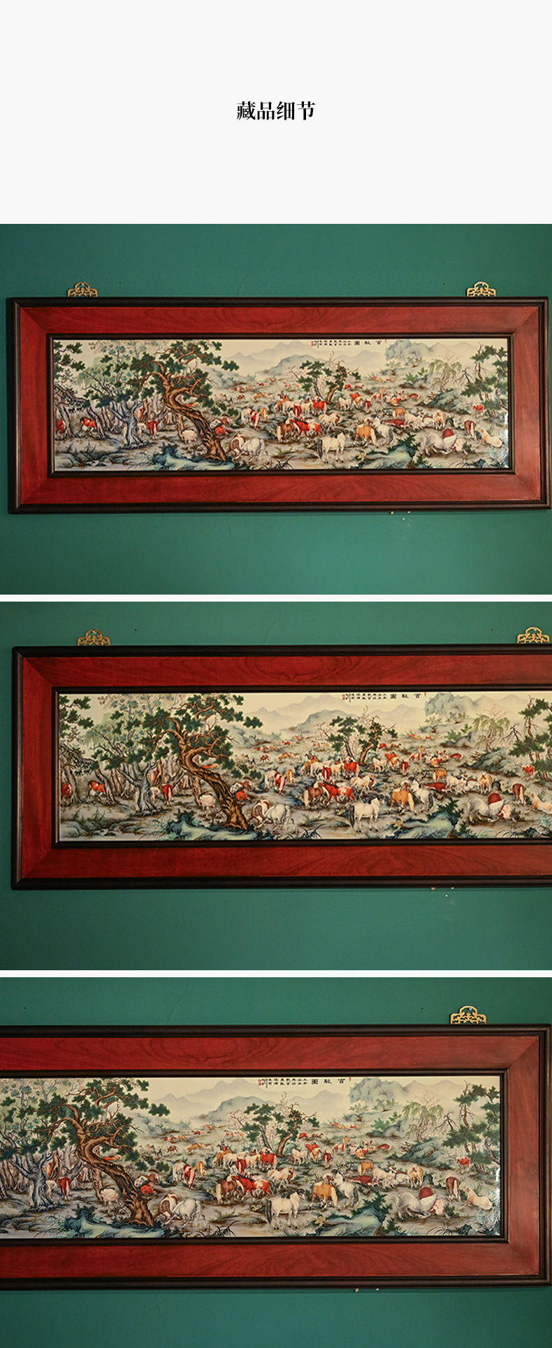 二十世纪 红木镶珐琅彩百骏图瓷板画大挂屏