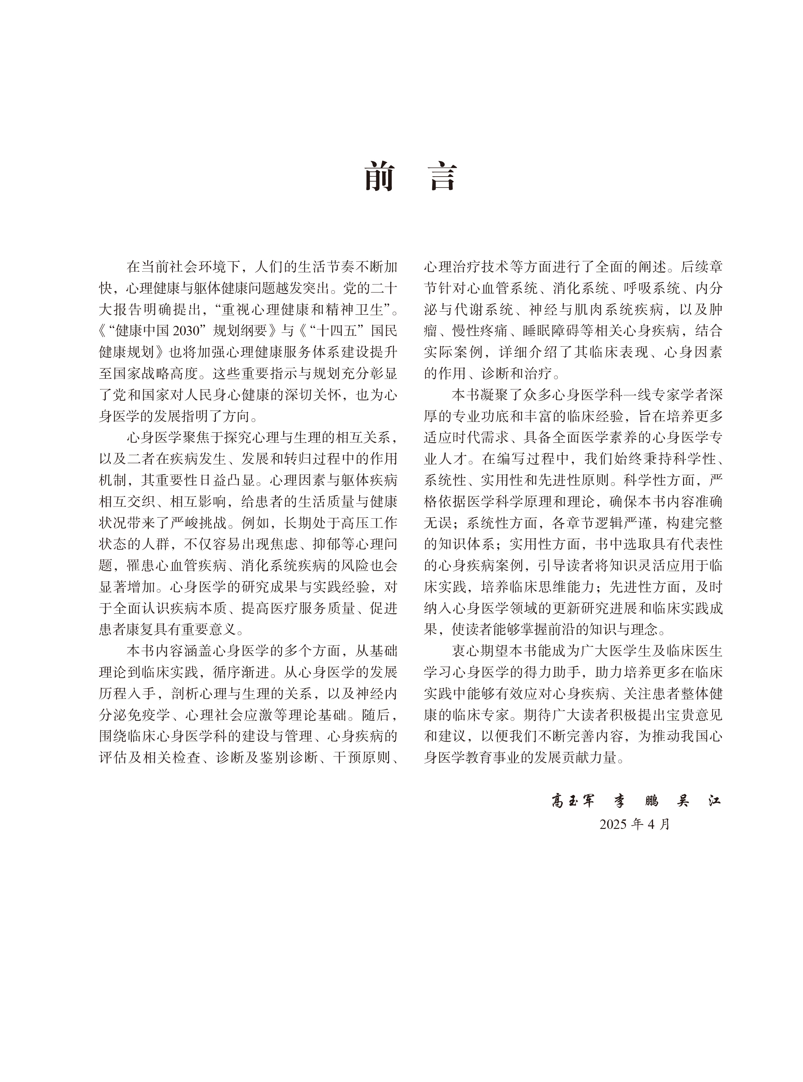 心身医学 高玉军 李鹏 吴江 主编 北医社