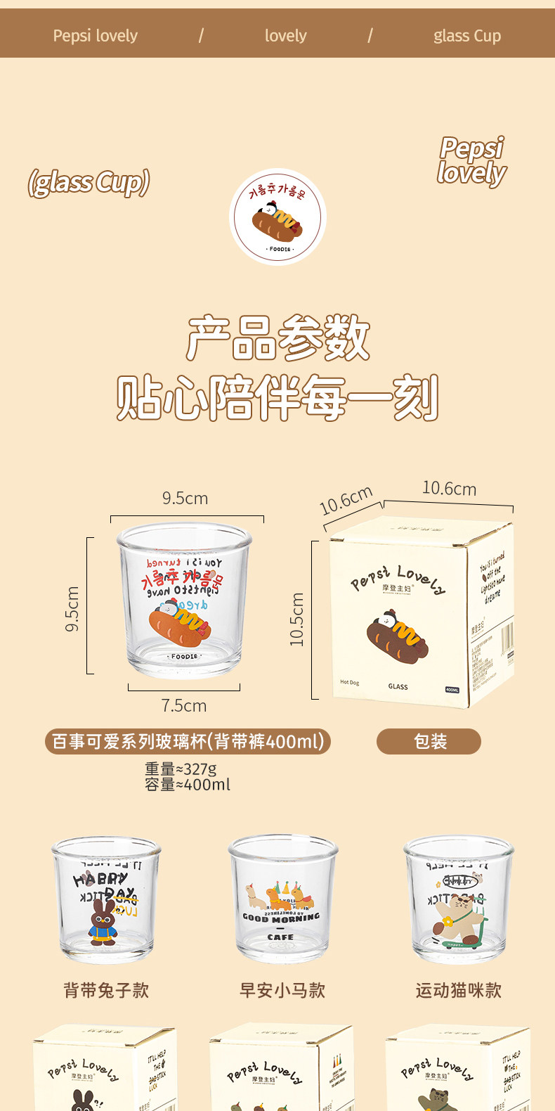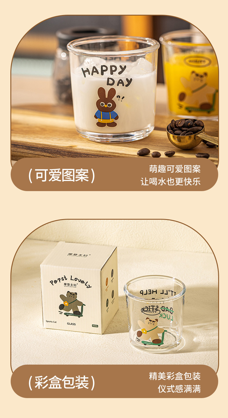 【新品】中国摩登主妇百事可爱系列玻璃杯-早安小马(400ml)