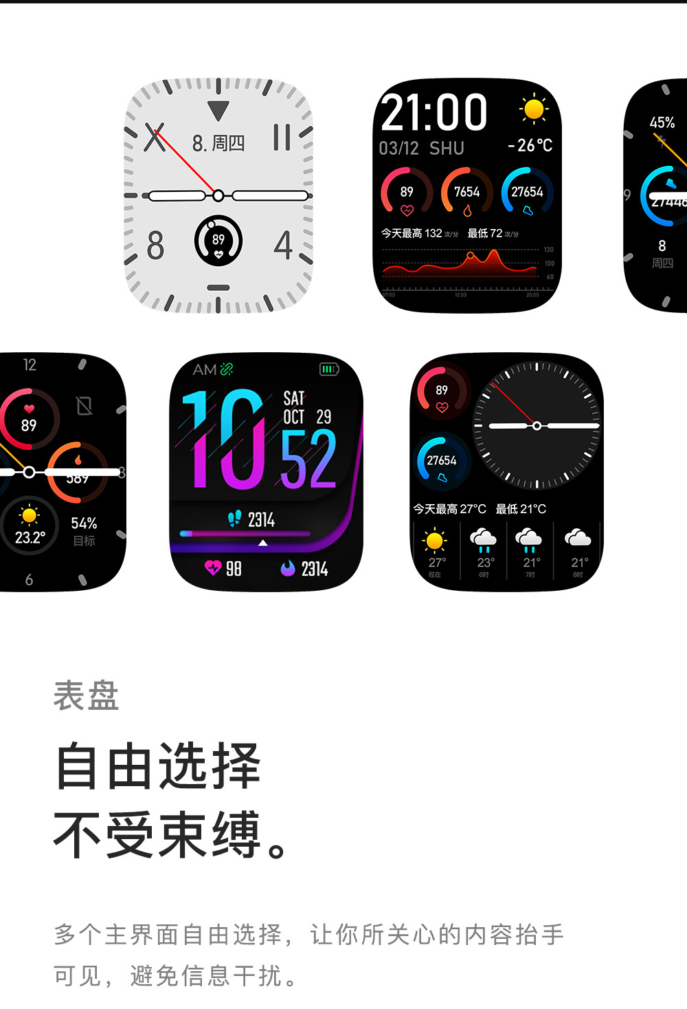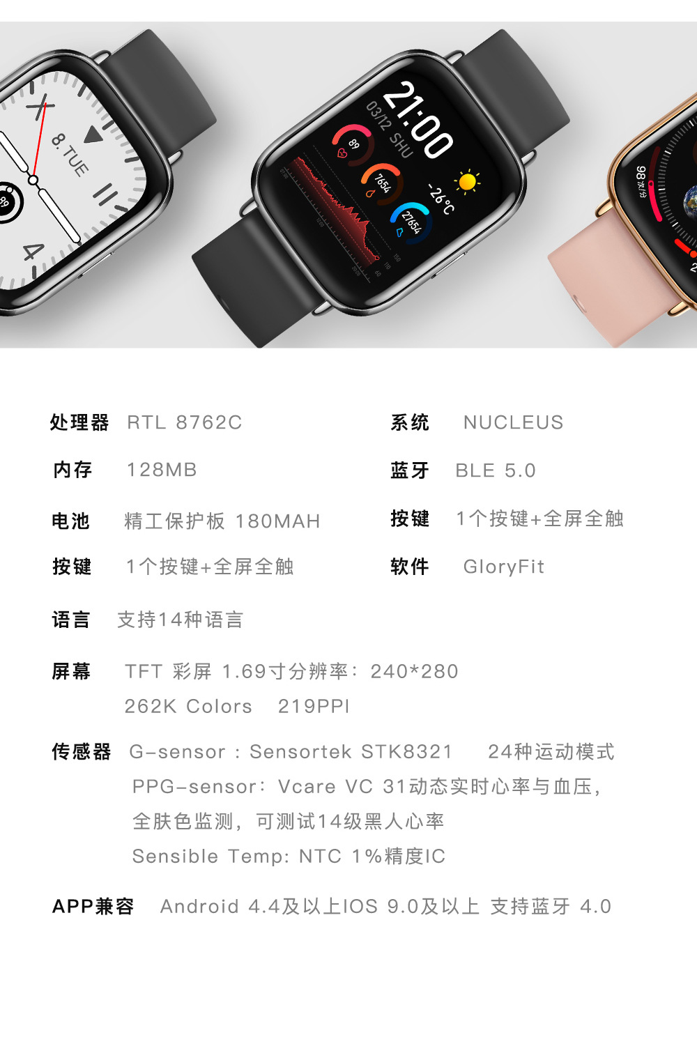 优米智能UM68T全触屏蓝牙手表运动血压体温动态心率血氧智能手表