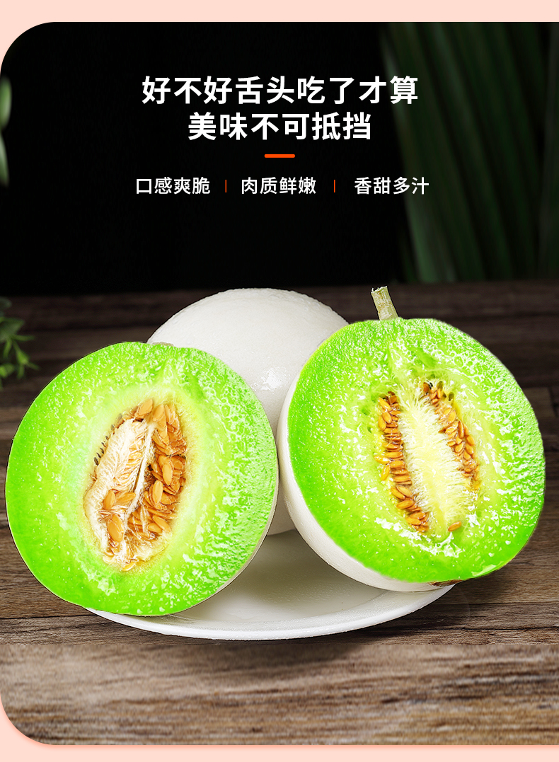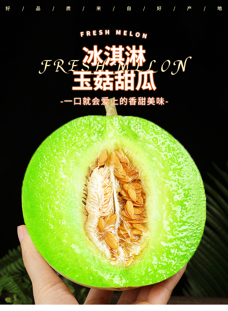 【山东·聊城 玉菇冰淇淋甜瓜】新鲜采摘,翡翠瓜肉,冰淇淋的口感,一口香甜,鲜嫩多汁,冰凉爽口