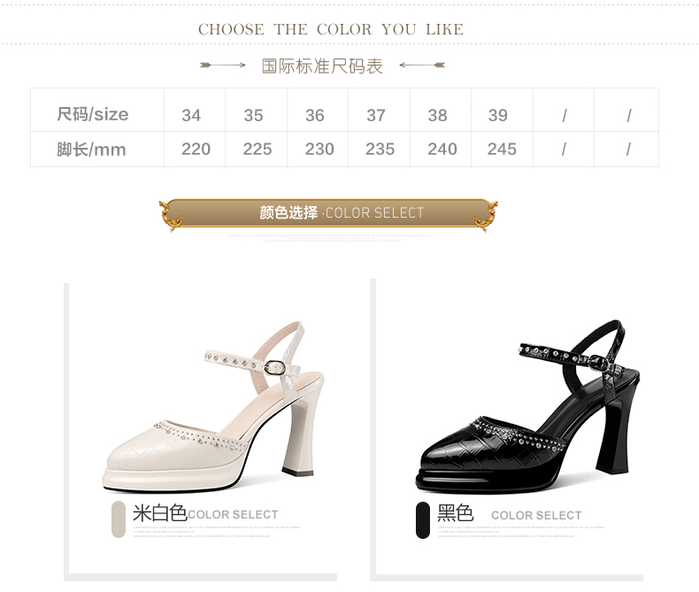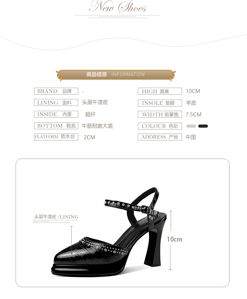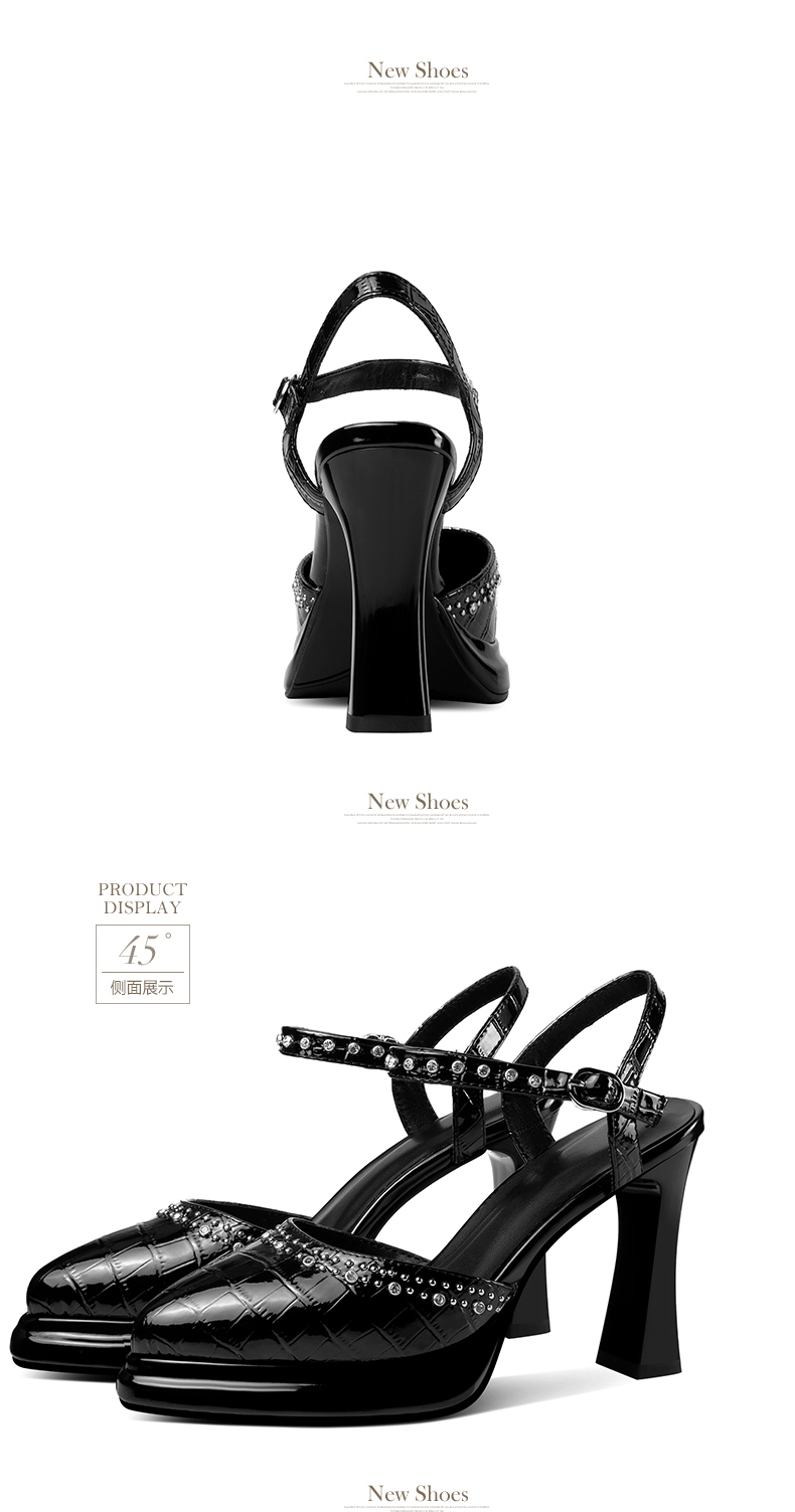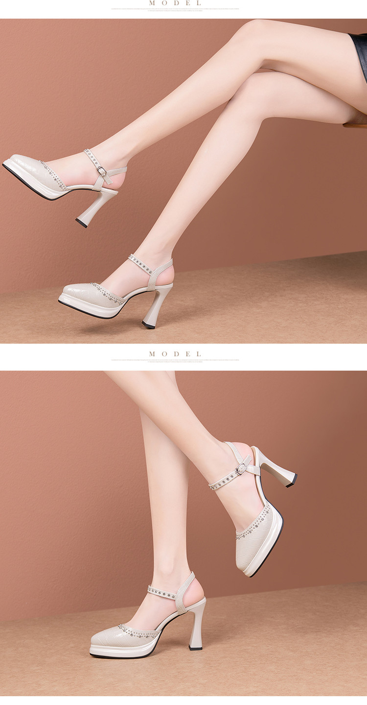【预售5天】真皮防水台高跟鞋女夏季配裙子粗跟一字包头凉鞋新款工作鞋JQR&JX-2787