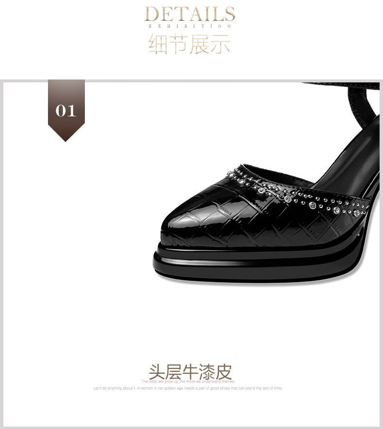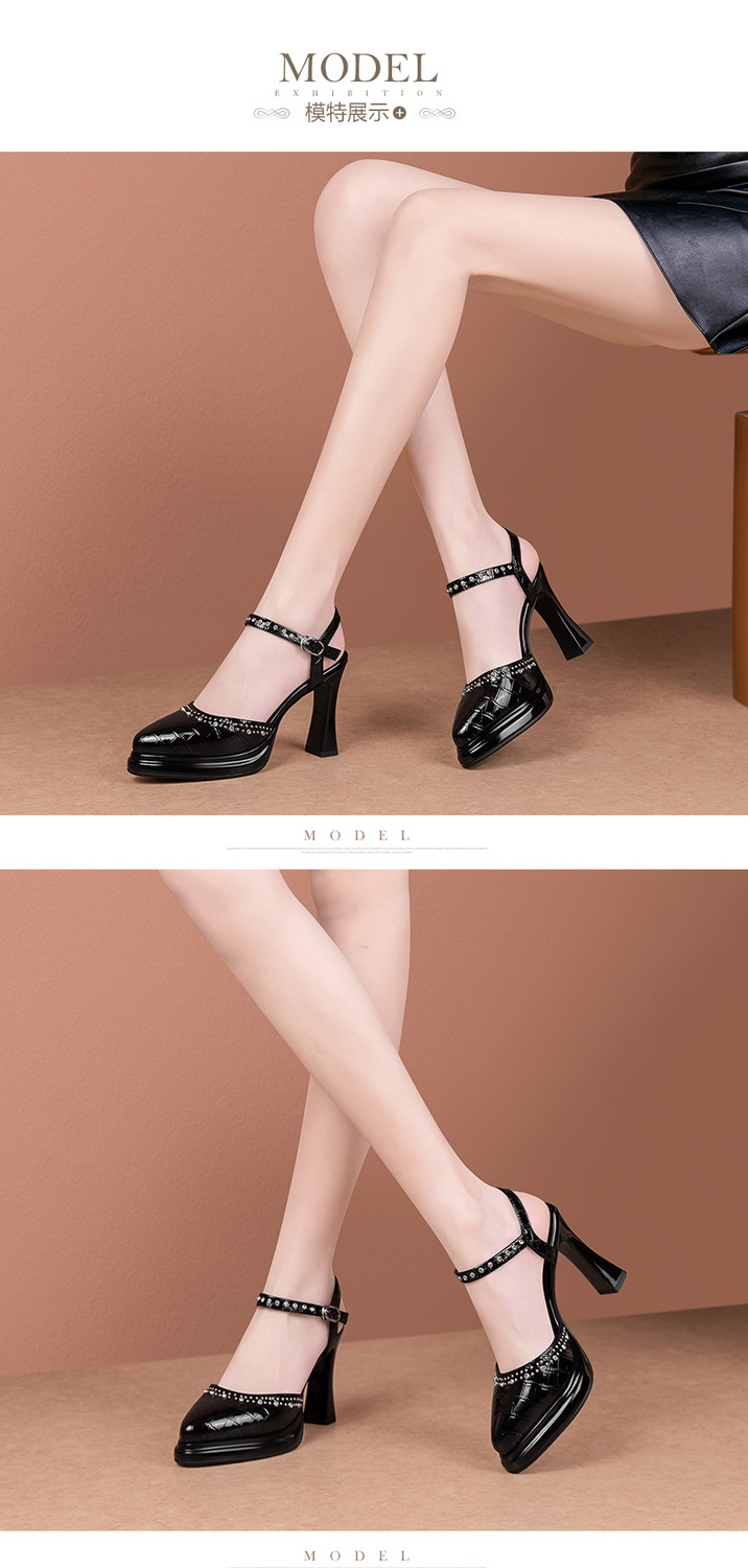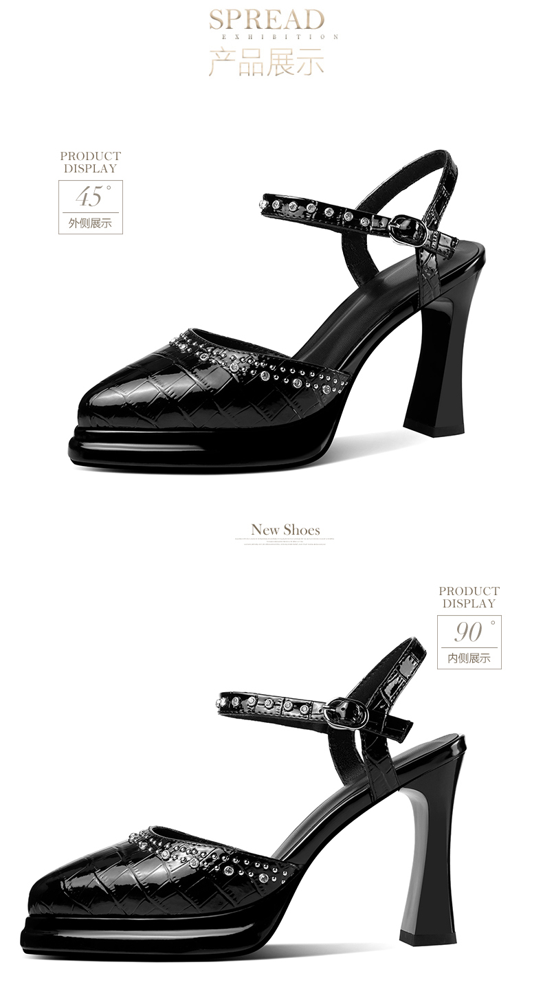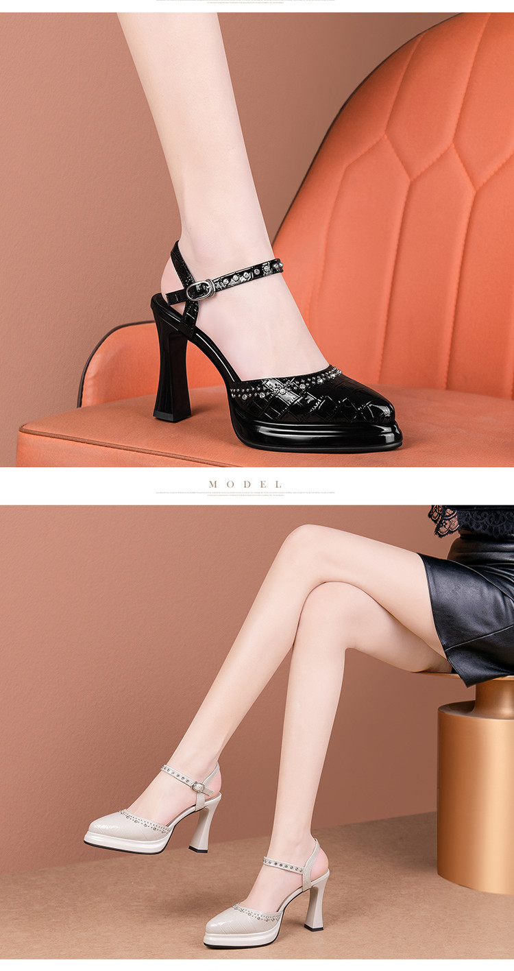 【预售5天】真皮防水台高跟鞋女夏季配裙子粗跟一字包头凉鞋新款工作鞋JQR&JX-2787
