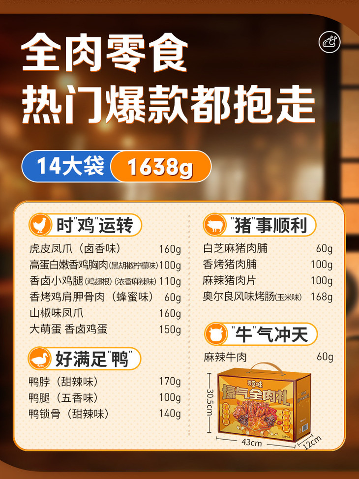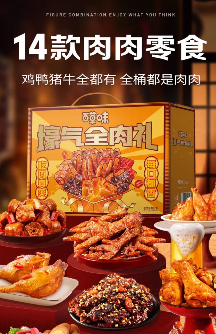 【百草味零食大礼包】全肉礼盒麻辣肉类办公室休闲网红夜宵零食