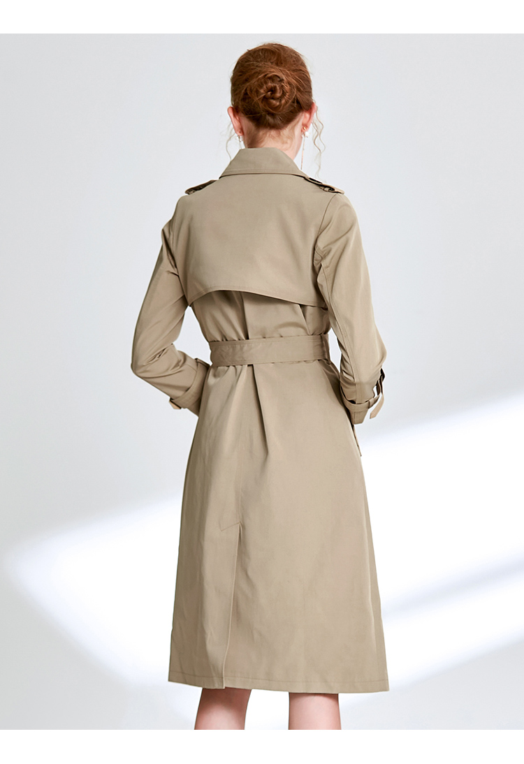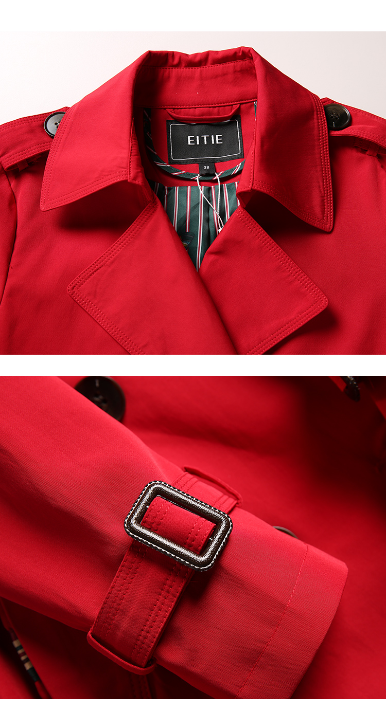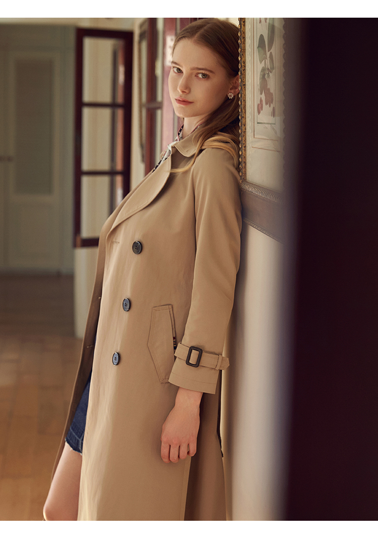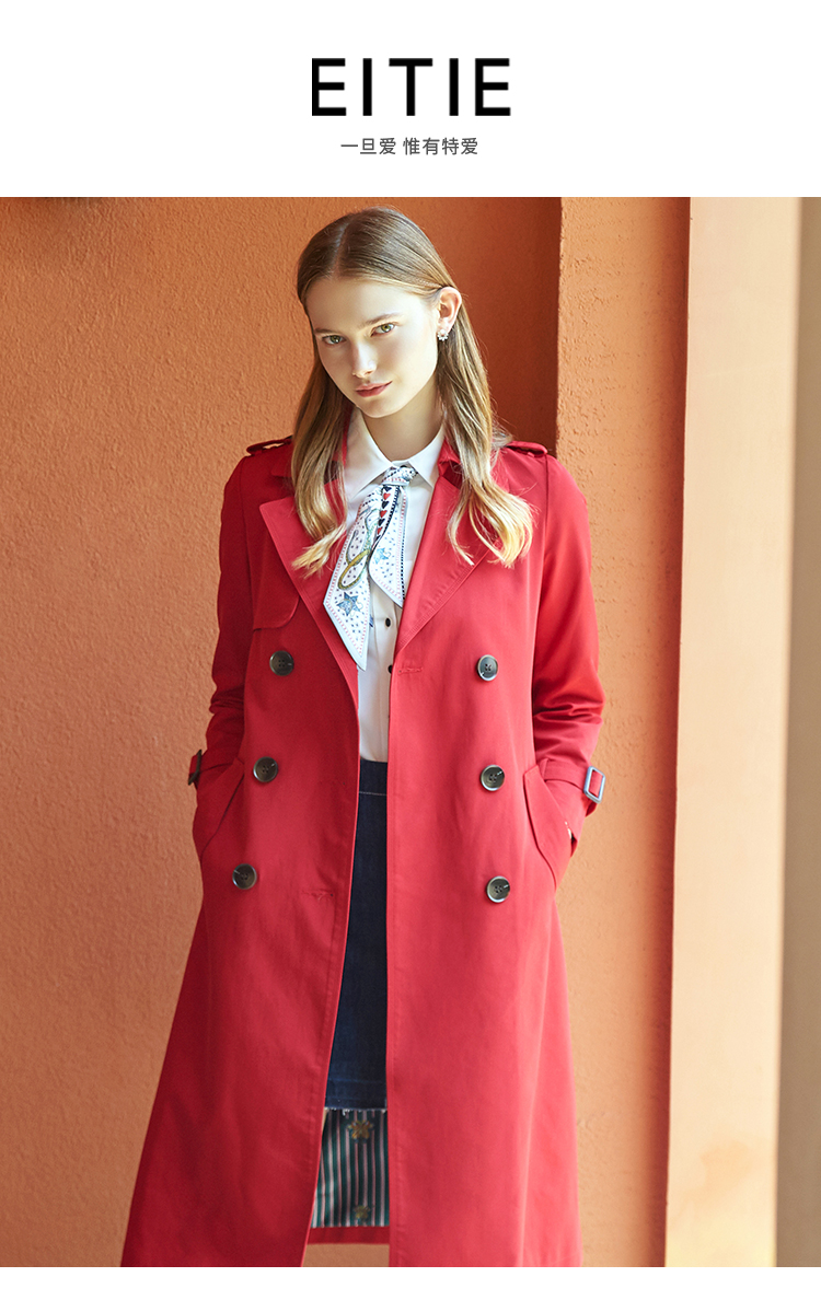 EITIE爱特爱女装秋季气质翻驳领挺括双排扣收腰优雅风衣外套D1904333