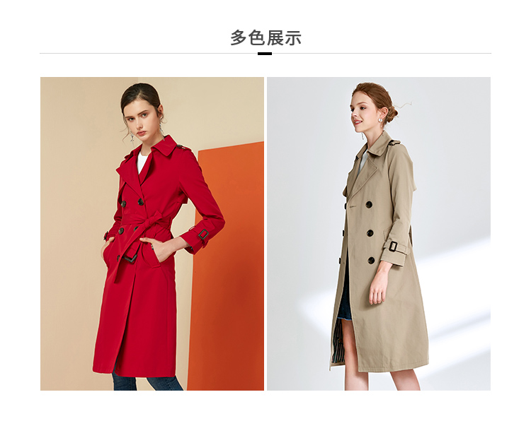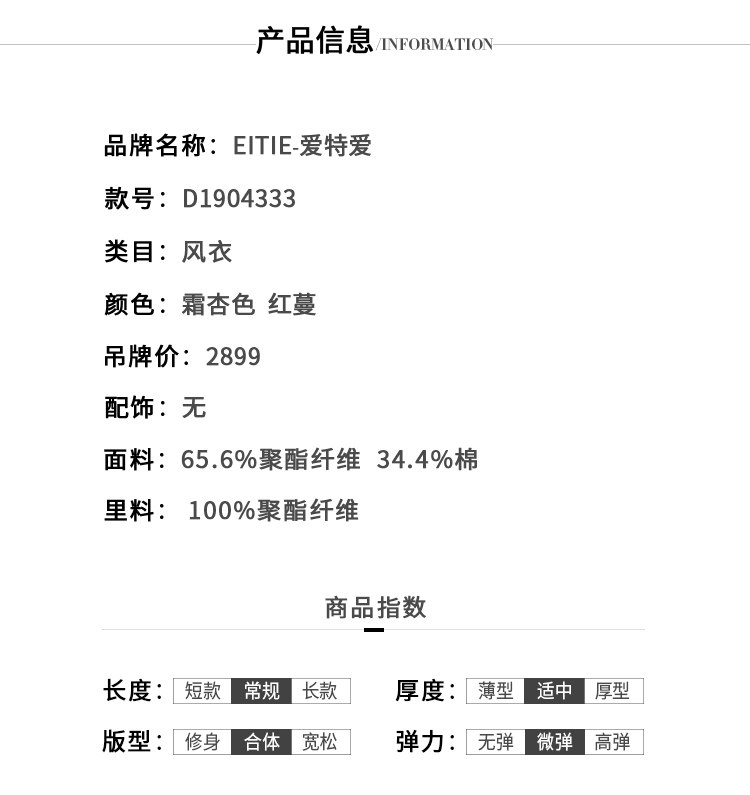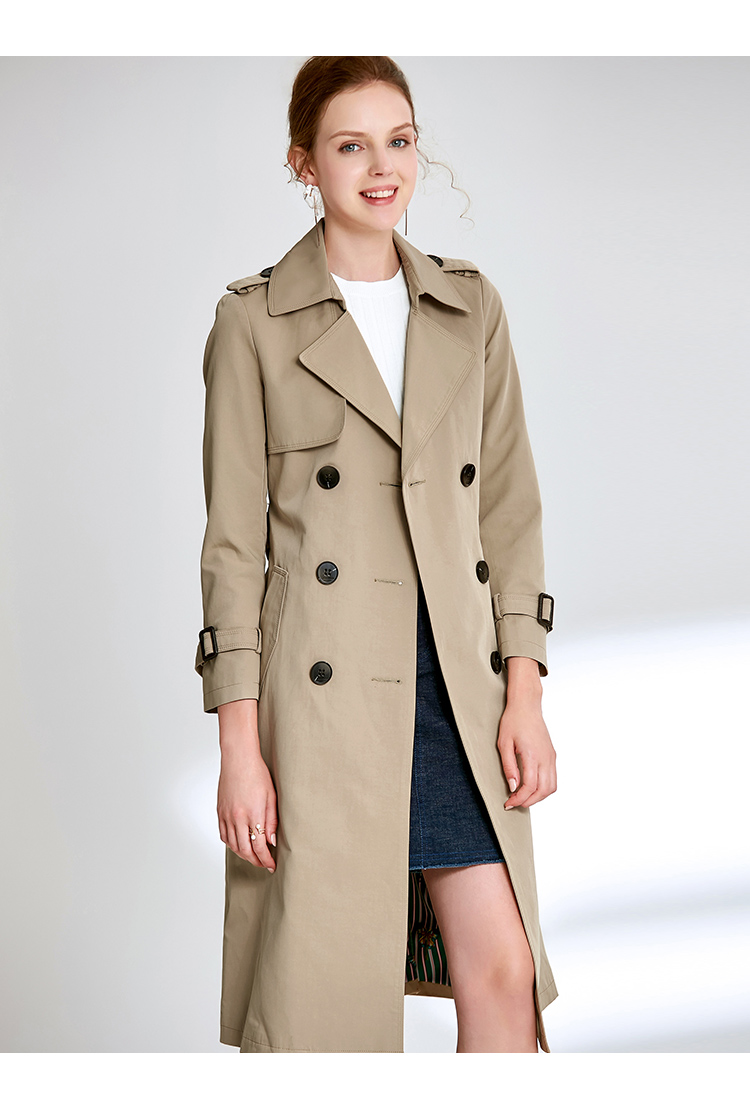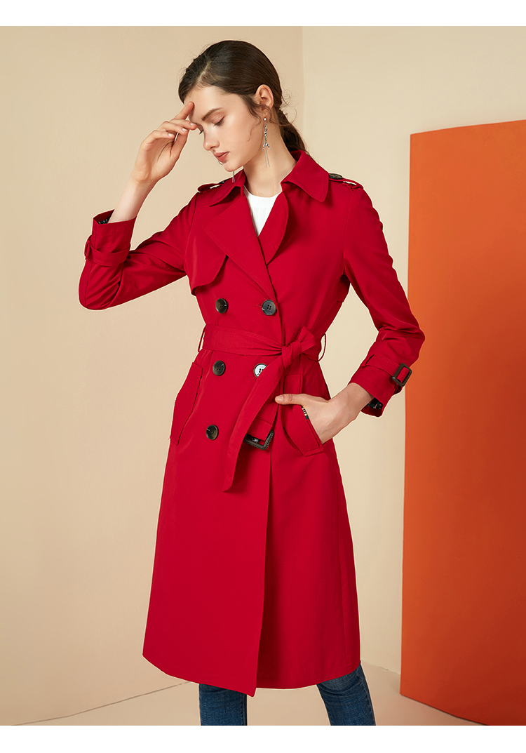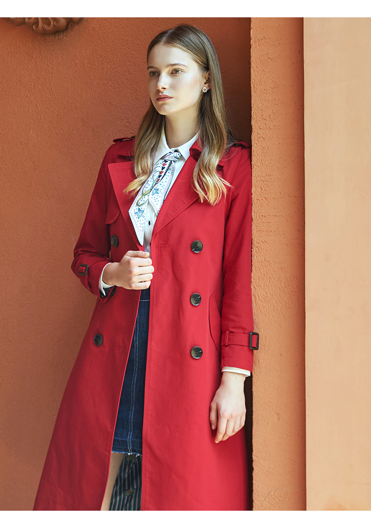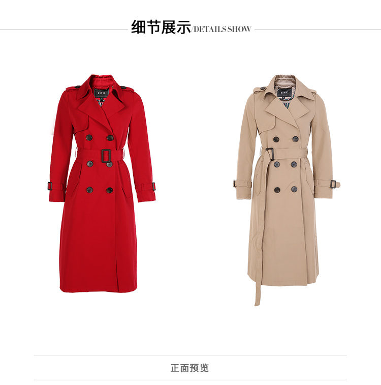 EITIE爱特爱女装秋季气质翻驳领挺括双排扣收腰优雅风衣外套D1904333