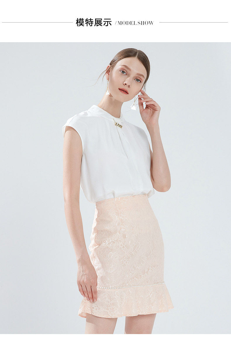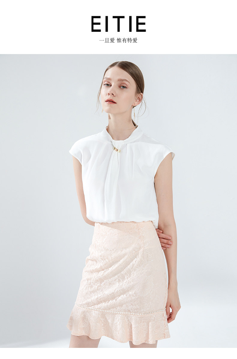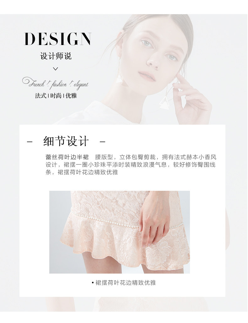 EITIE爱特爱女装夏季新法式赫本小香风包臀蕾丝荷叶边半身裙B1906222