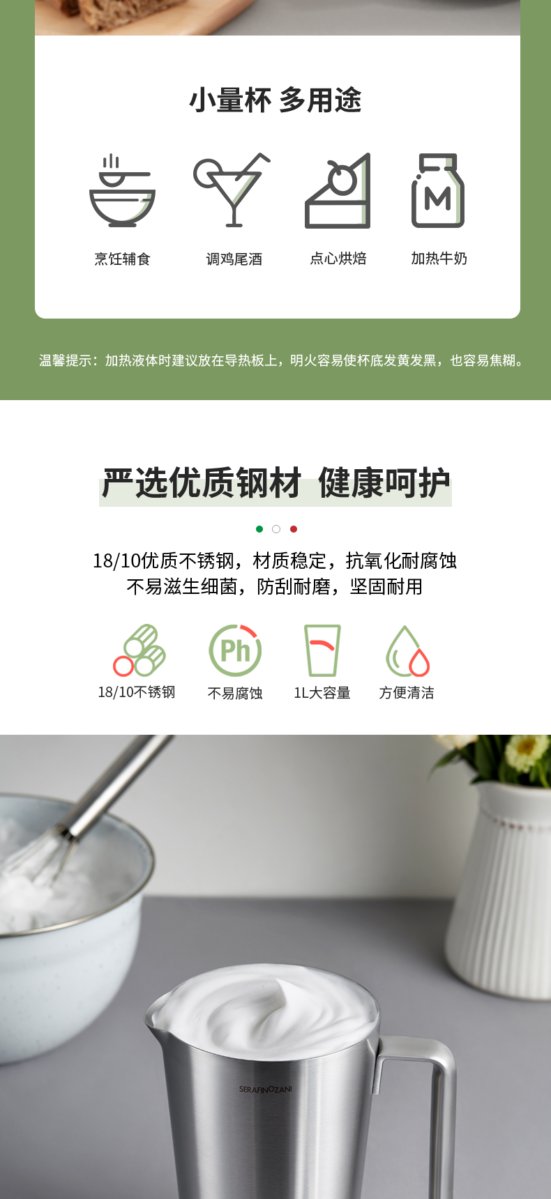 一器搞定厨房事 | 意大利尚尼帕尔玛量杯烹饪、烘焙、饮品、辅食、收纳样样行!(18/10加厚不锈钢)